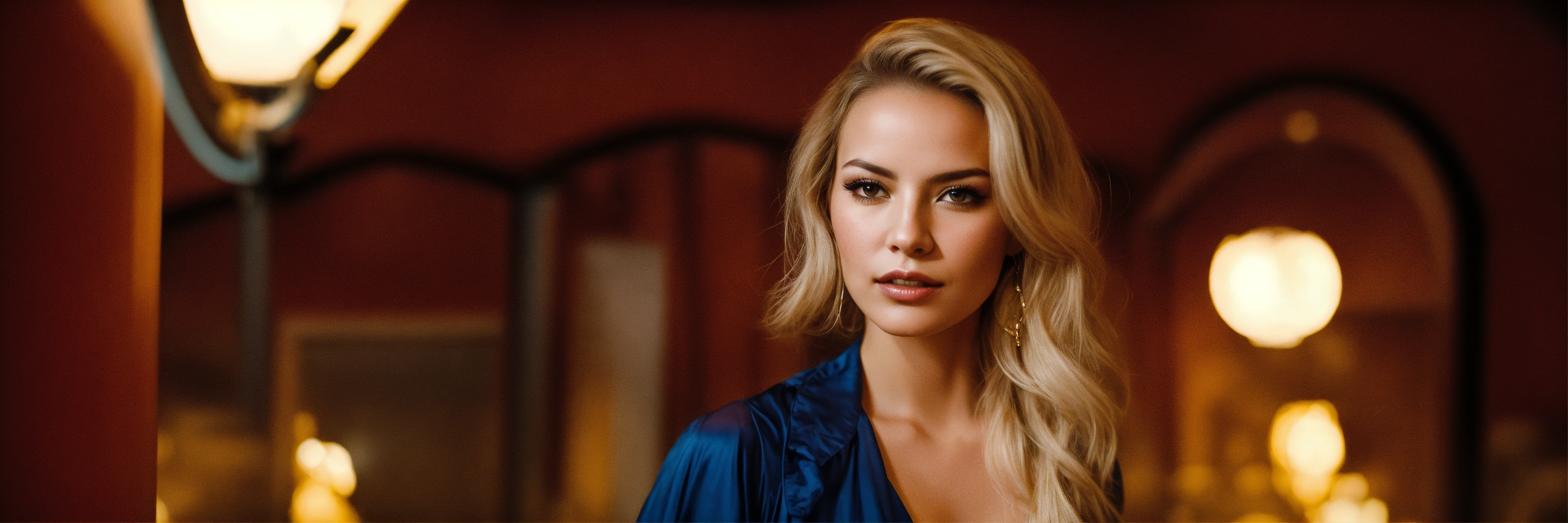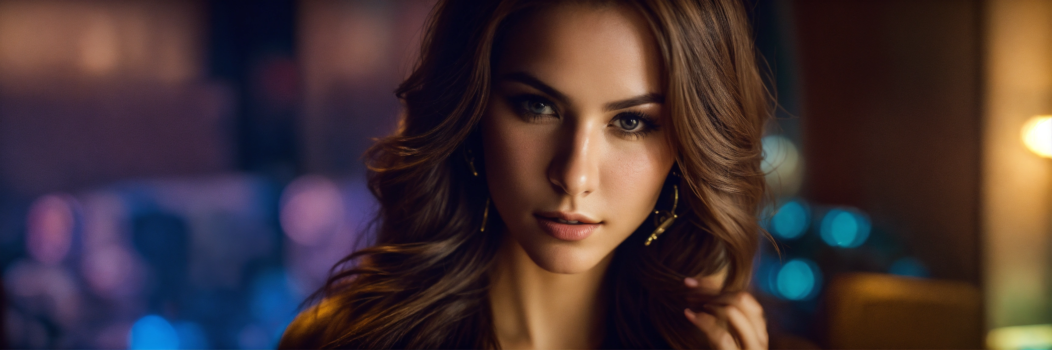 Generate an image of a mysterious female with an air of intrigue and charm. she should be winking playfully, her index finger pressed gently against her lips in a 'shh' gesture, signaling a secret. her demeanor should exude mystery and intrigue, inviting the viewer to lean in for a 'sneak peek' at something exclusive and enticing. the lighting and composition should enhance her features, making the moment seem intimate and intriguing.