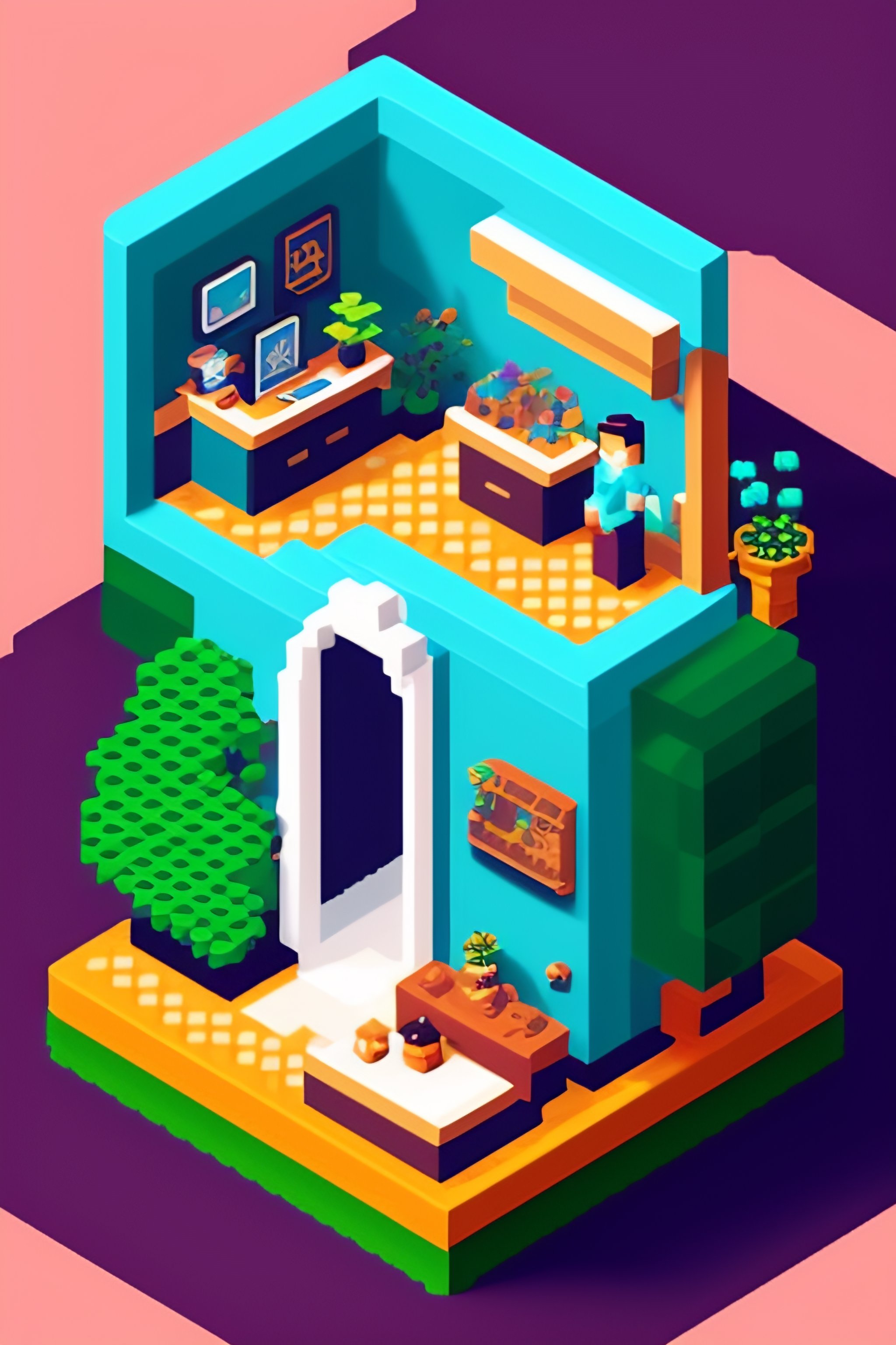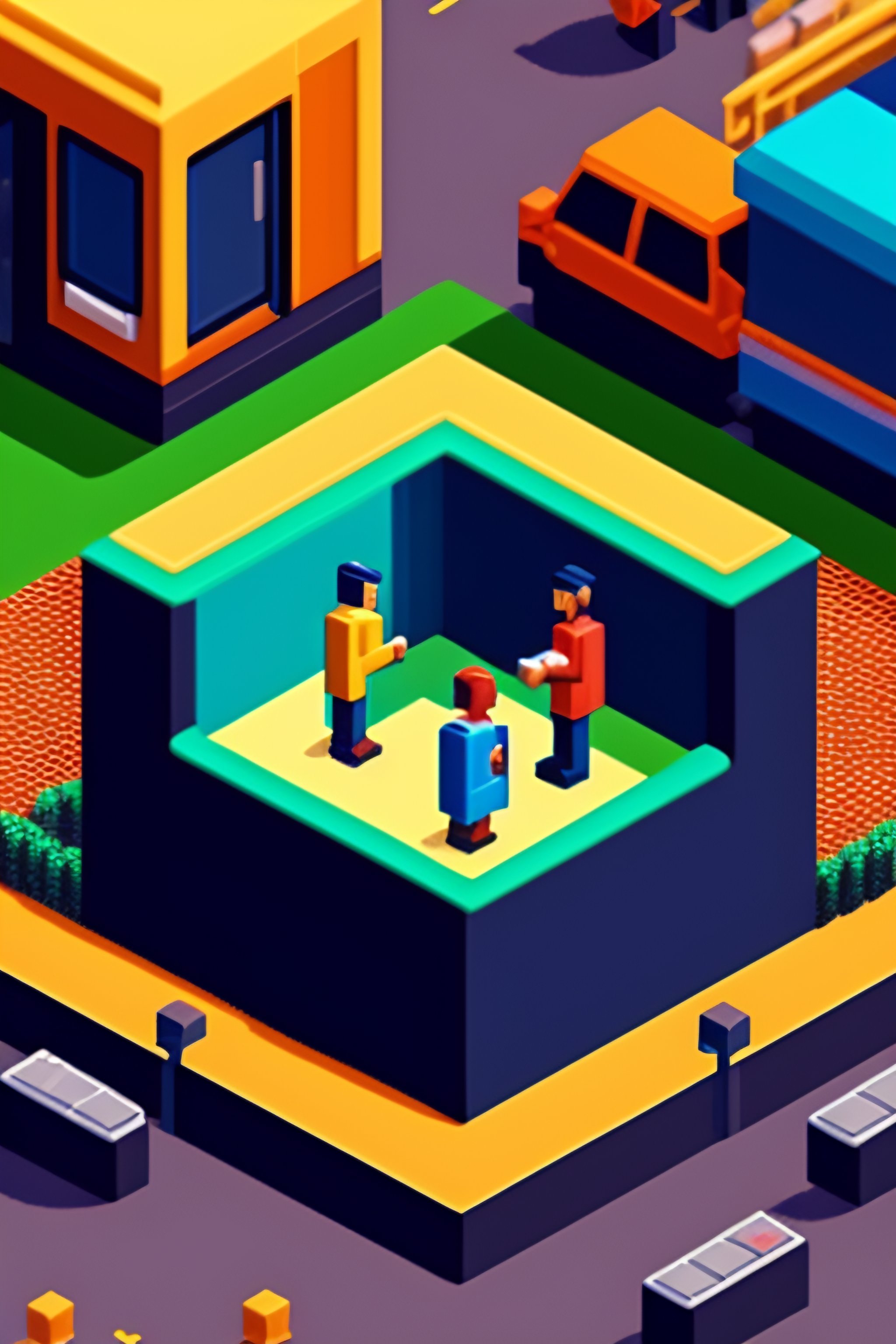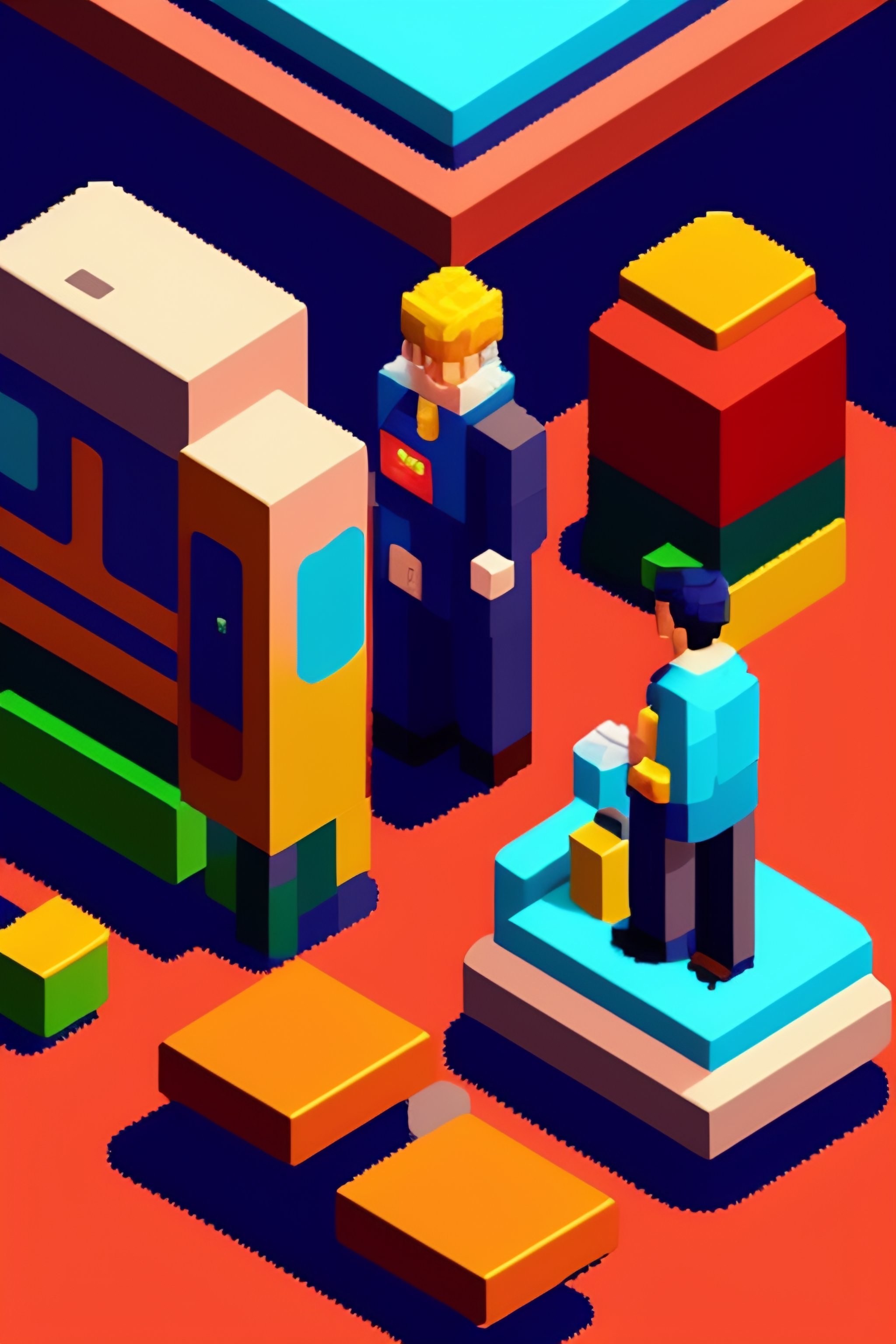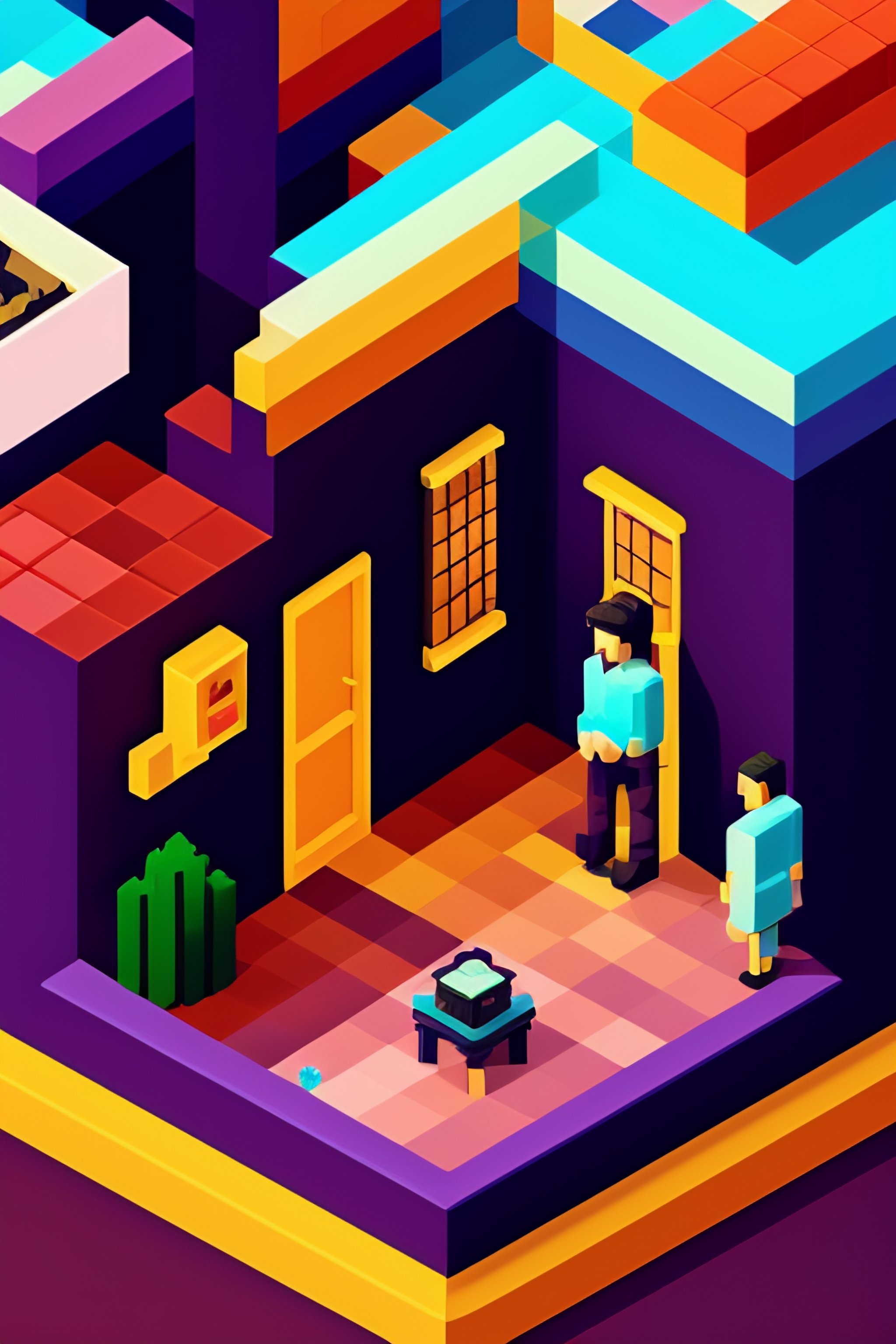 Isometric pixel art of people's lives by eboy, a type of digital art characterized by pixelated aesthetic, created using pixel art software and inspired by pop culture.