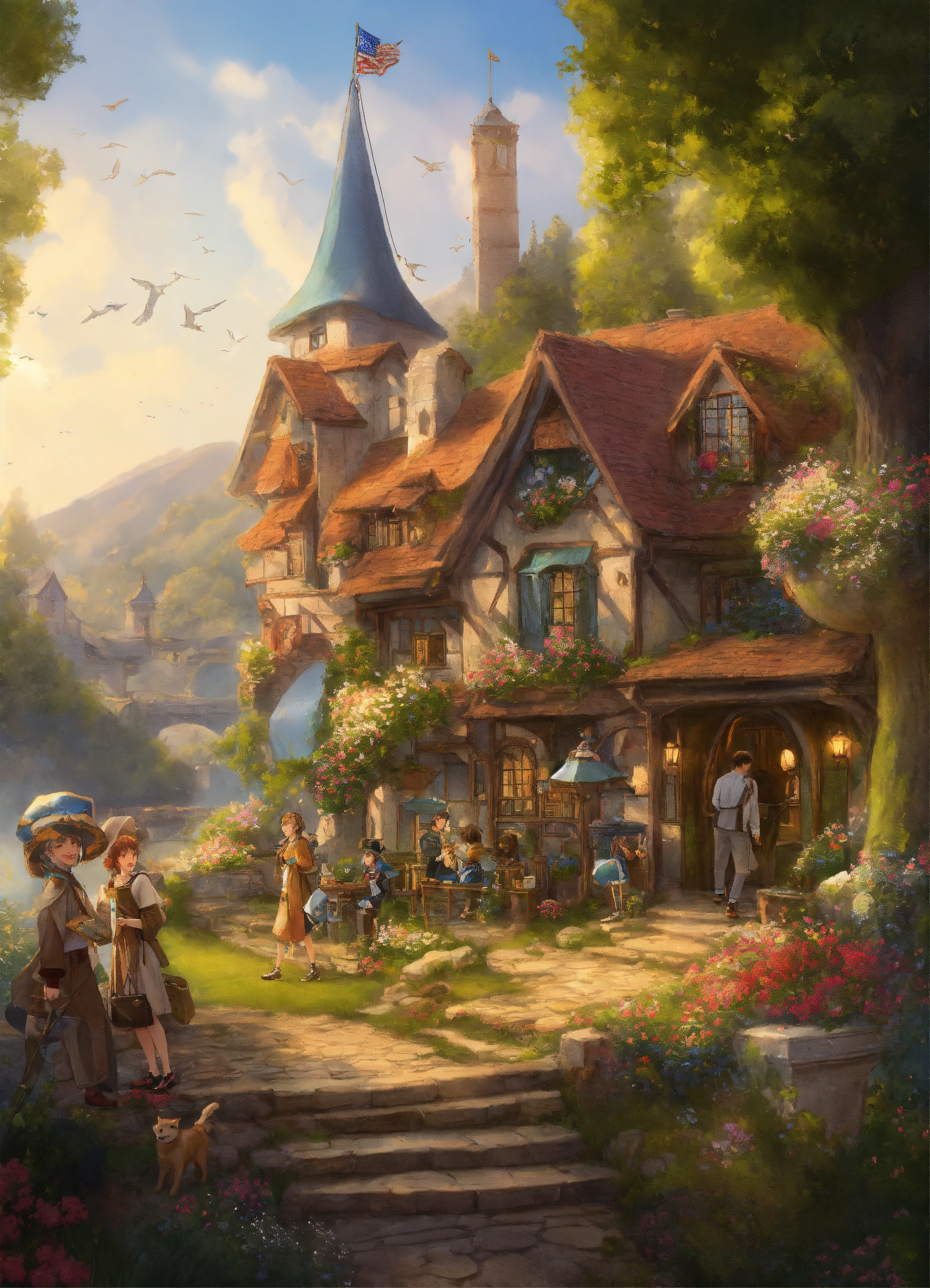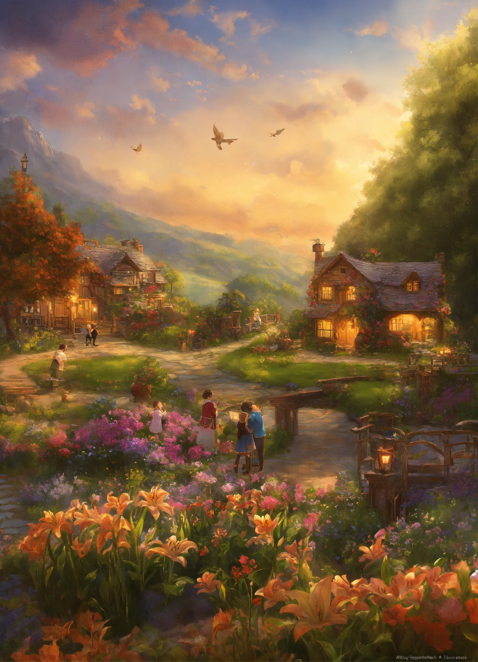 Chapter 10 sharing the treasurzadjectives generous, altruistic, inspiredzverbs depict lily, silver, and max sharing their newfound knowledge and treasures with a group of excited people, a sense of generosity and inspiration in the air.