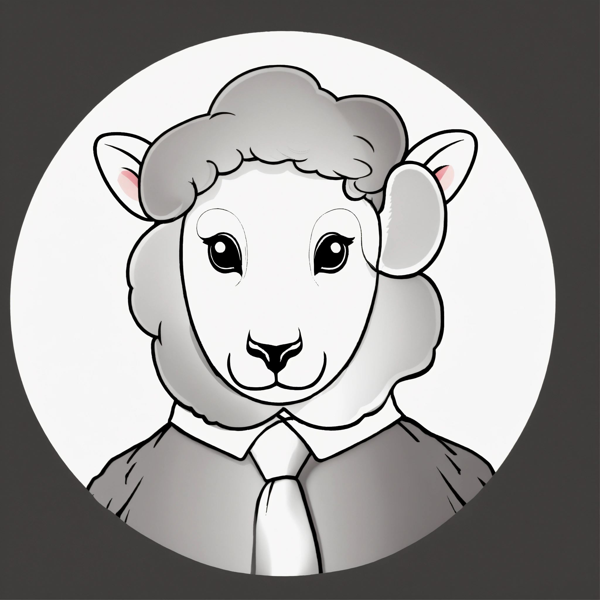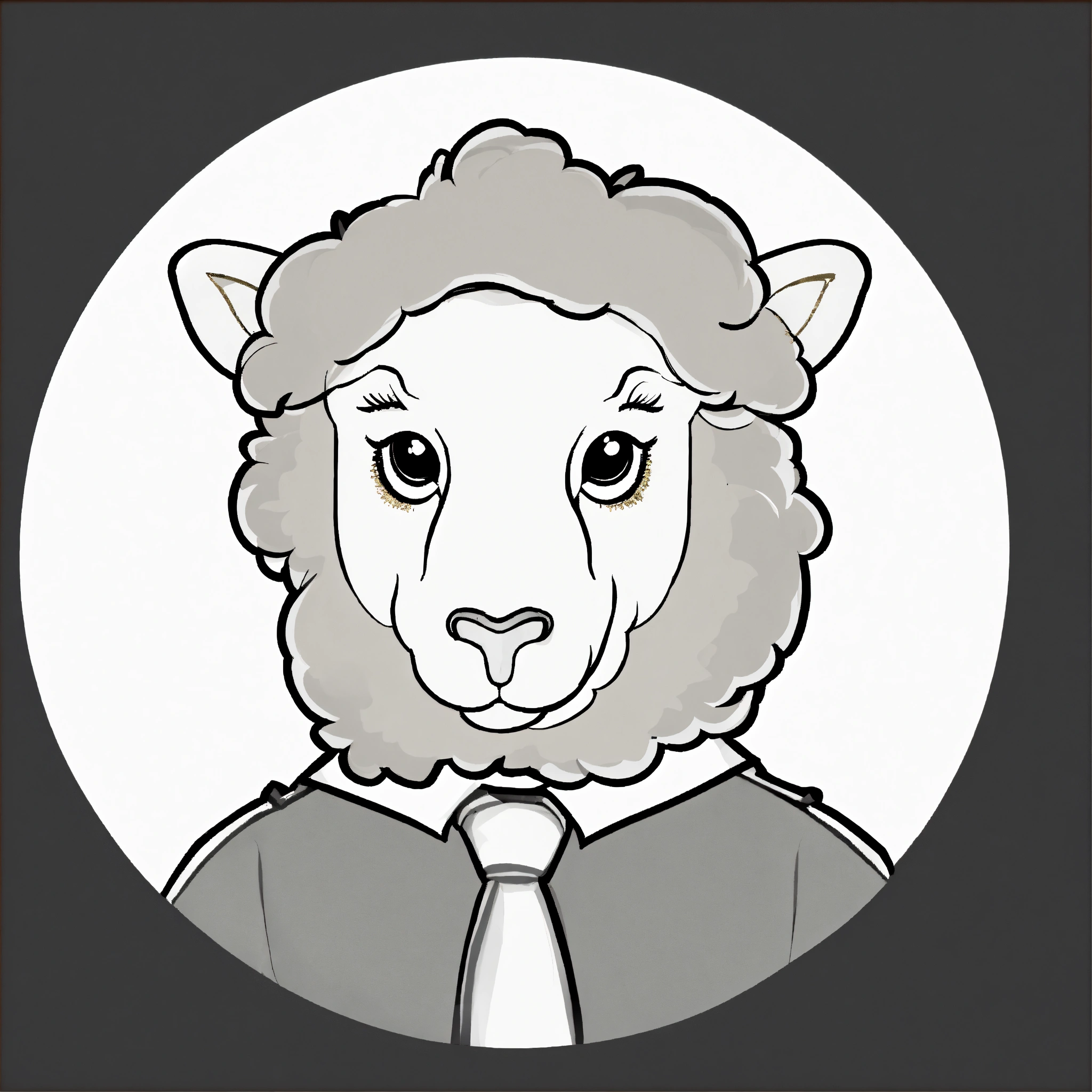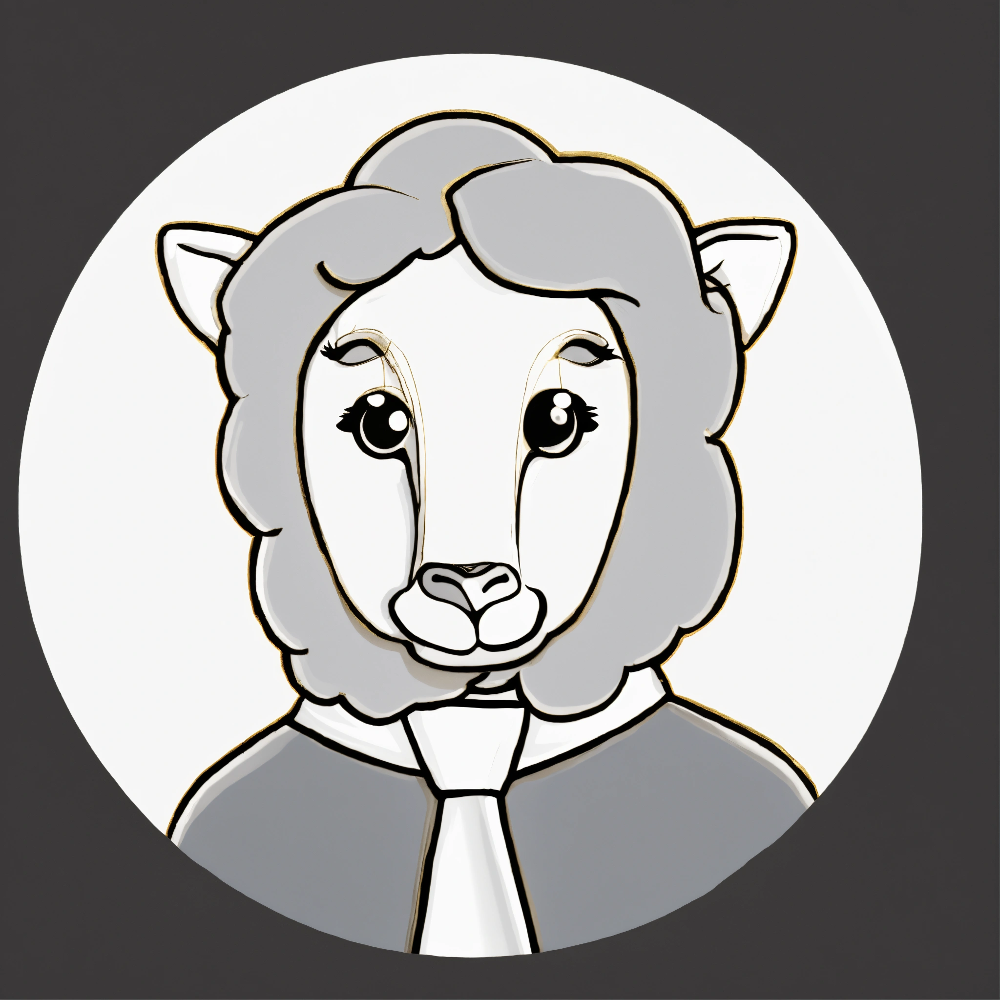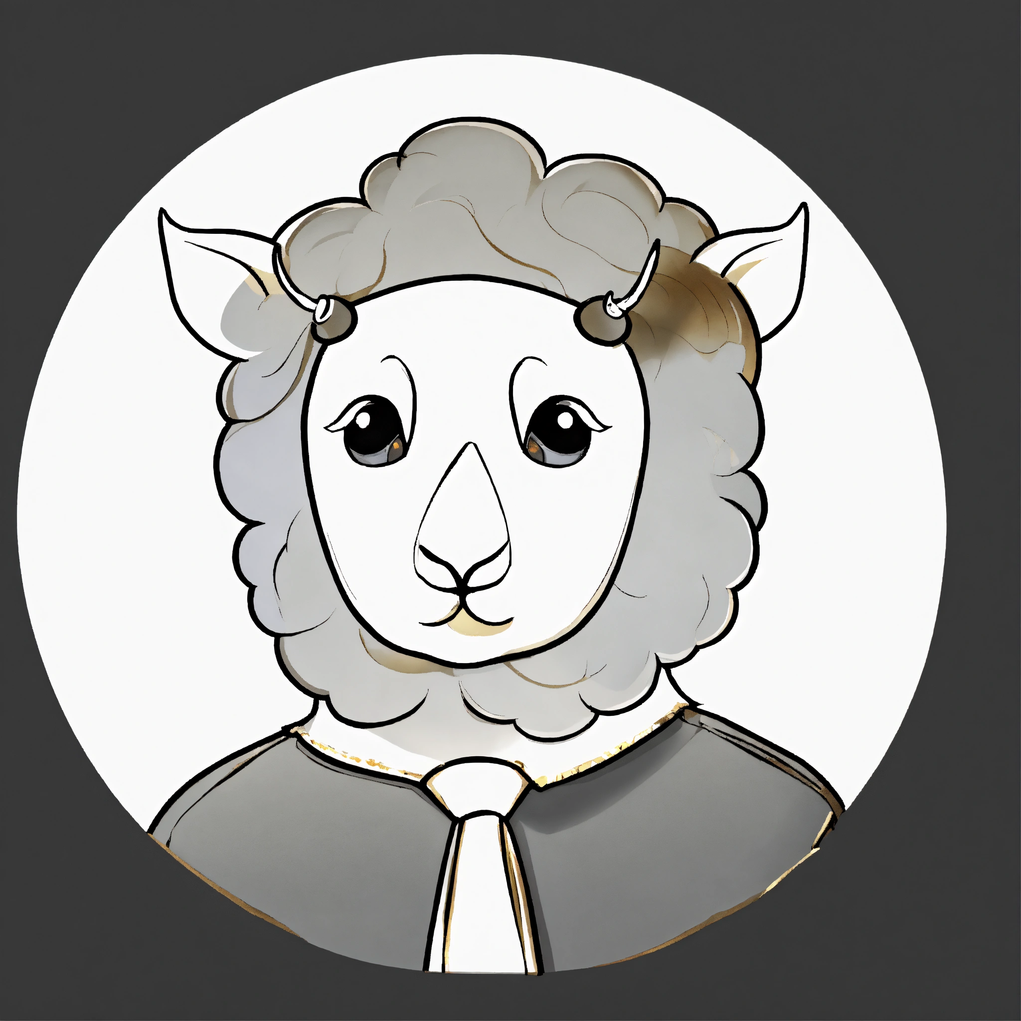 Black 3d sheep with gold tie brown big eyes and small horns portrait
