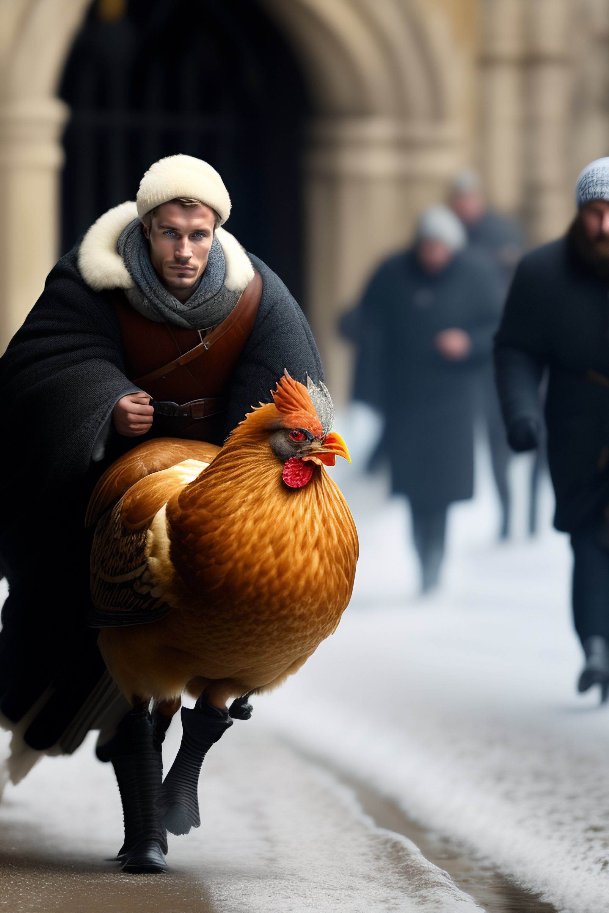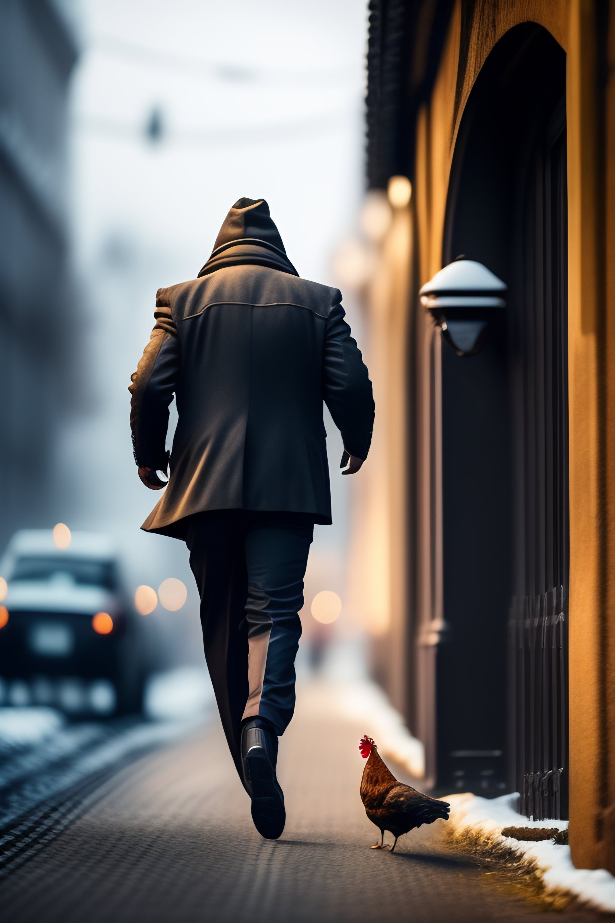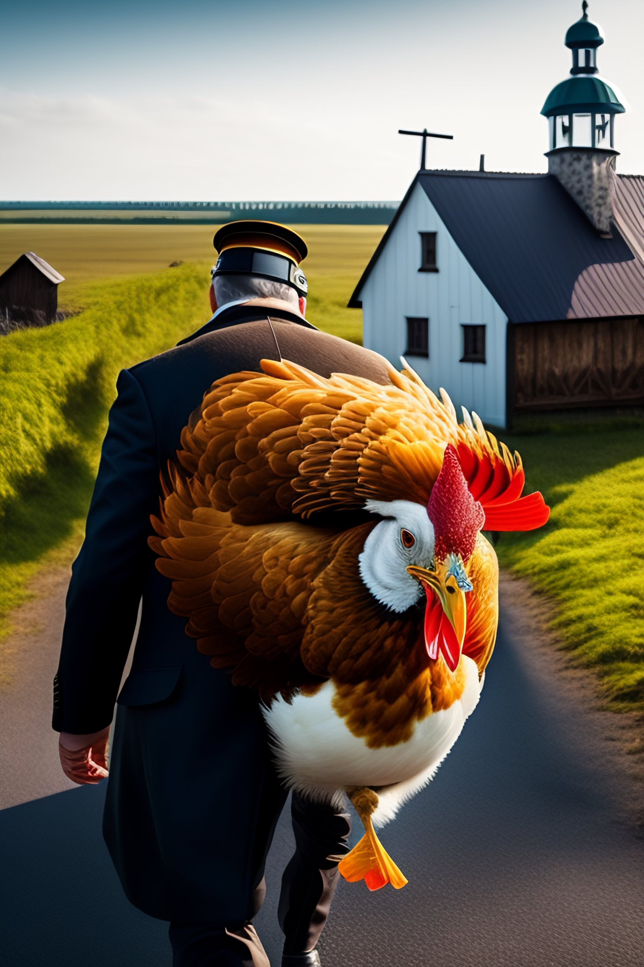 Estonian thief is running away carrying a stolen chicken and church silver