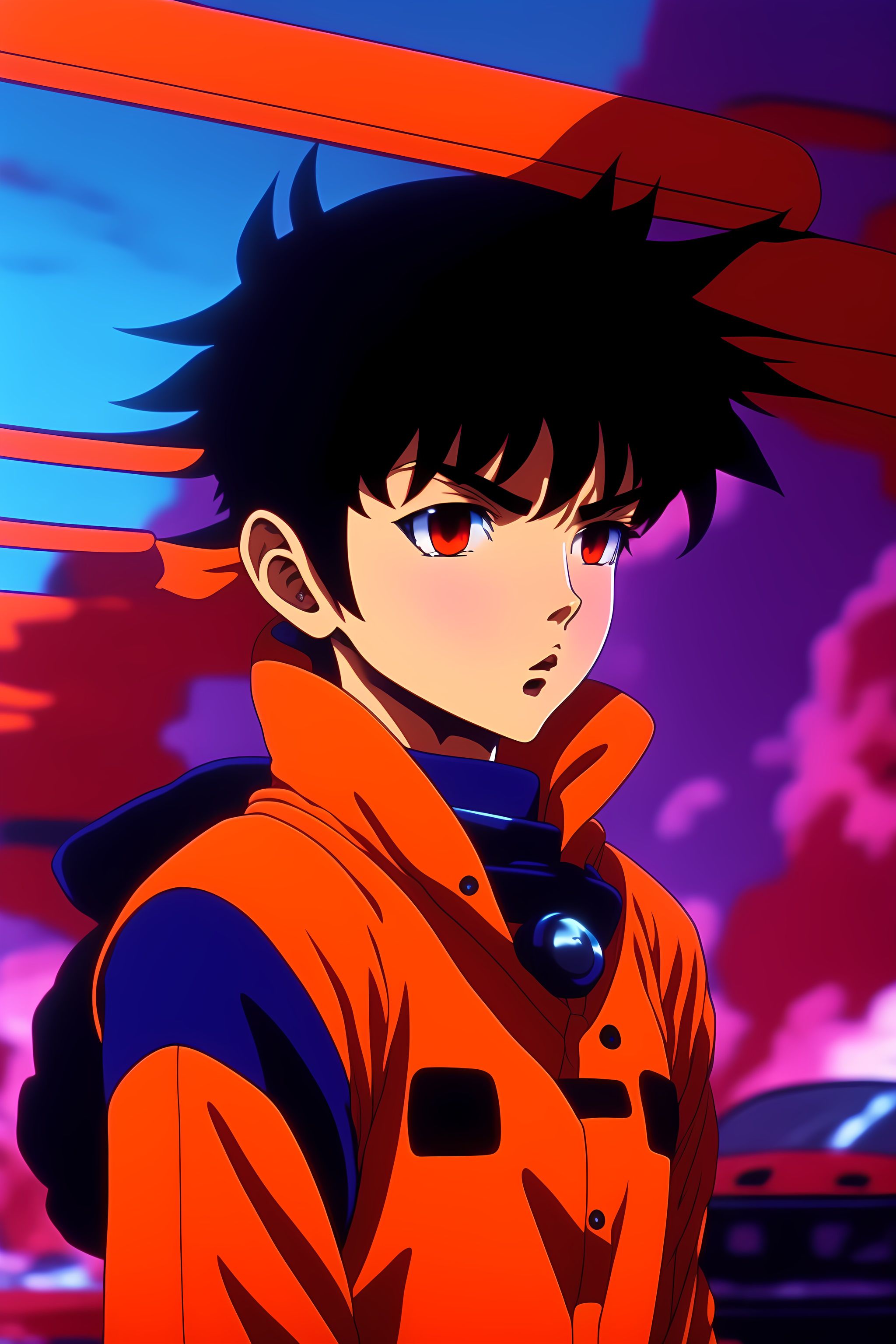 Vintage anime screenshot from akira, 90’s anime aesthetic. a stunning maximalist action shot of the protagonist.