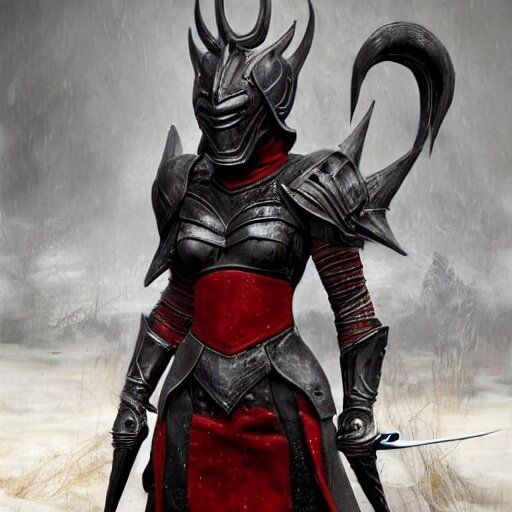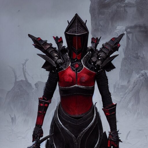 Hyperrealistic mixed media image of black red daedra armor from skyrim, stunning 3 d render inspired art by greg rutkowski and xiang duan and thomas eakes, perfect facial symmetry, flesh texture, realistic, highly detailed attributes and atmosphere, dim volumetric cinematic lighting, 8 k octane detailed render, post - processing, masterpiece