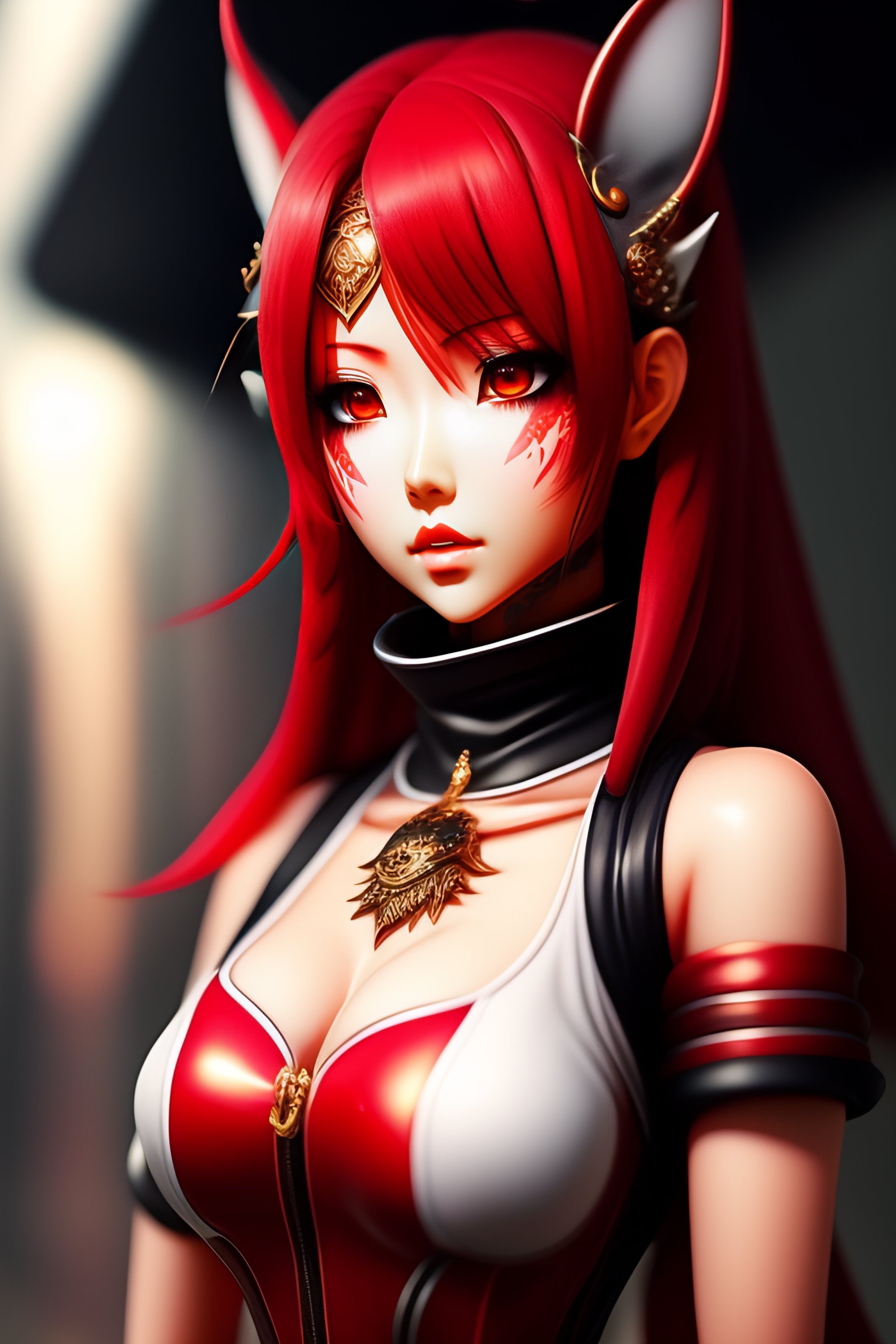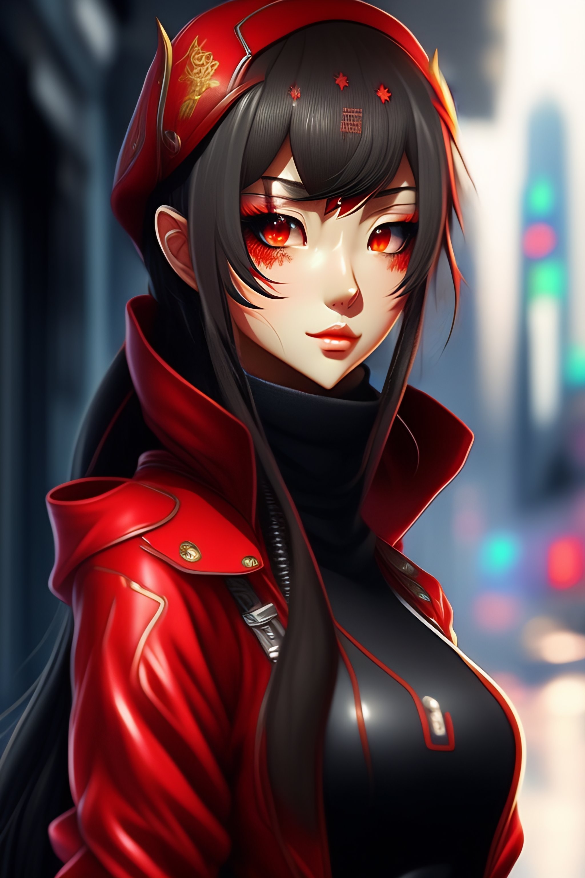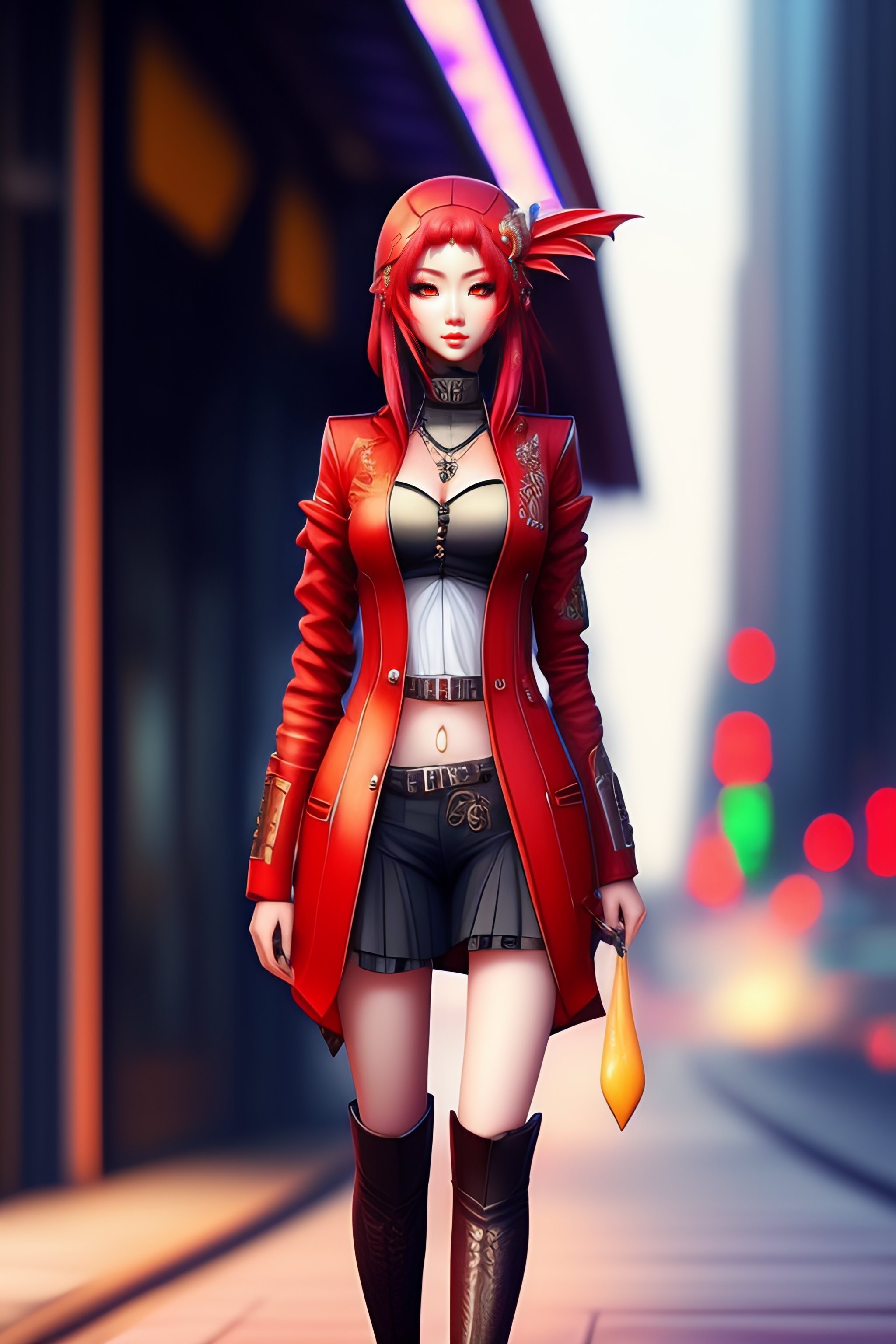 Anime female dragon humanoid giang bobs red eyes urban wear full body high definition