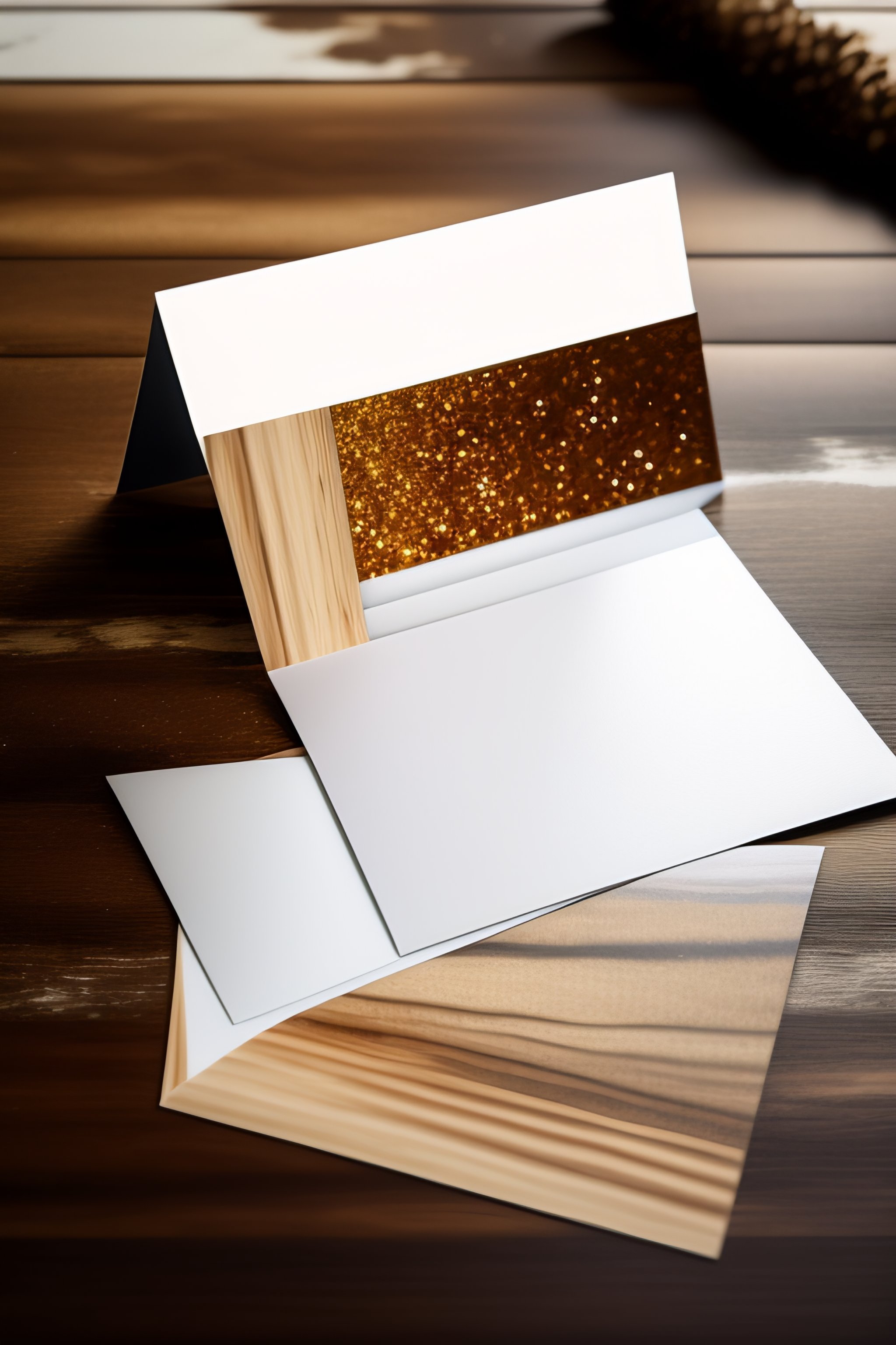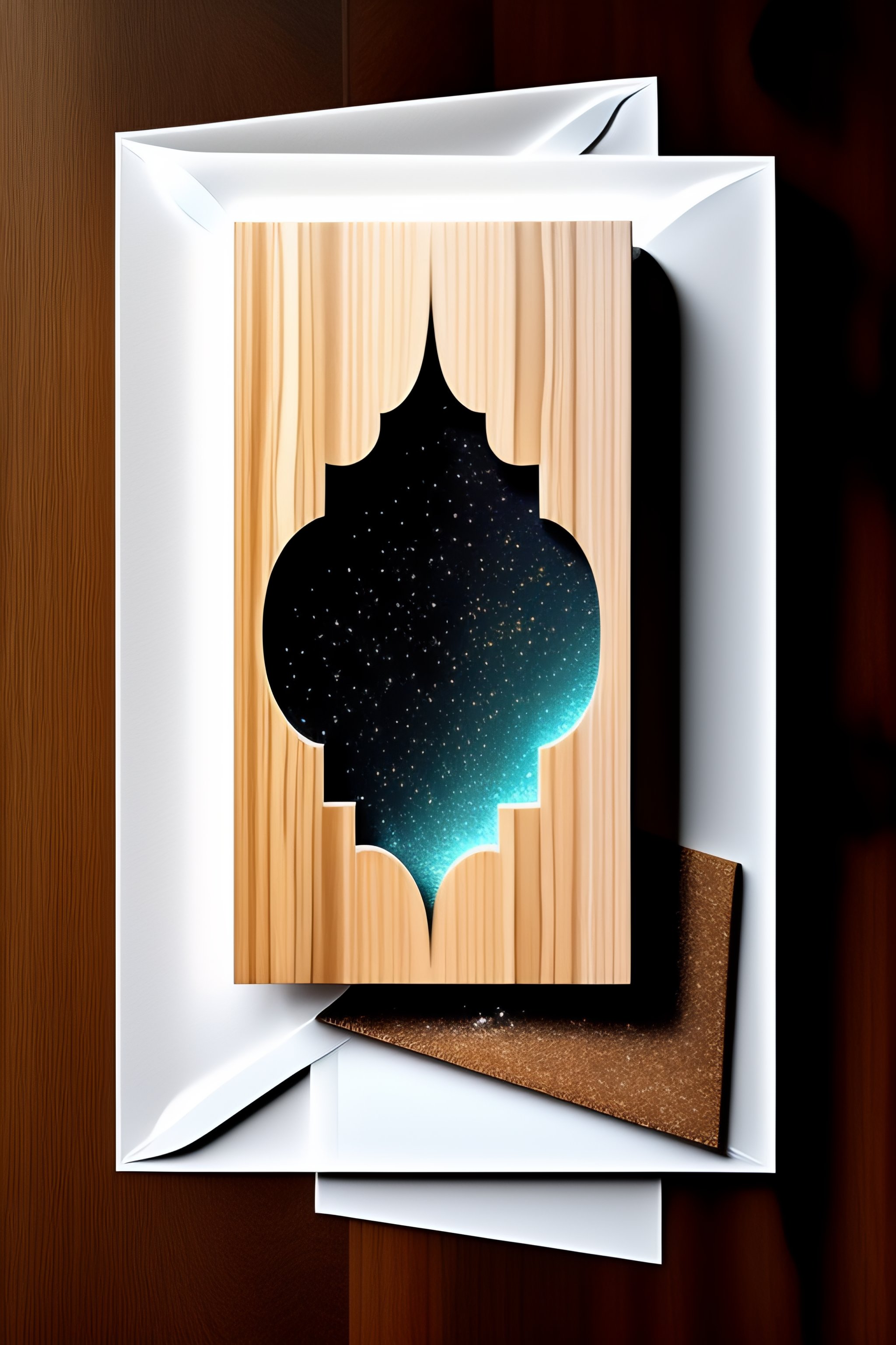 An open greeting card with sparkles coming out on a white modern wood grain look professional carpenter fine art wood plank texture interior design