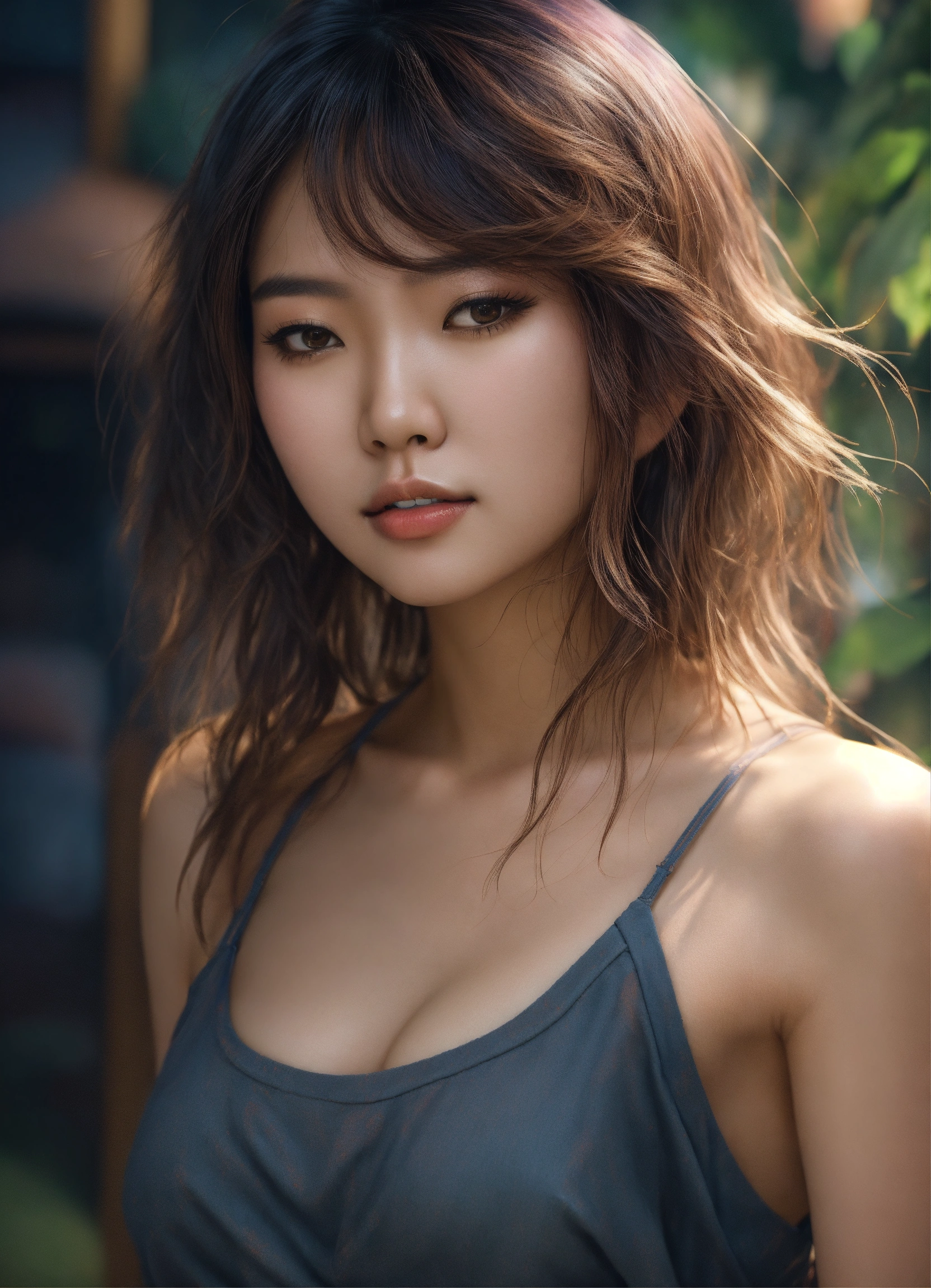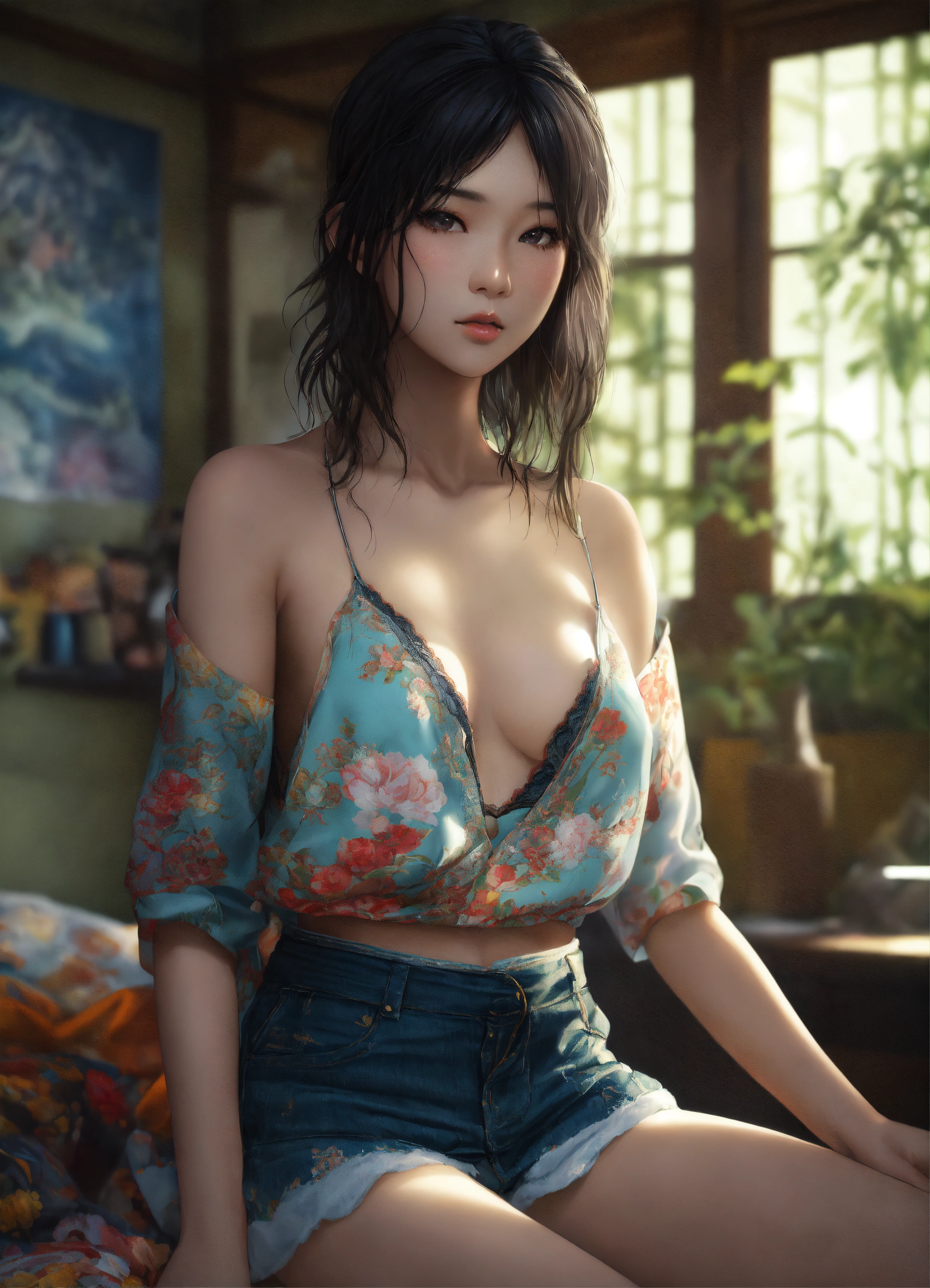 Photograph of a beautiful asian girl, soft skin, messy hair, thin legs, small bra, monet range murata artgerm katsuhiro otomo, highly detailed intricately sharp focus, bedroom eyes, full body photography, extremely realistic and hyper detailed, trending on pinterest vogue italia unreal engine 5, 4 k uhd image