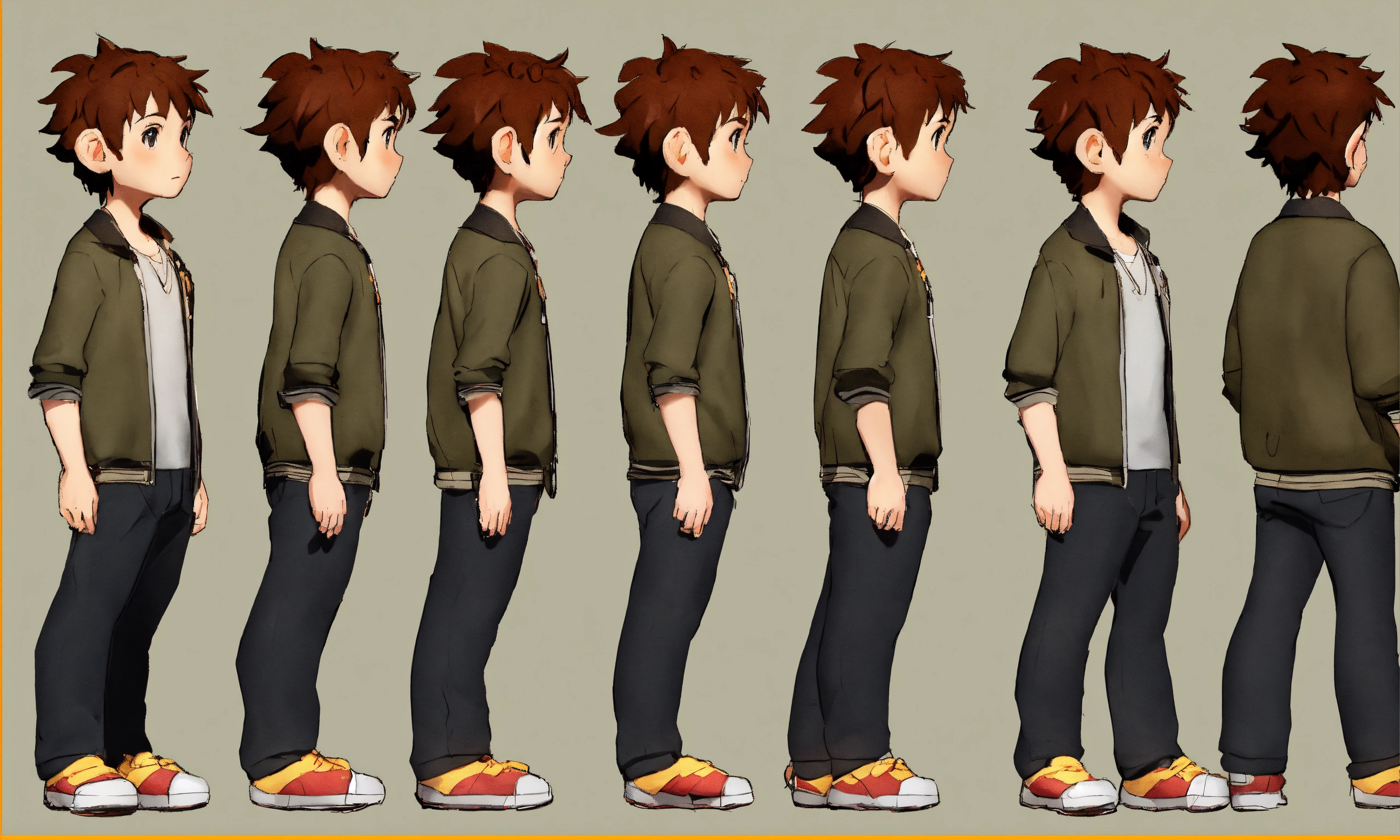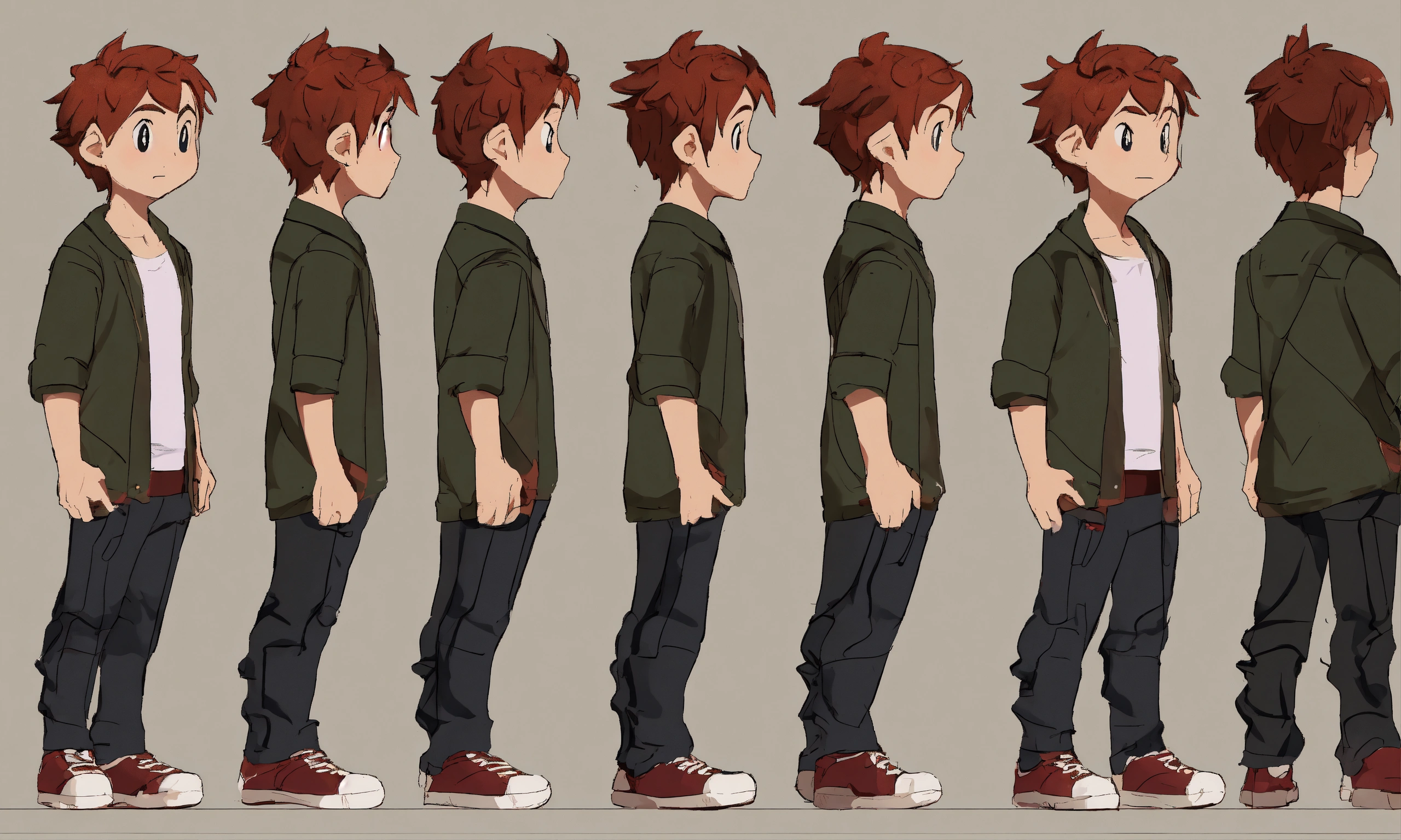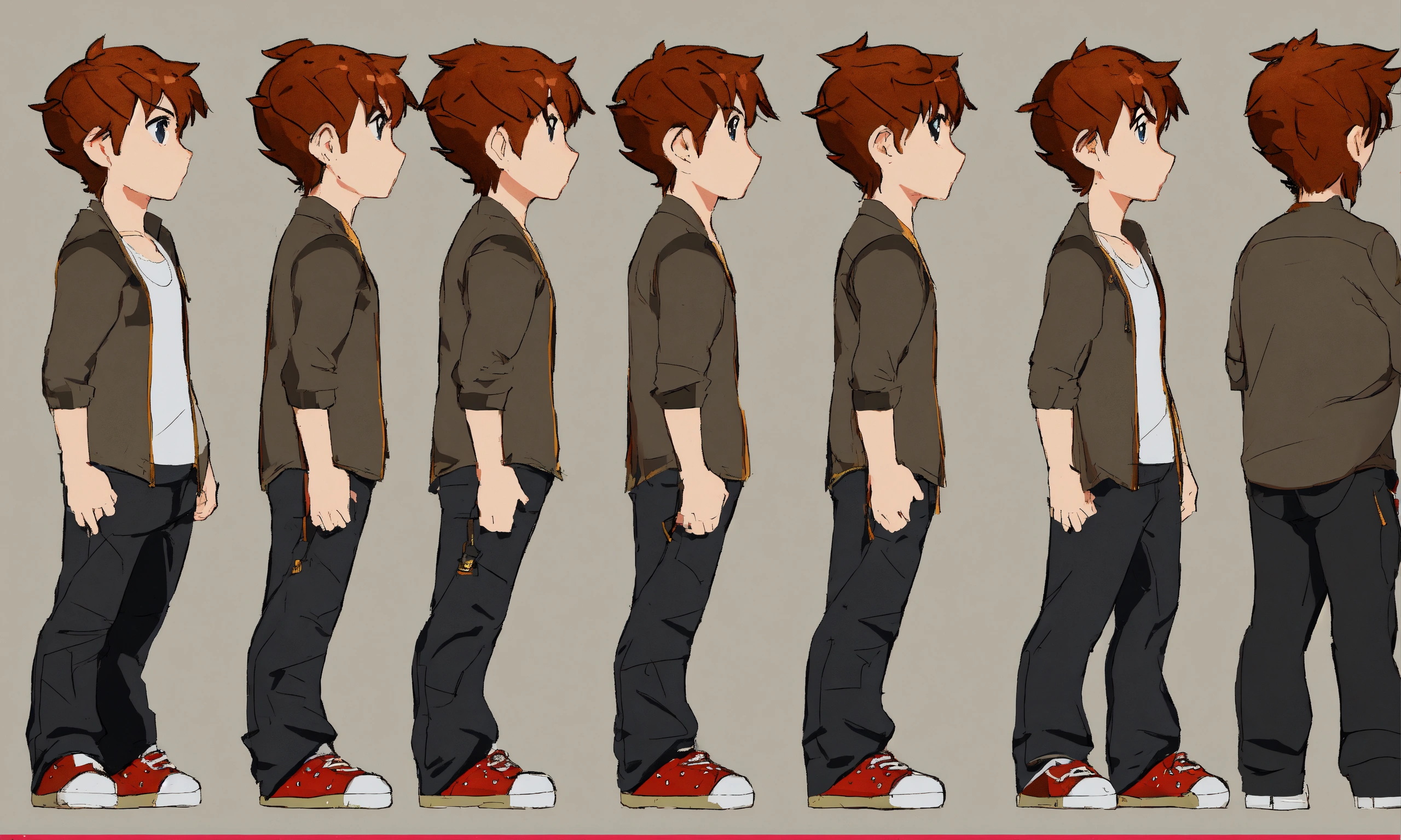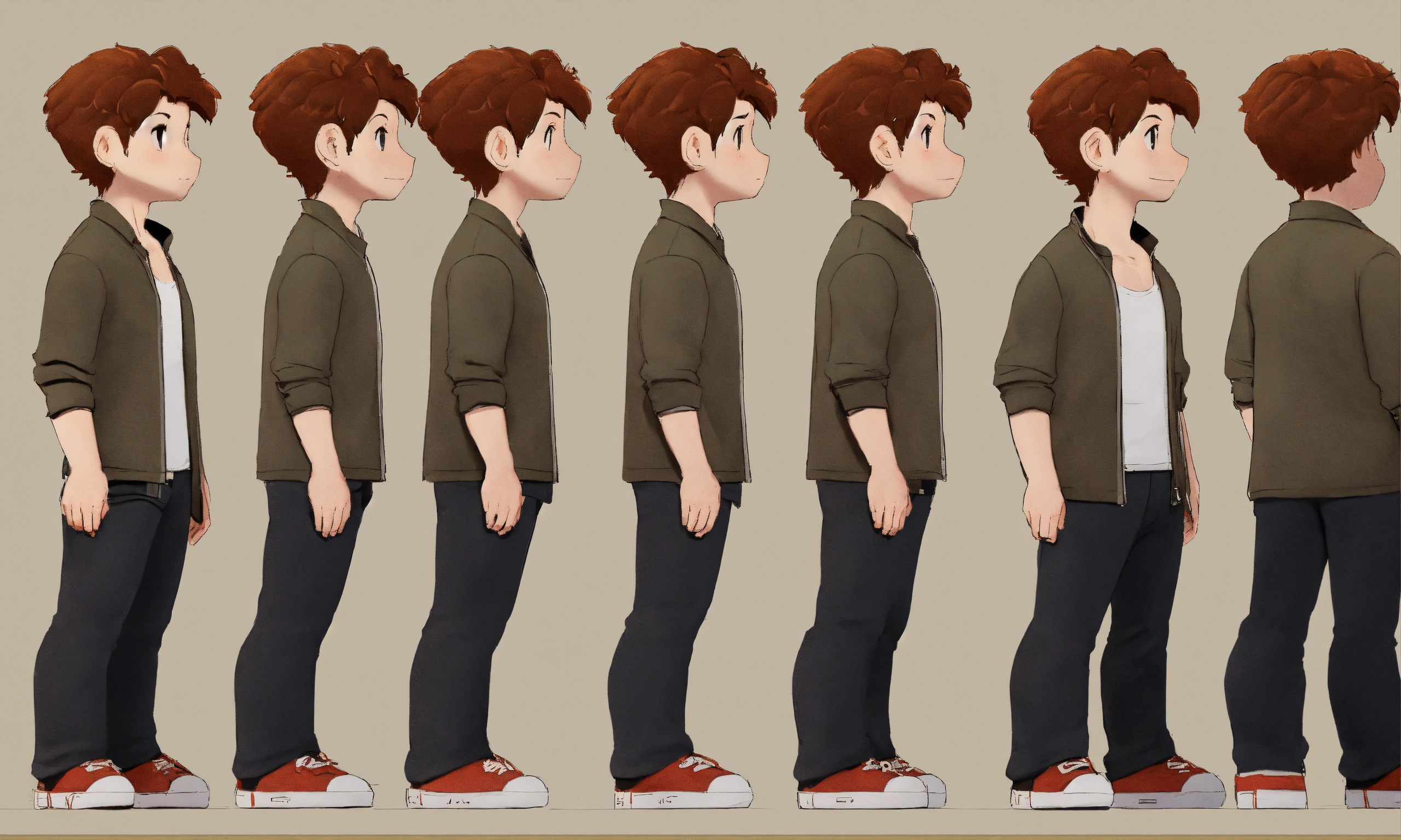 Man, cute, black, cartoon, character sheet, full body, reference sheet, character model, detailed, front view, side view, back view