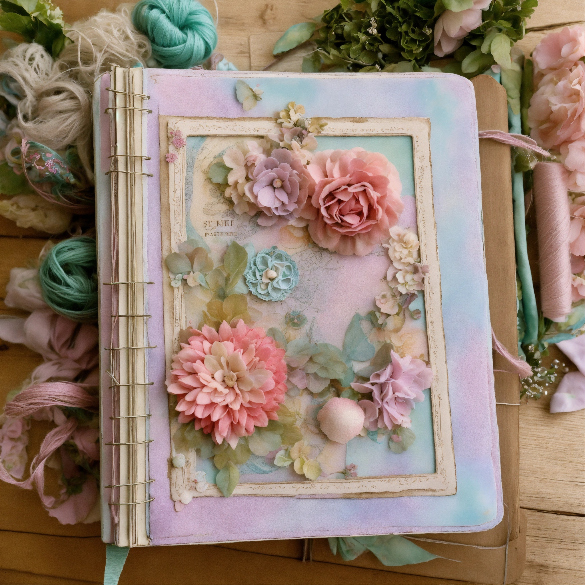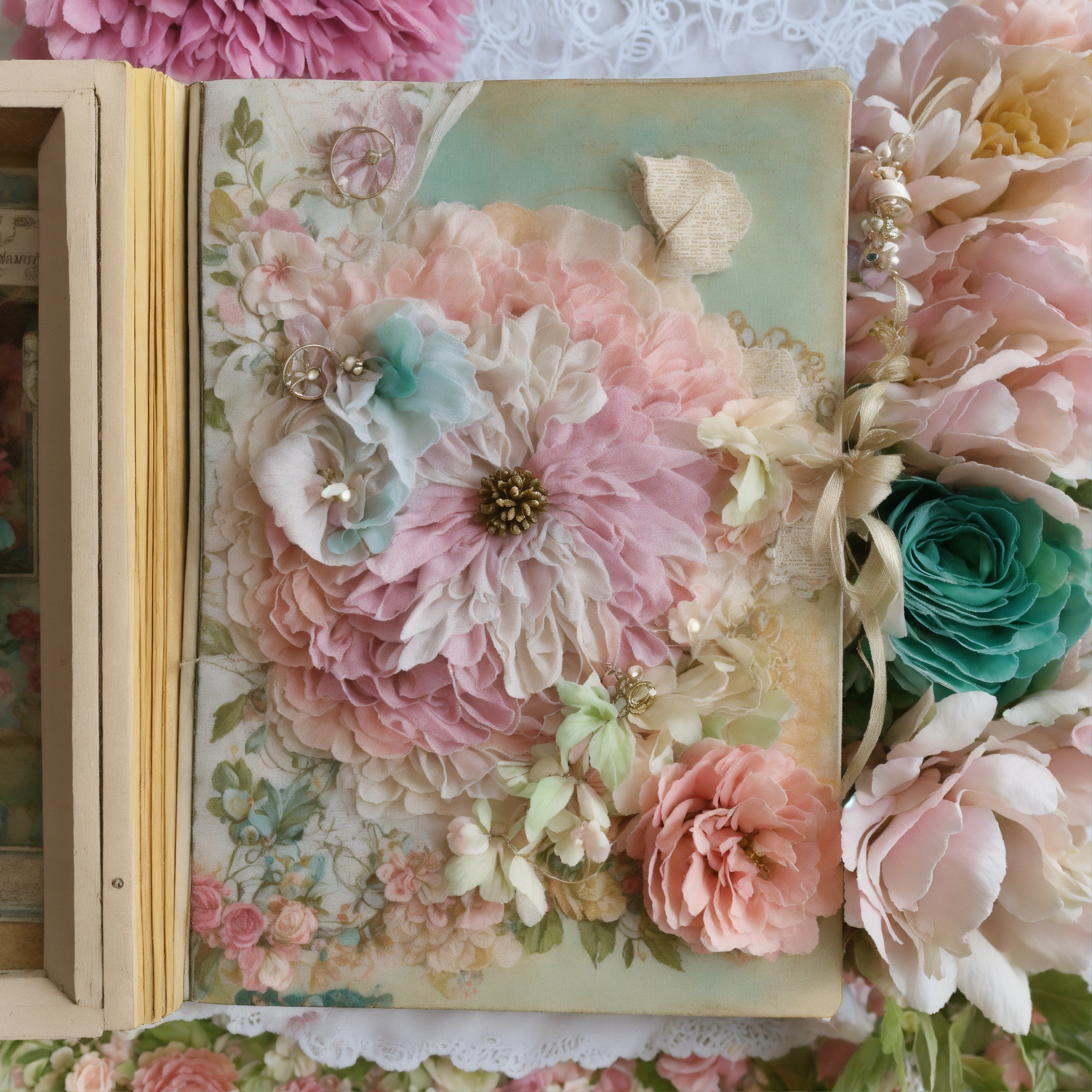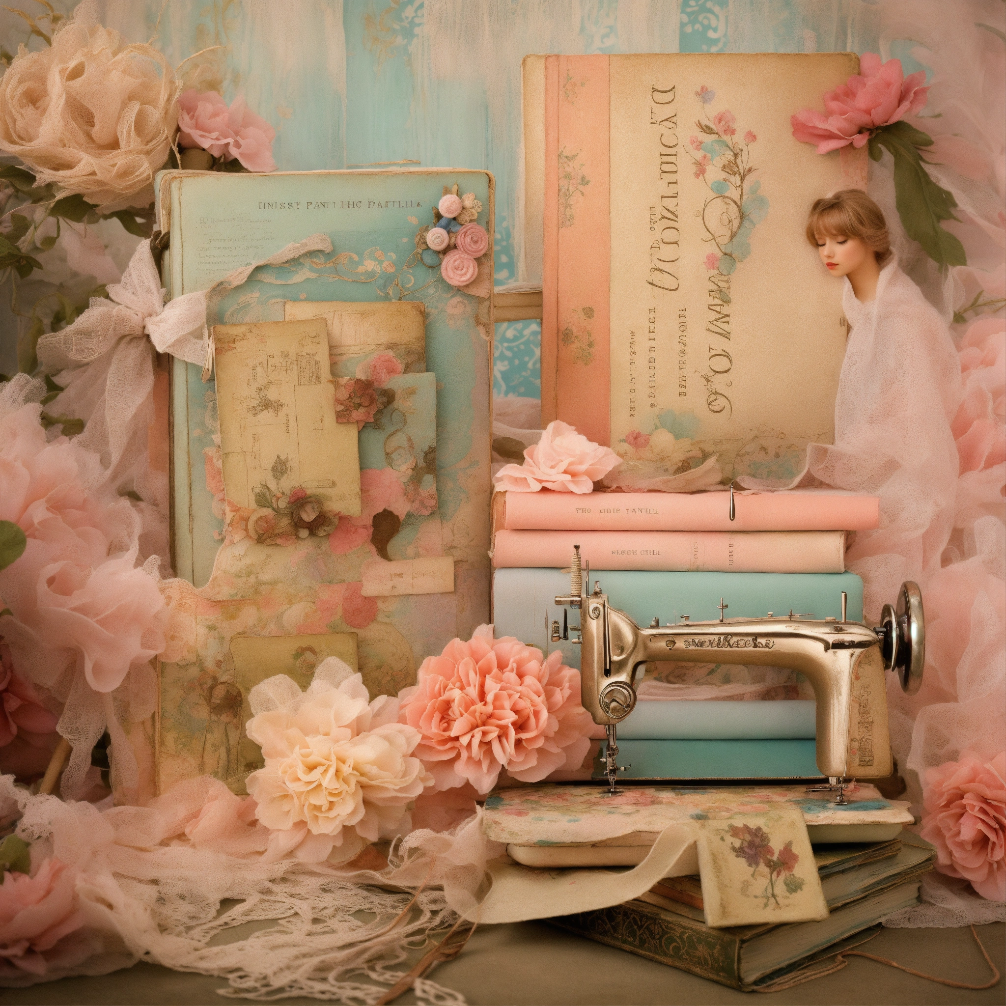 Shabby chic dreamy mist pastel junk journals vintage sewing patterns model and instructions swirling magical fairytale abstract art style