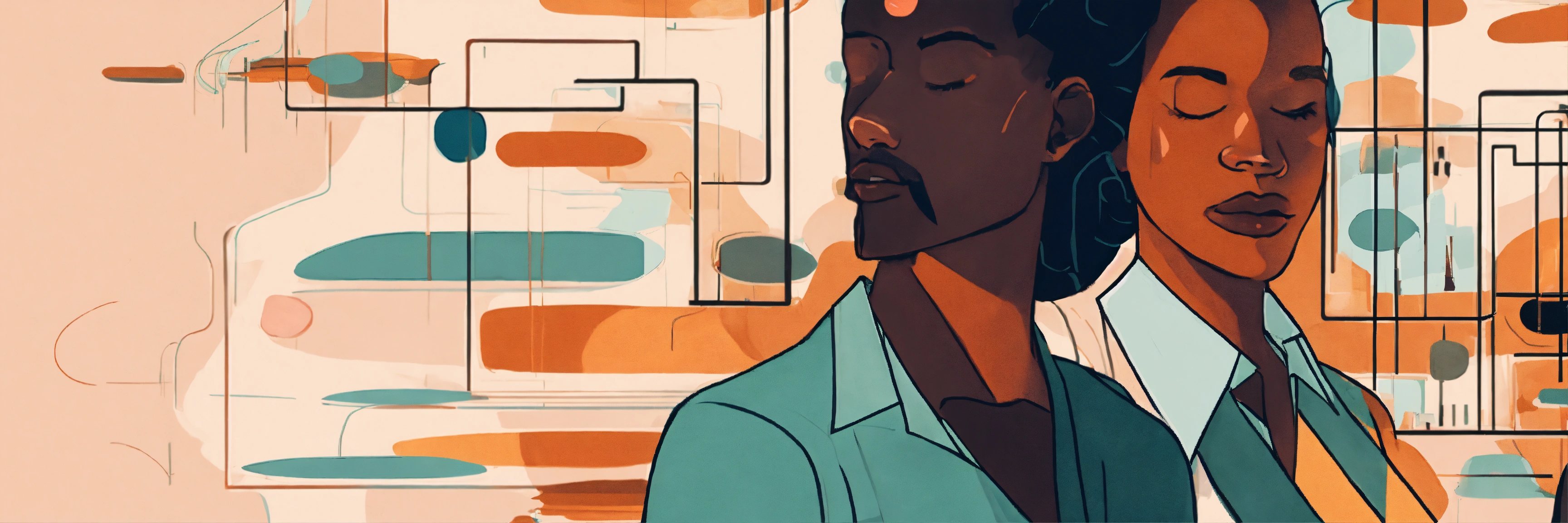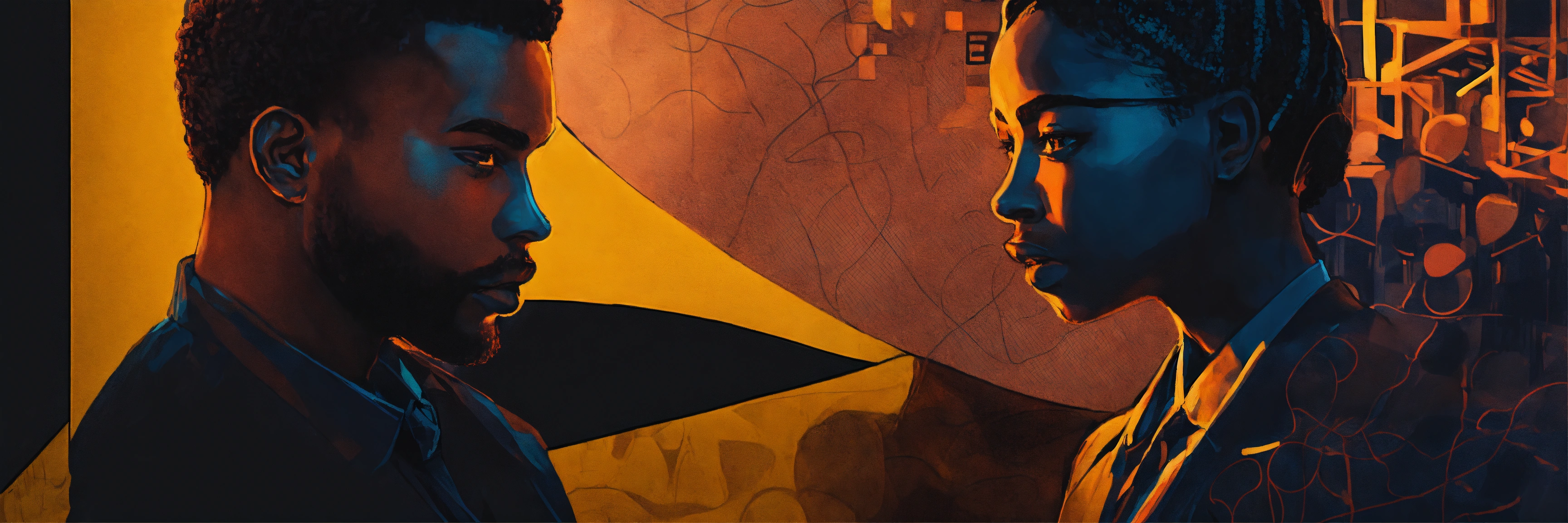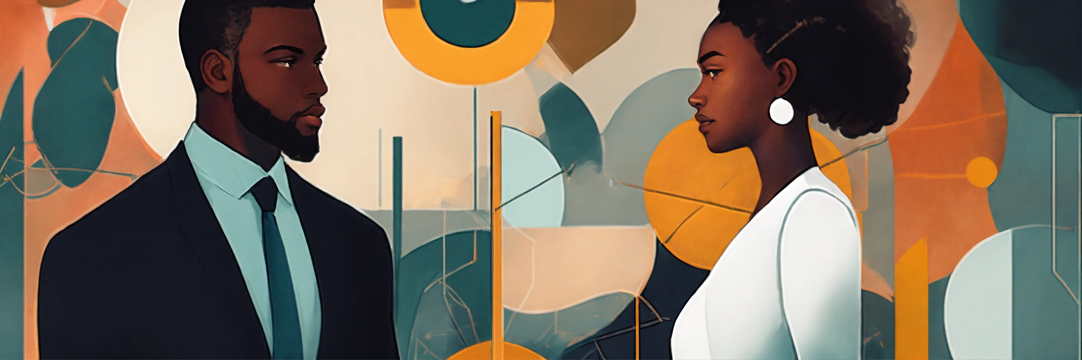 Abstract image black man and woman in the style of a drawing representing soft skills such as negotiation