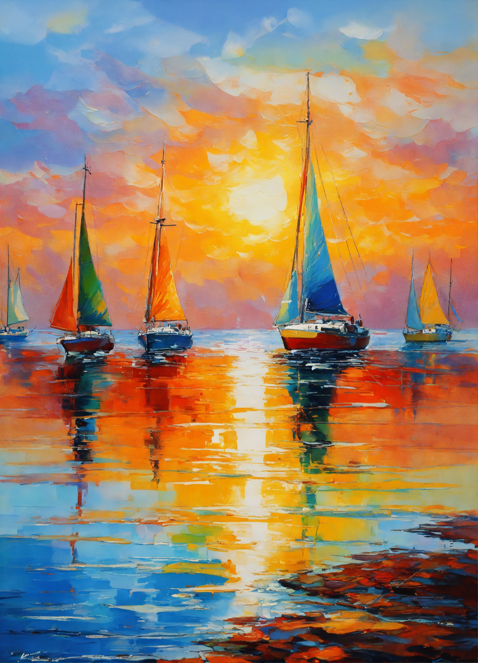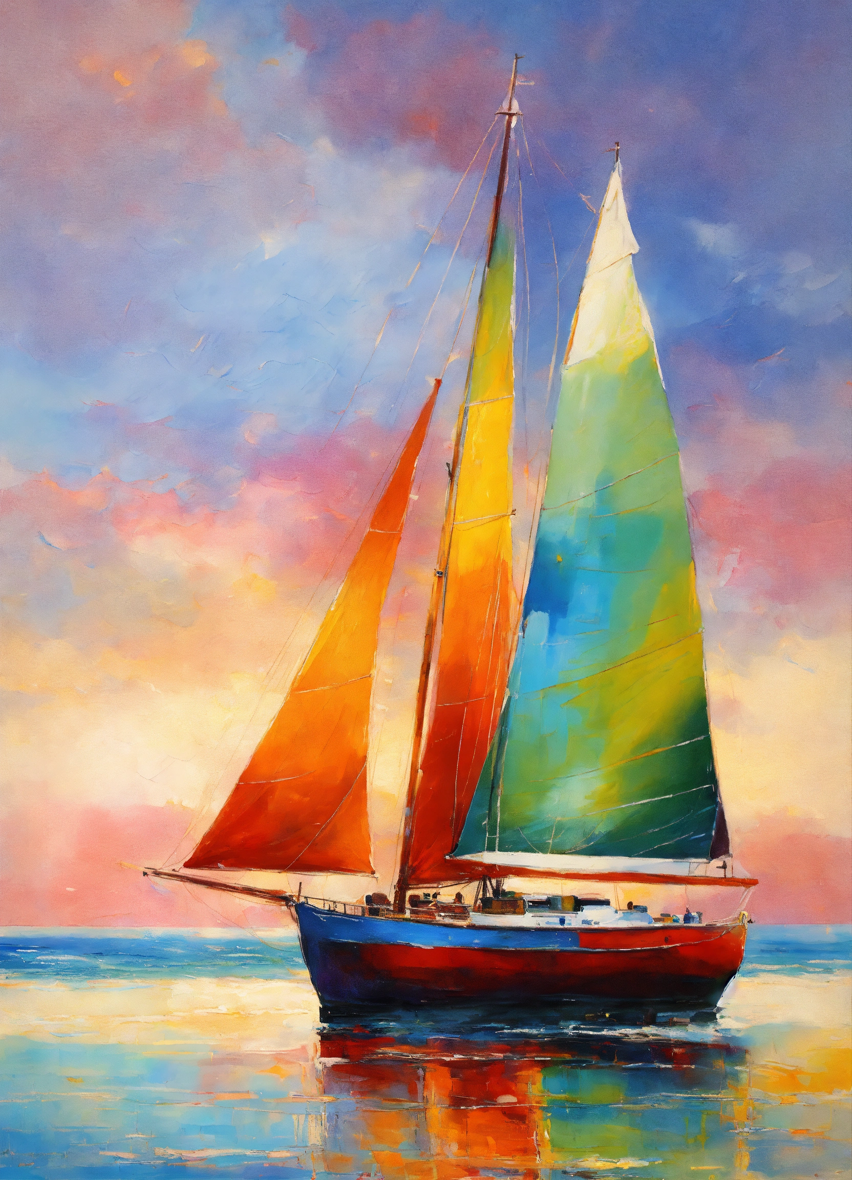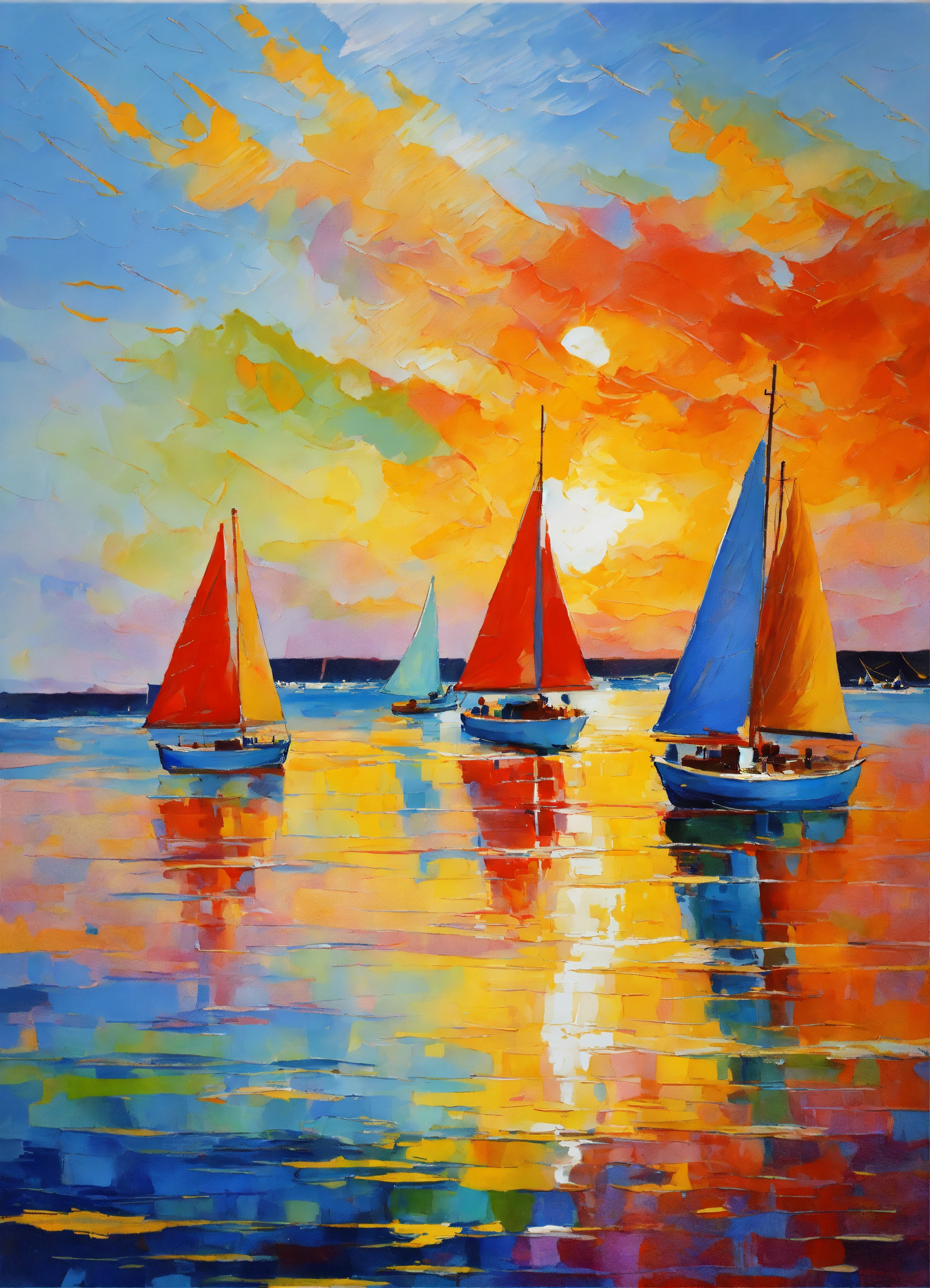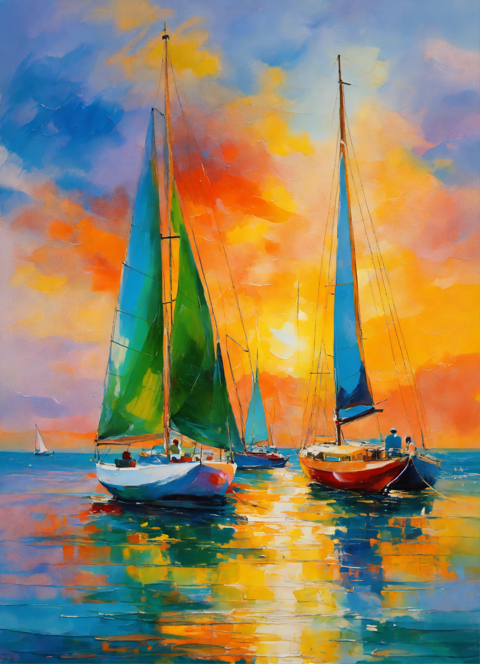 colorful seascape sail boats