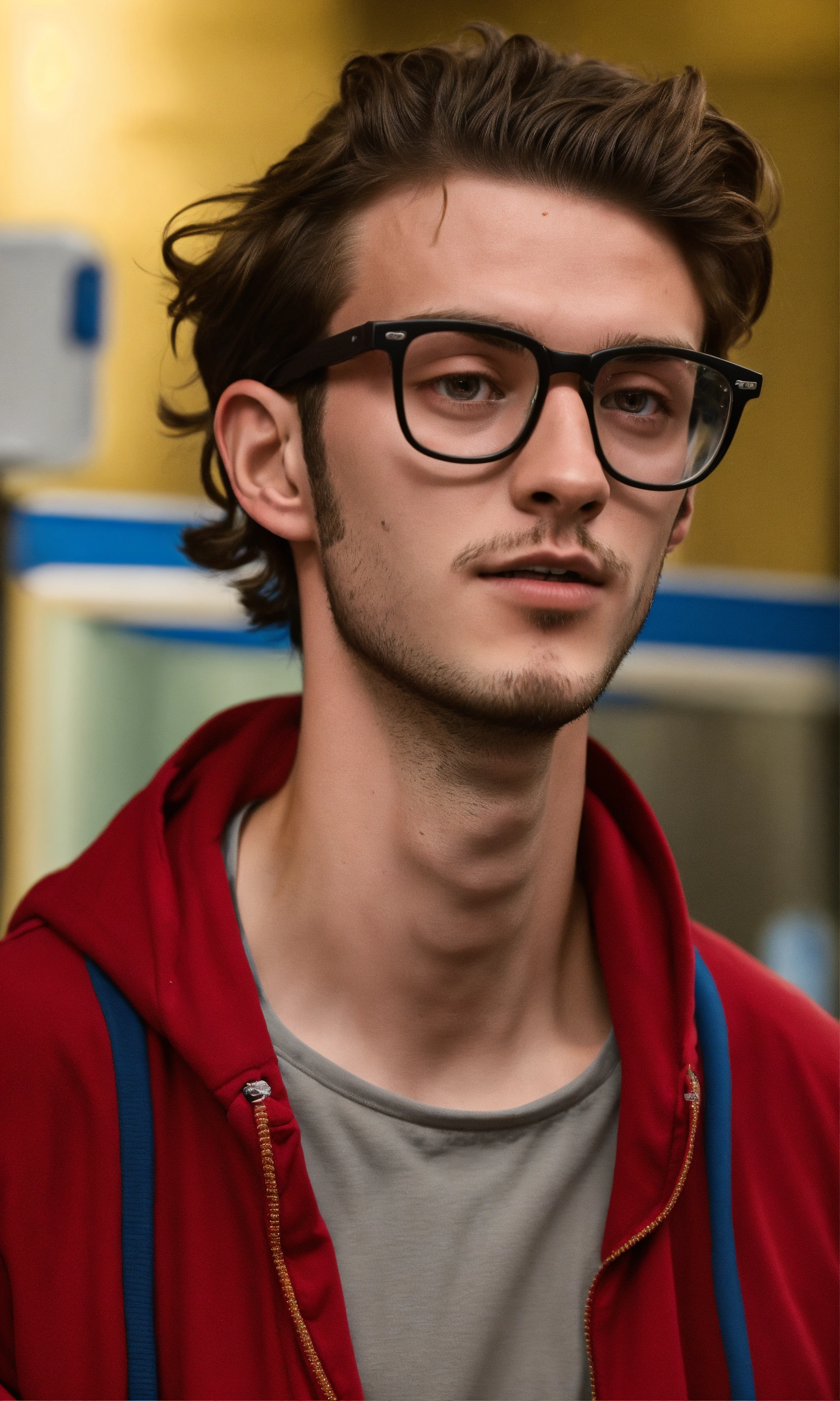 Ugly, skinny, 25 year old british man, he is wearing jogging bottoms, he has greasy hair and is wearing glasses, he is being rushed to hospital in a stretcher