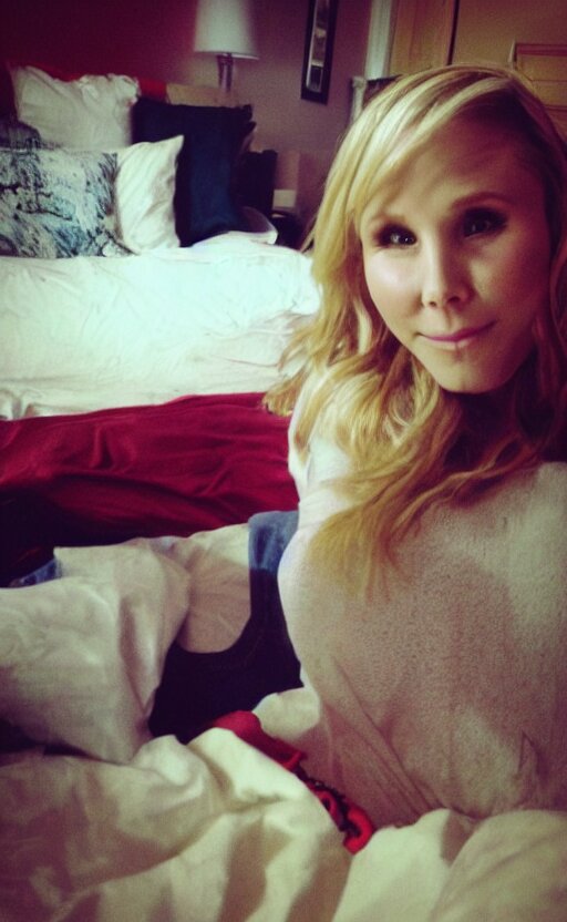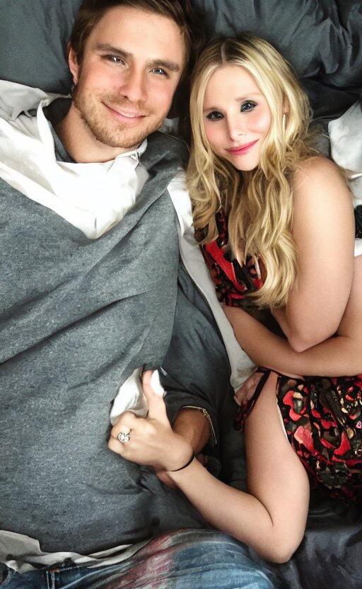 First person view photograph i took of my sexy date with kristen bell, my pov!!!!, in my bedroom, on my bed