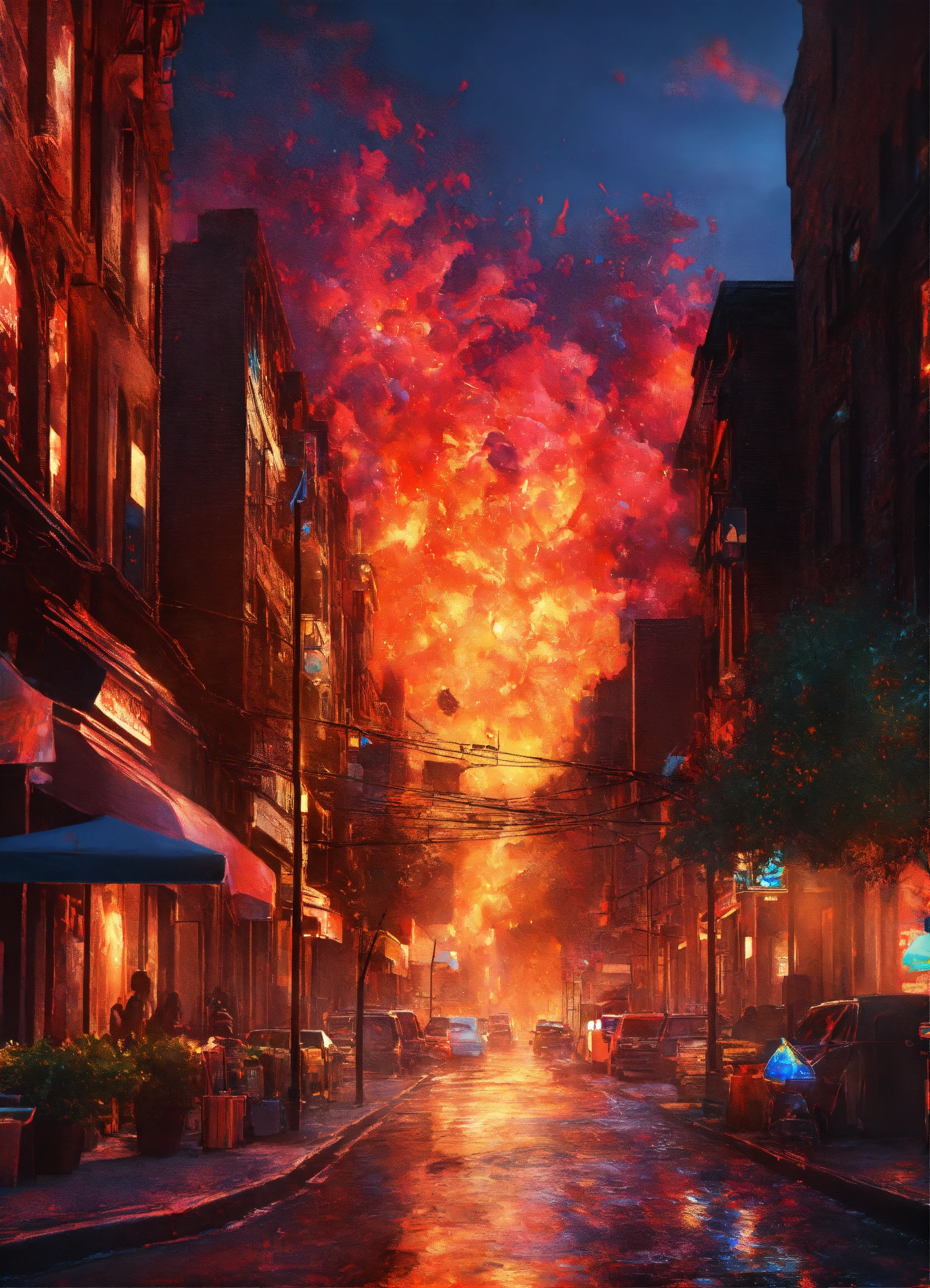 (a new york neighborhood), hyperdetailed, tee-shirt design, line art, ultra detailed artistic, colour splash art, fire and ice, splatter, black ink, liquid melting, dreamy, glowing, glimmer, shadows, oil on canvas, brush strokes, smooth, ultra high definition, 8k, unreal engine 5, ultra sharp focus, intricate artwork masterpiece, ominous, golden ratio, highly detailed, vibrant, production cinematic render