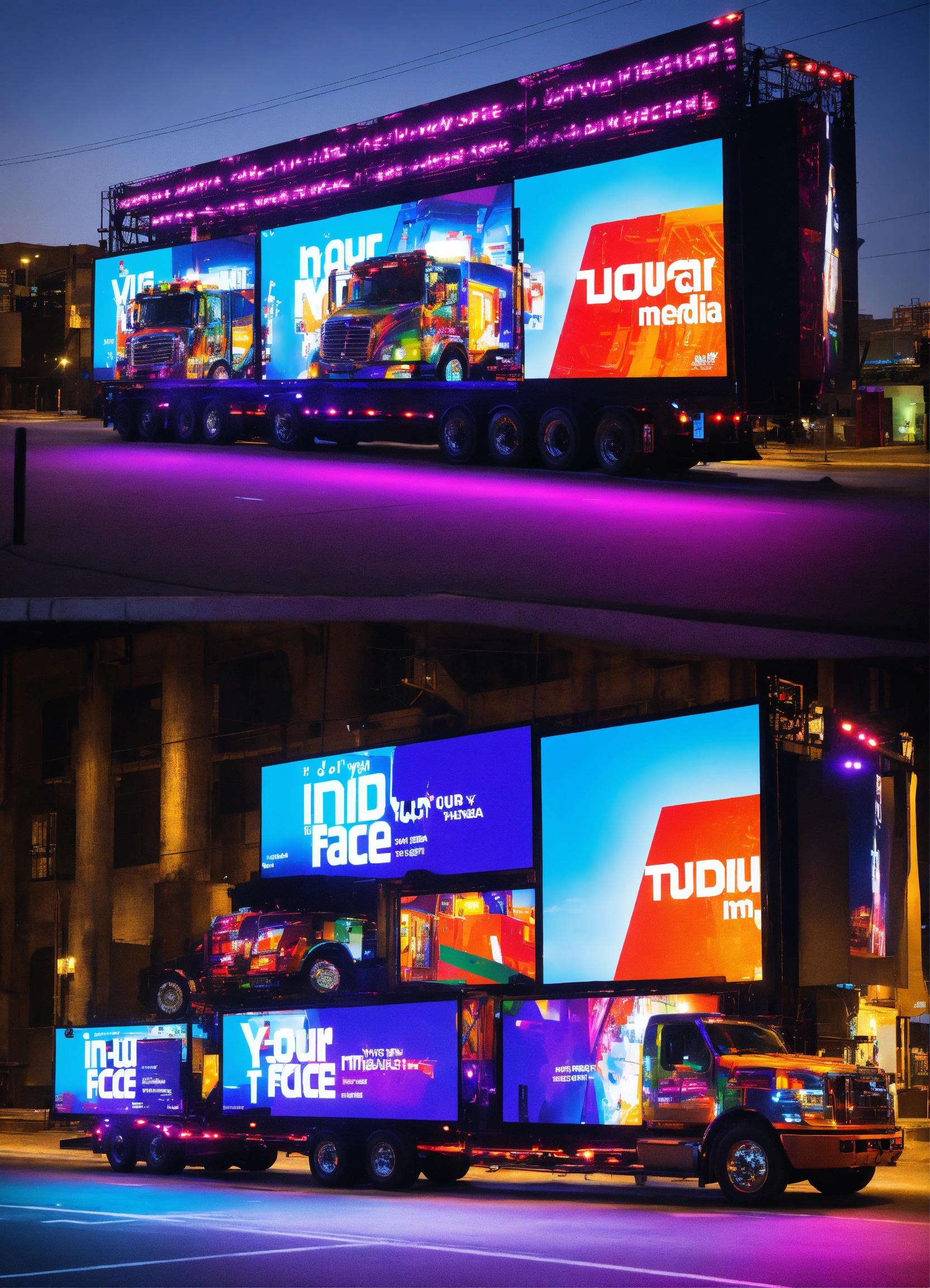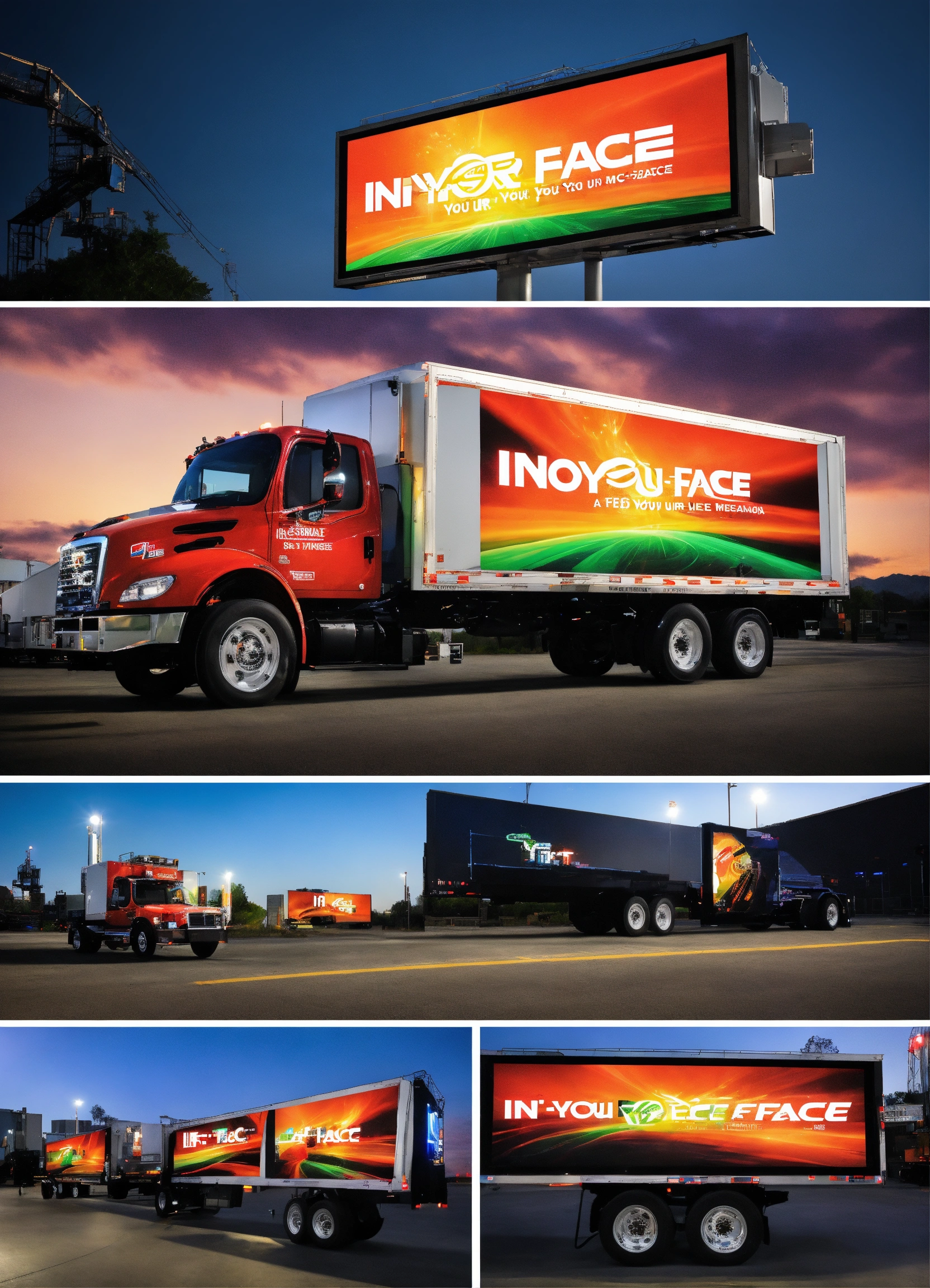 Create a logo for 'in-your-face media, ' a dynamic led sign truck advertising company. capture the essence of attention-grabbing, innovative advertising on led screens. emphasize boldness, visibility, and impact. use vibrant colors and typography to convey energy and professionalism.