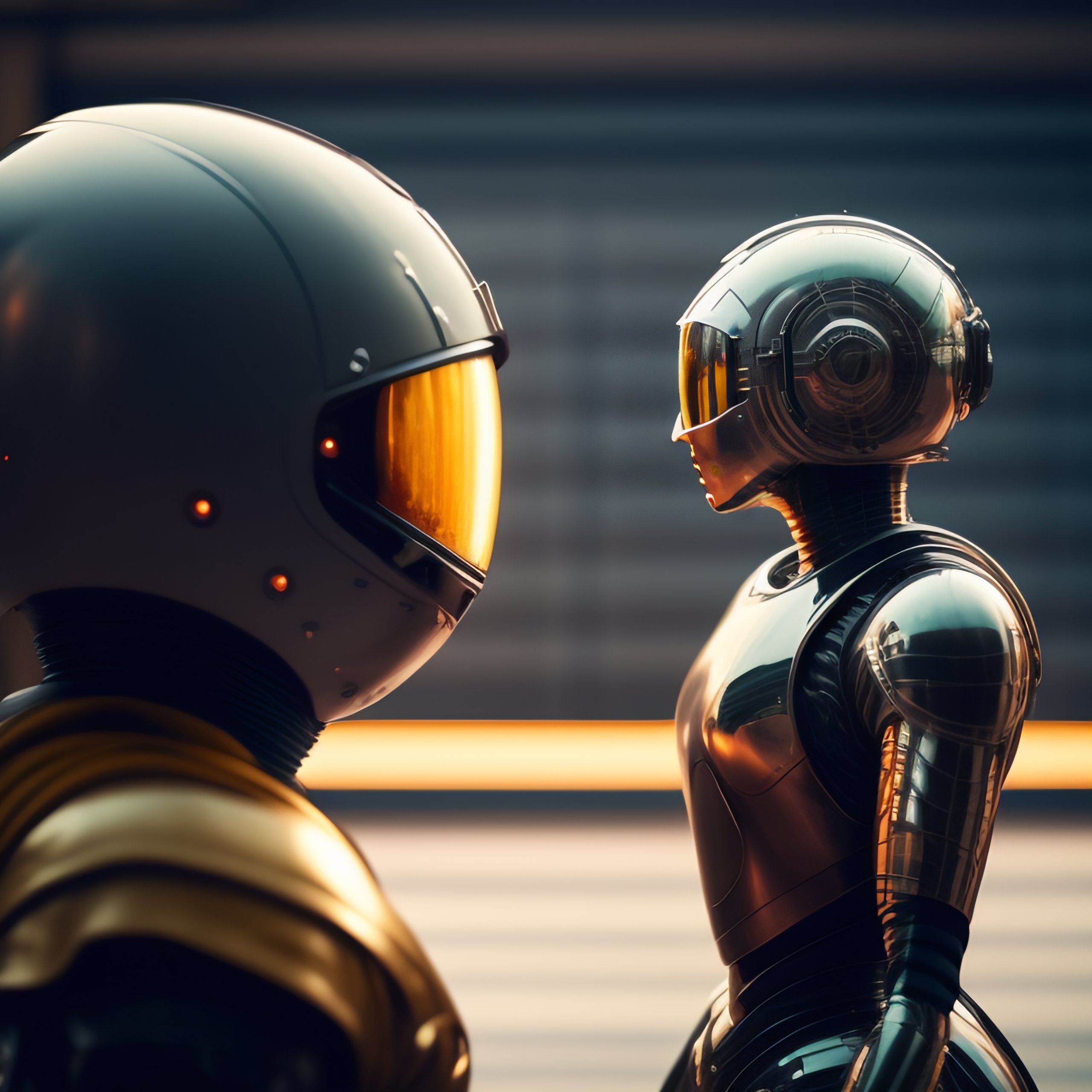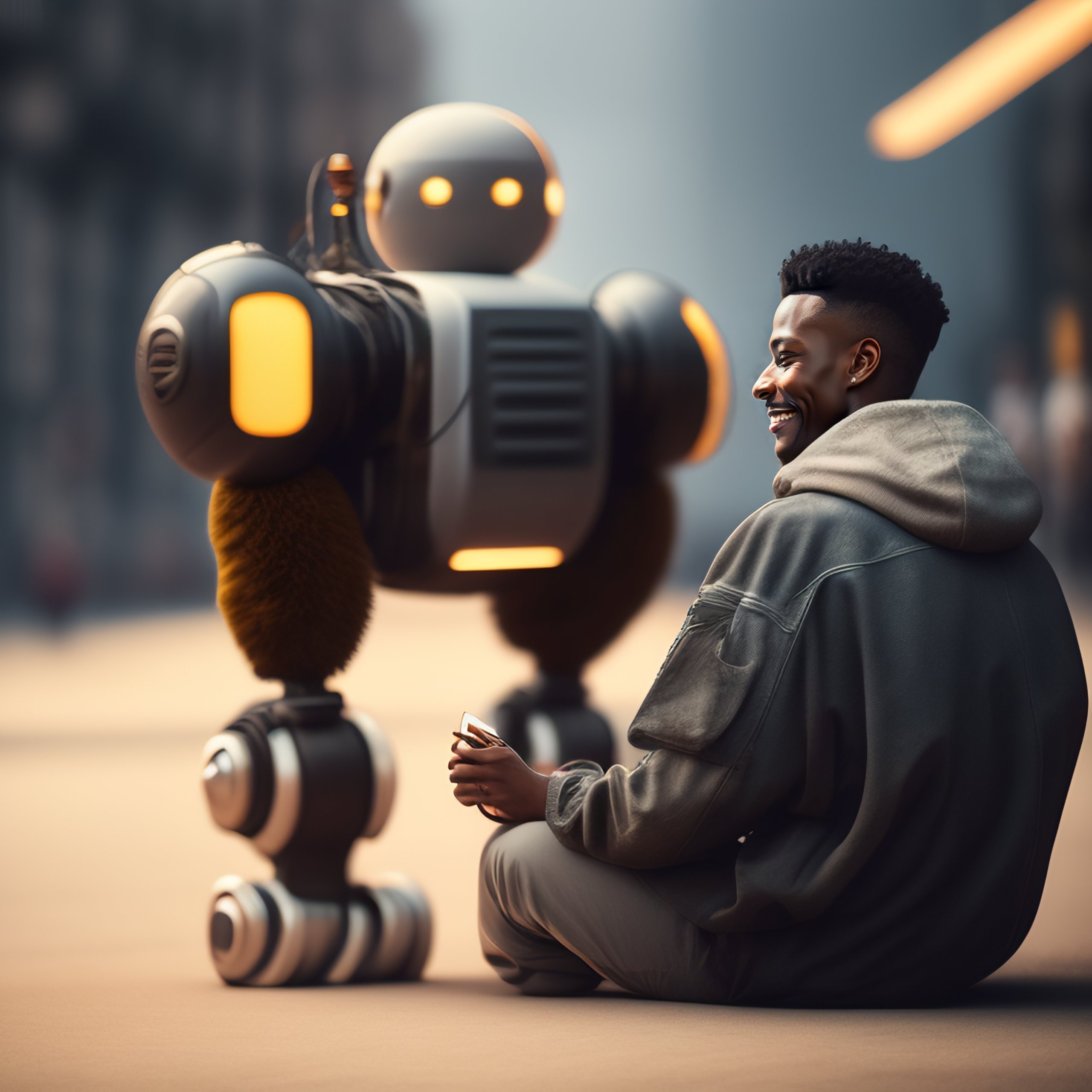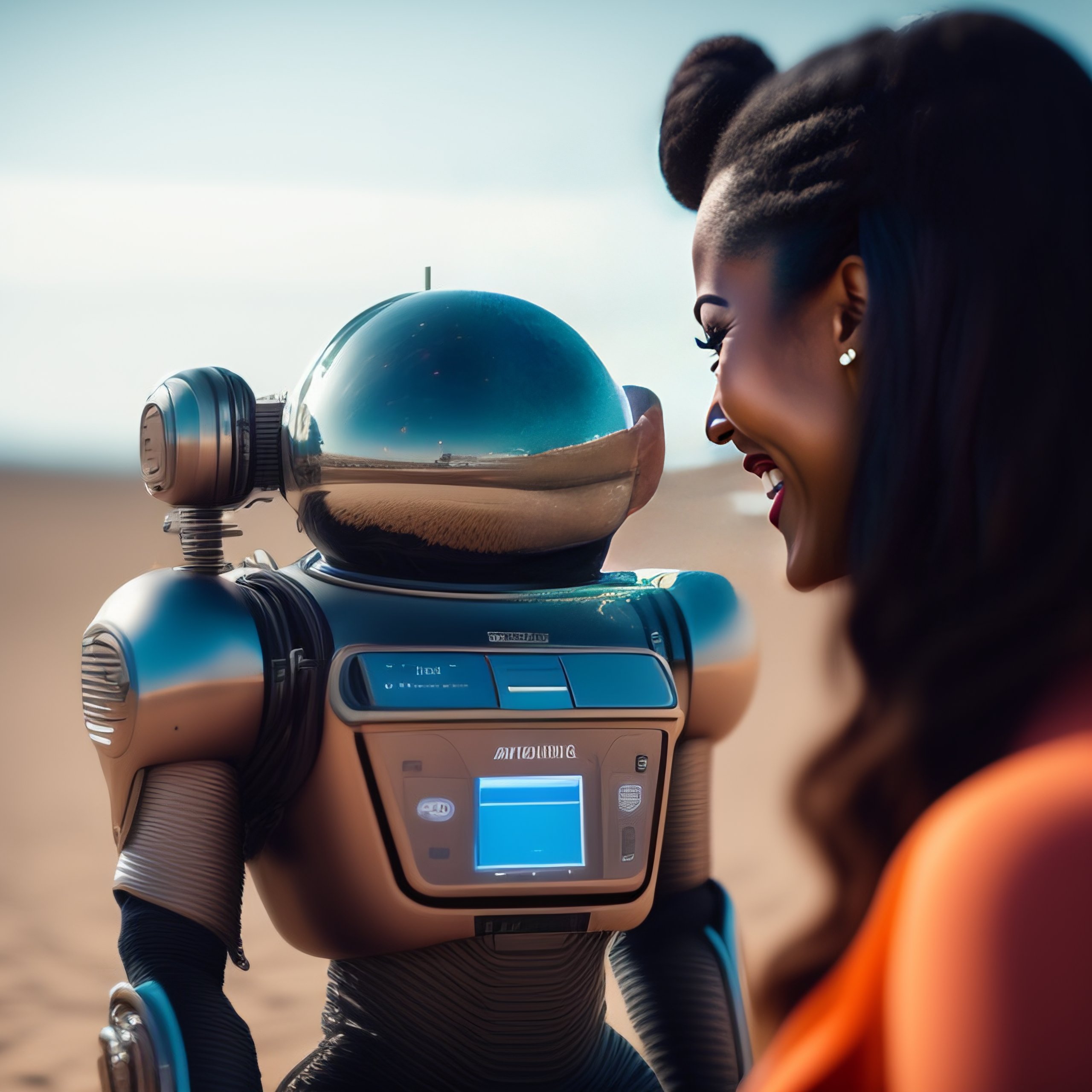 smiling robot having a casual conversation with a human