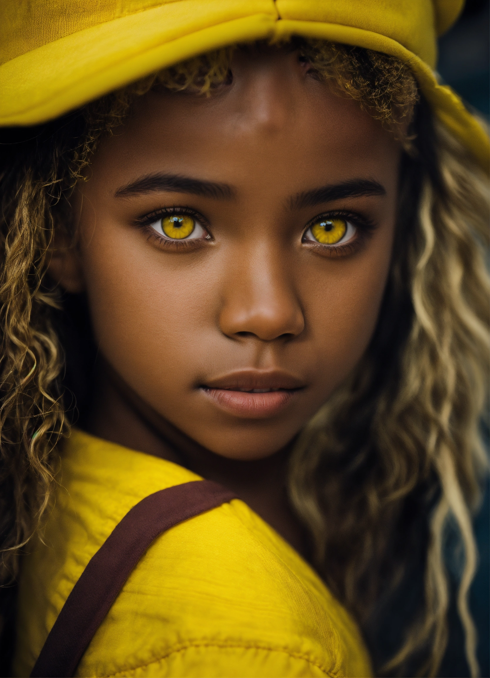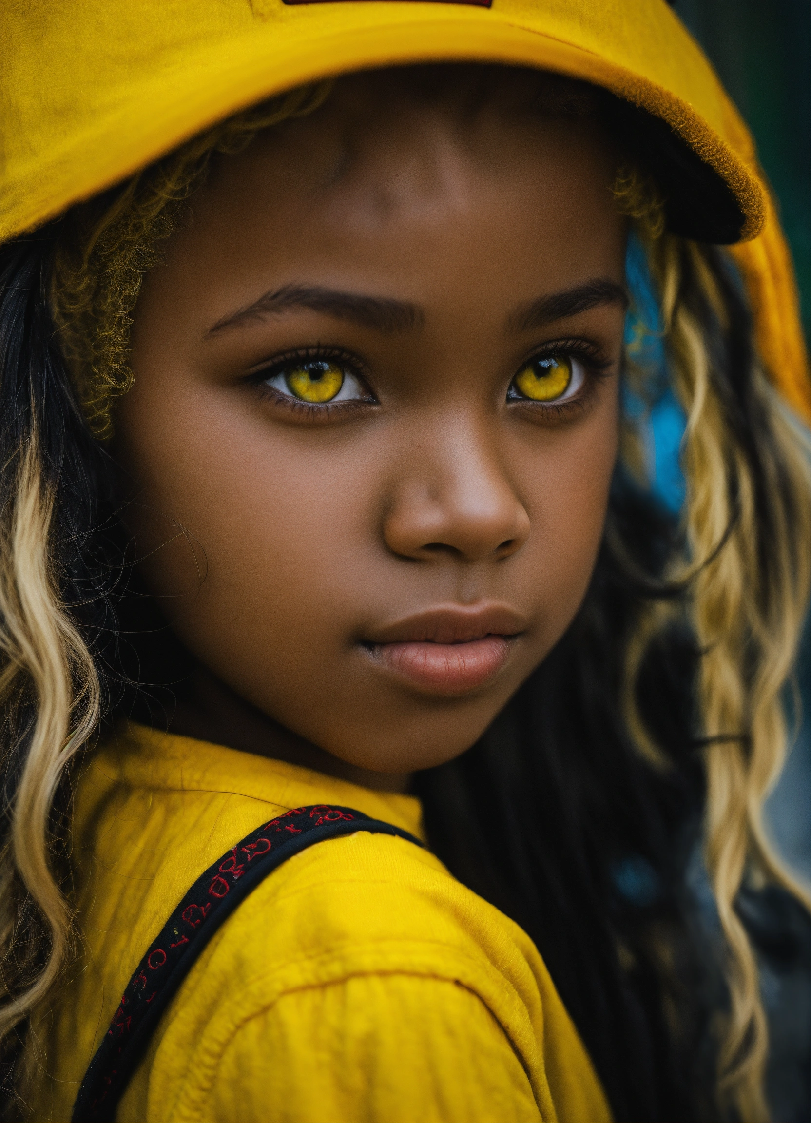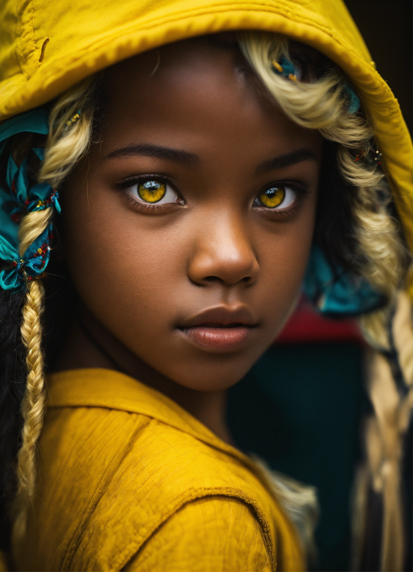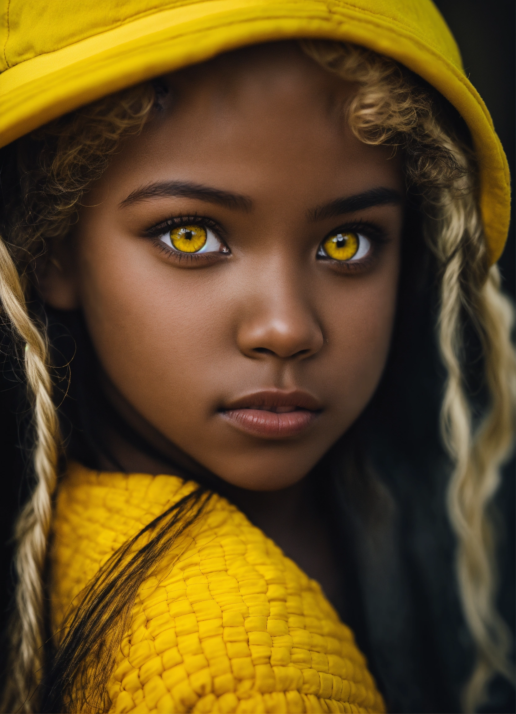 Black kid yellow eyes blonde hair