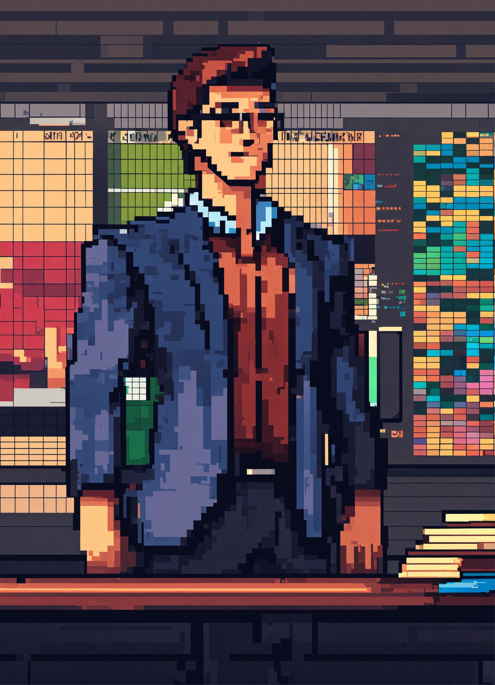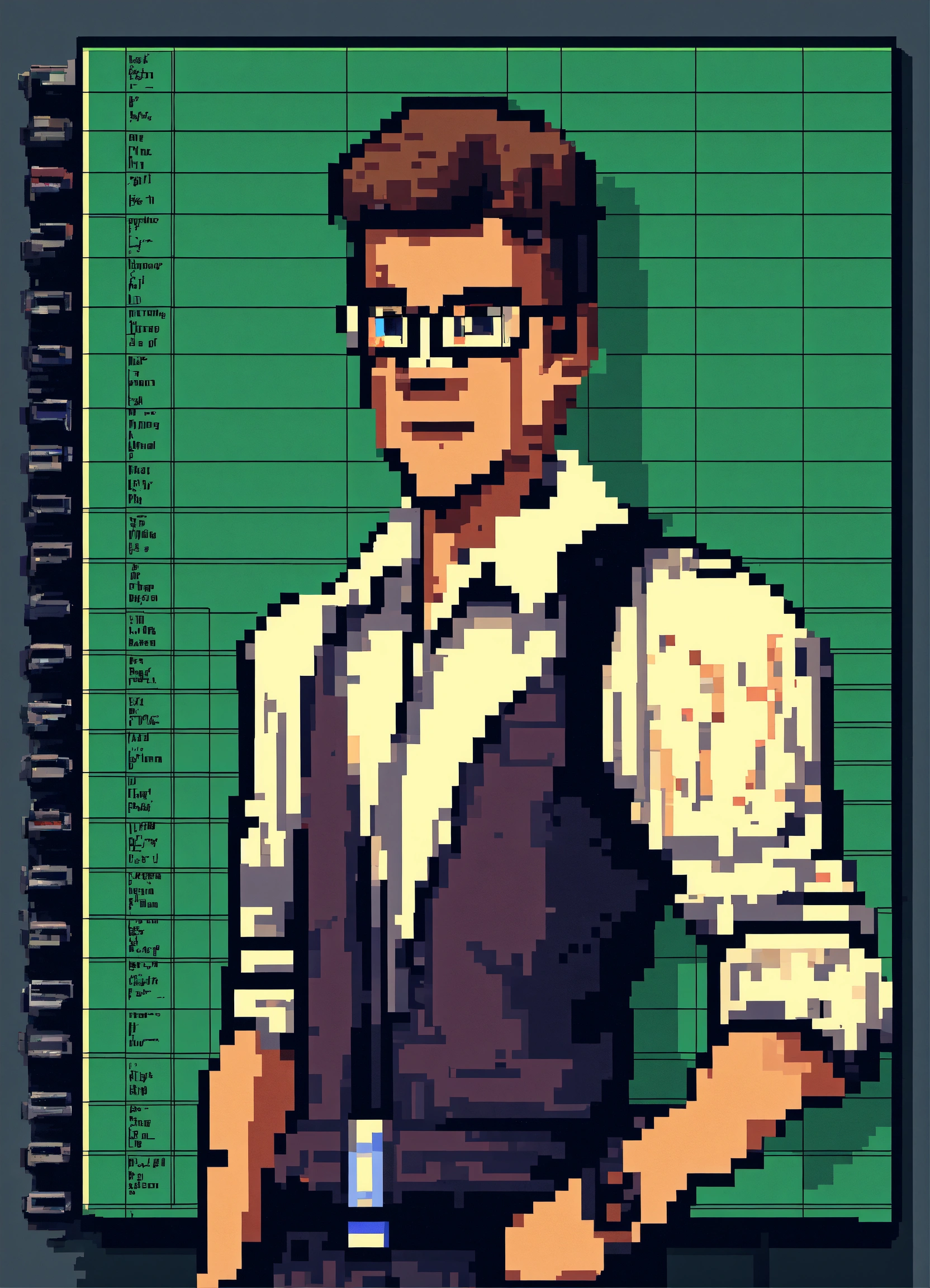 Pixel art of a strapping young man who is exceptionally good at spreadsheet software, his nickname is the hexecutor