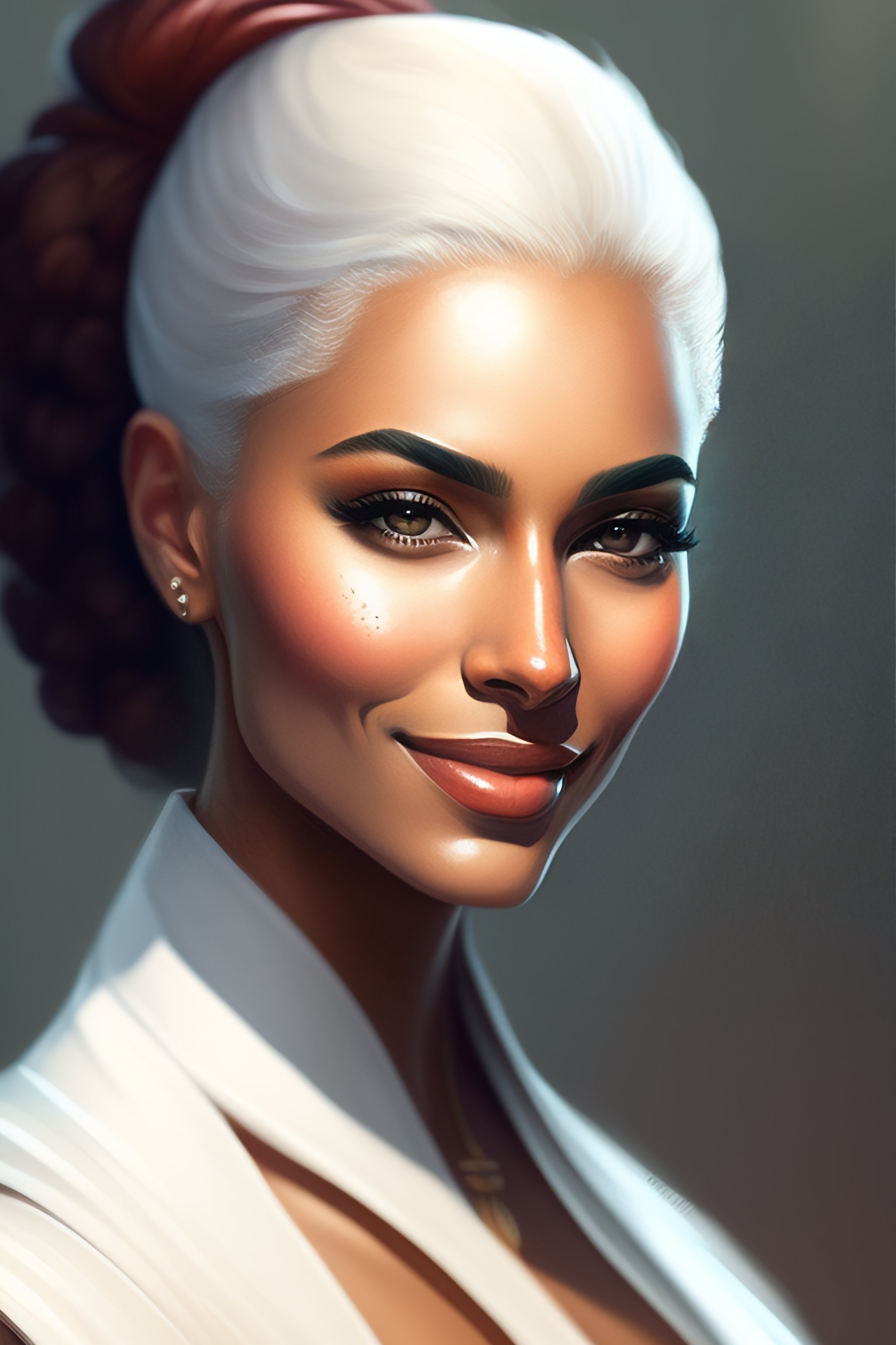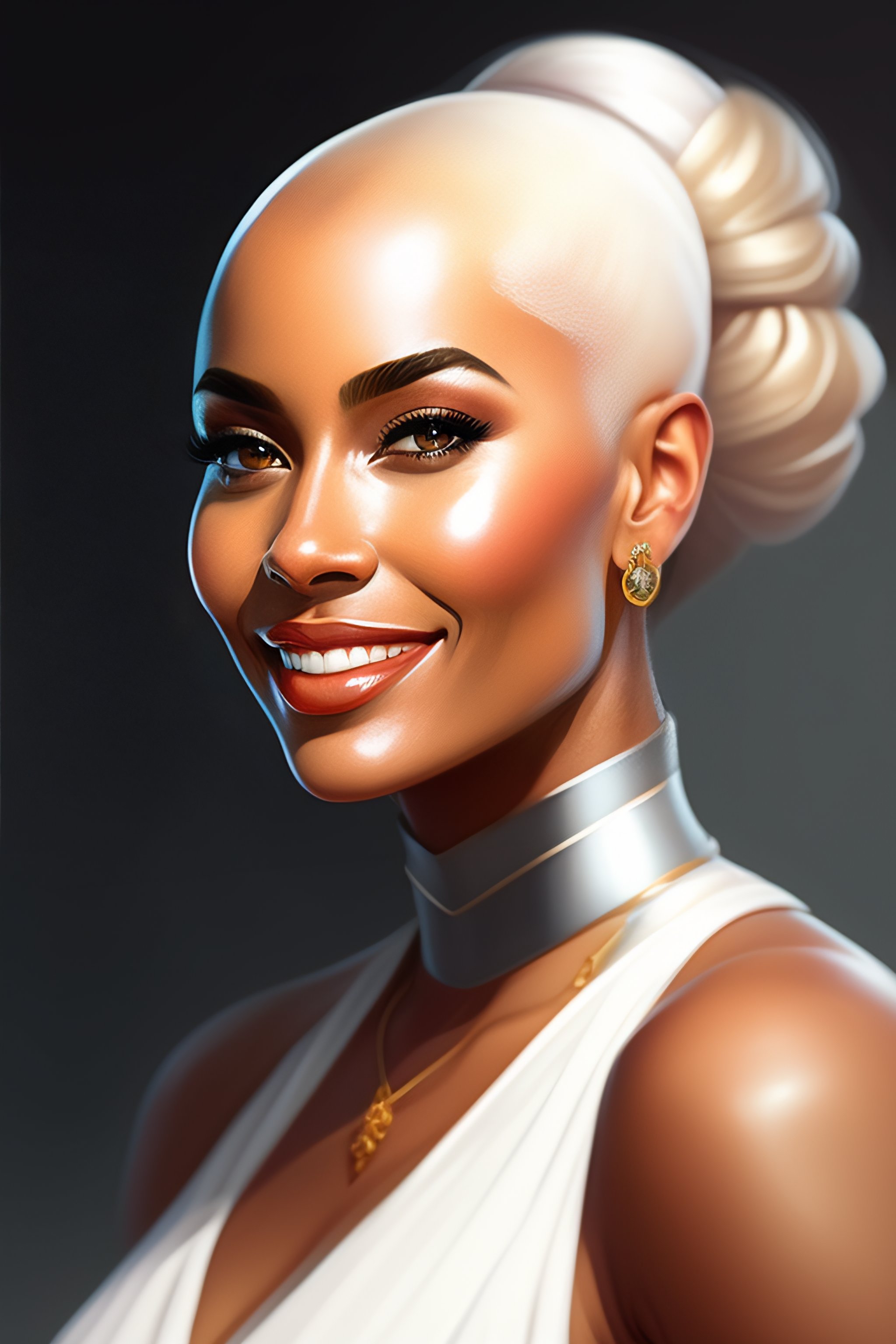 Bald white woman, thayan, coy smile, digital painting, artstation, concept art, smooth, illustration, art by kieran yanner