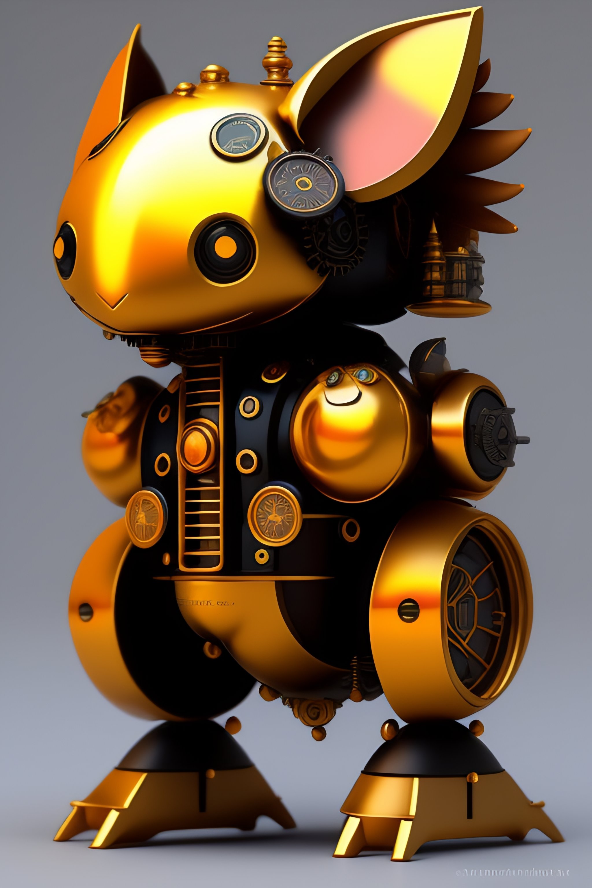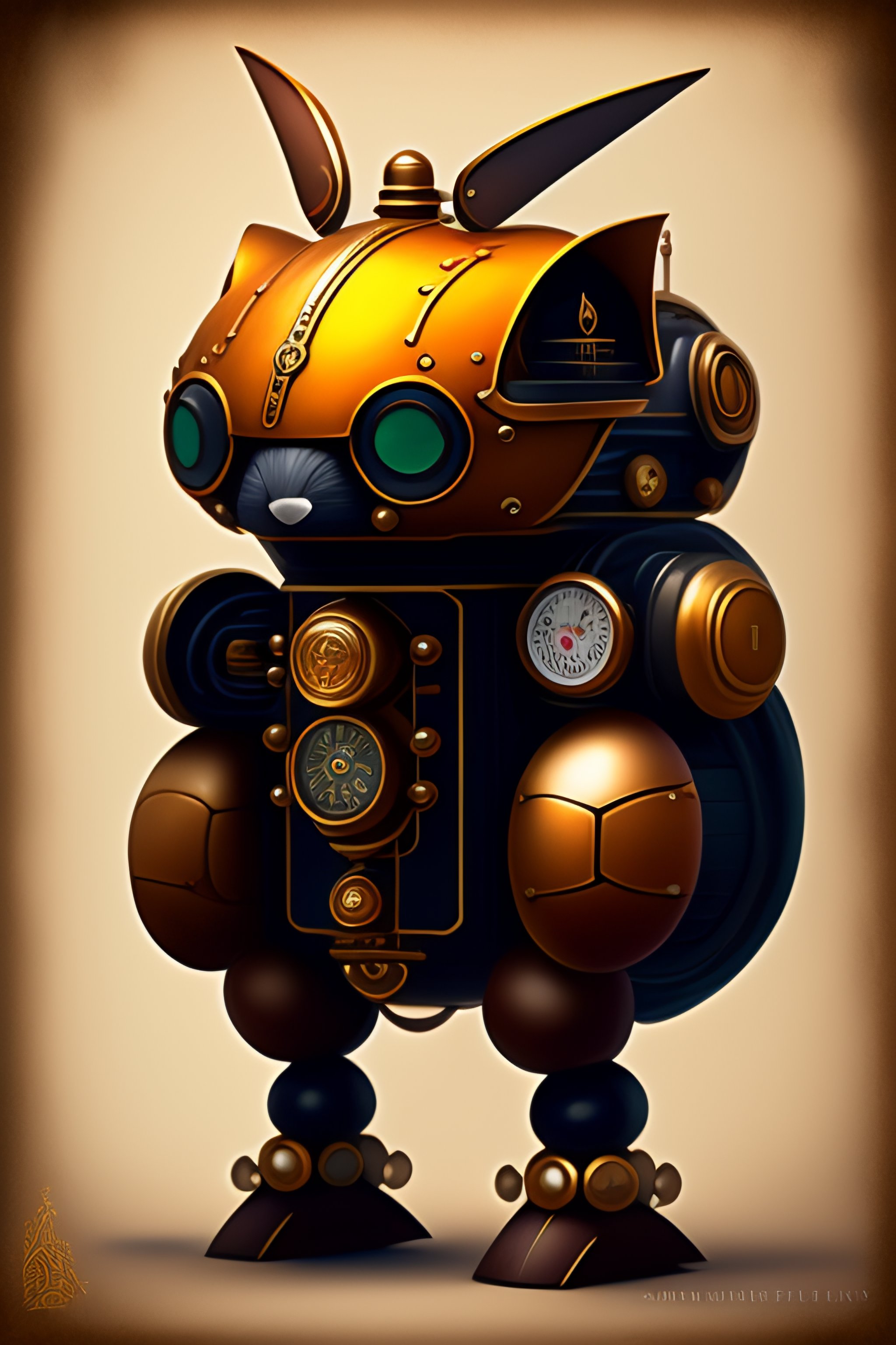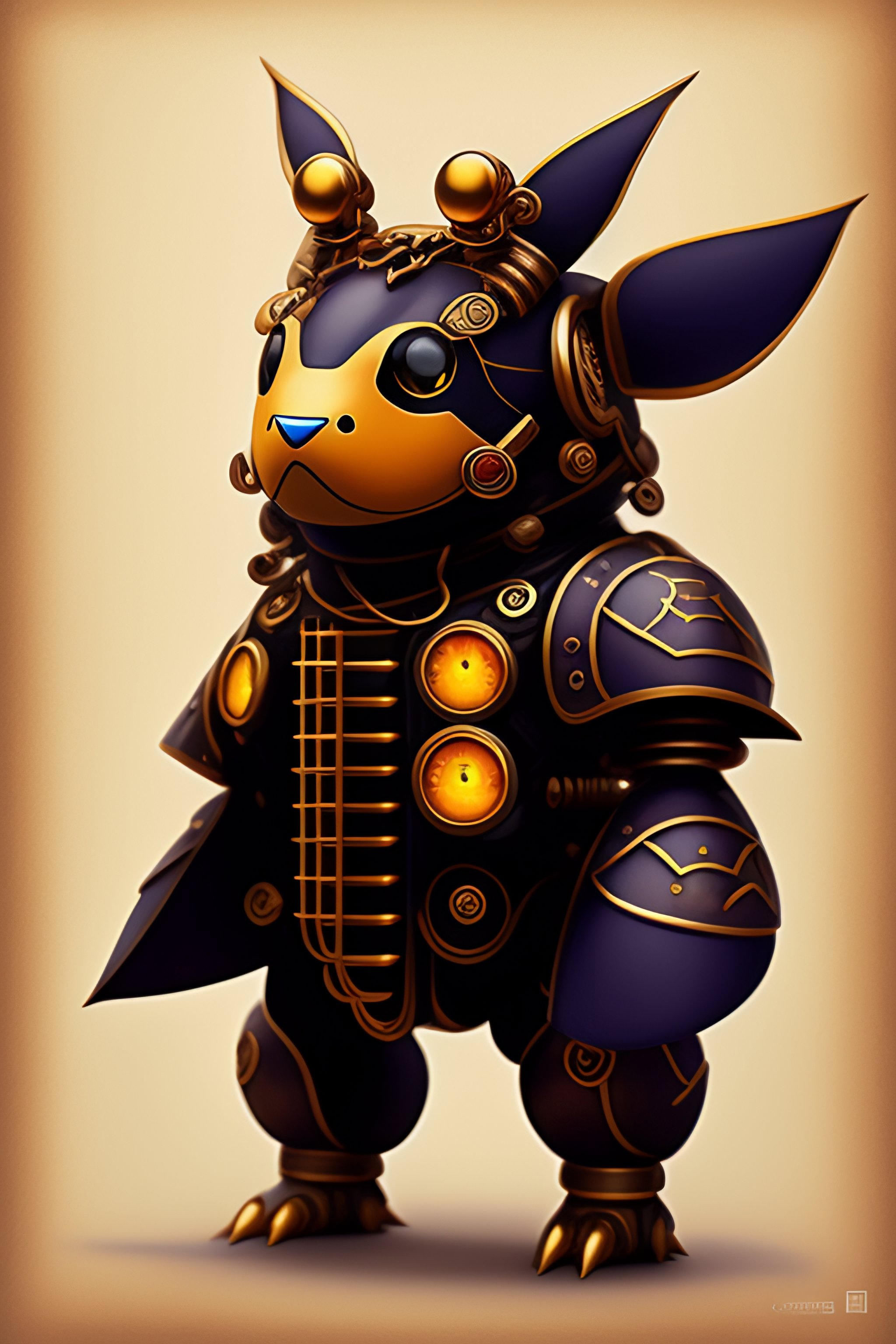 Lapanese painting of a steampunk mechanical pokemon done in a minimalist style