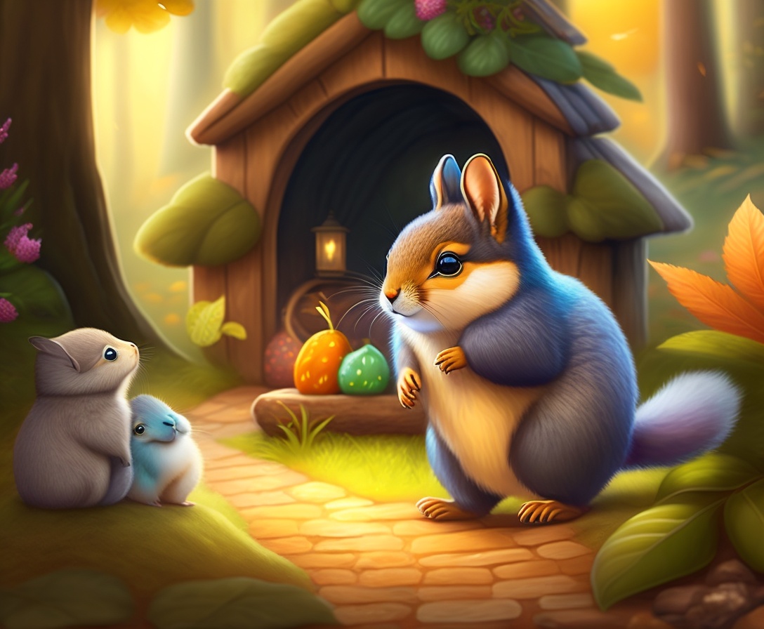 Inside, little squirrel discovered a hidden treasure trove of magical creatures. there were talking rabbits, singing birds, and even a wise old owl who shared stories of distant lands. the forest came alive with laughter and joy as sammy made friends with all the enchanting creatures.