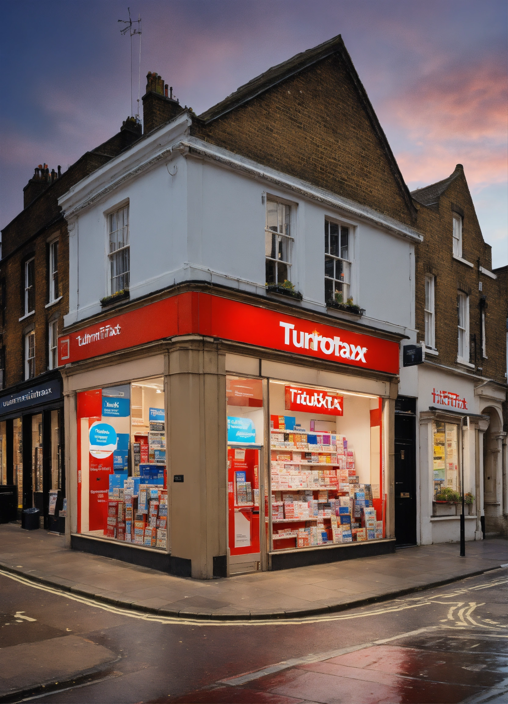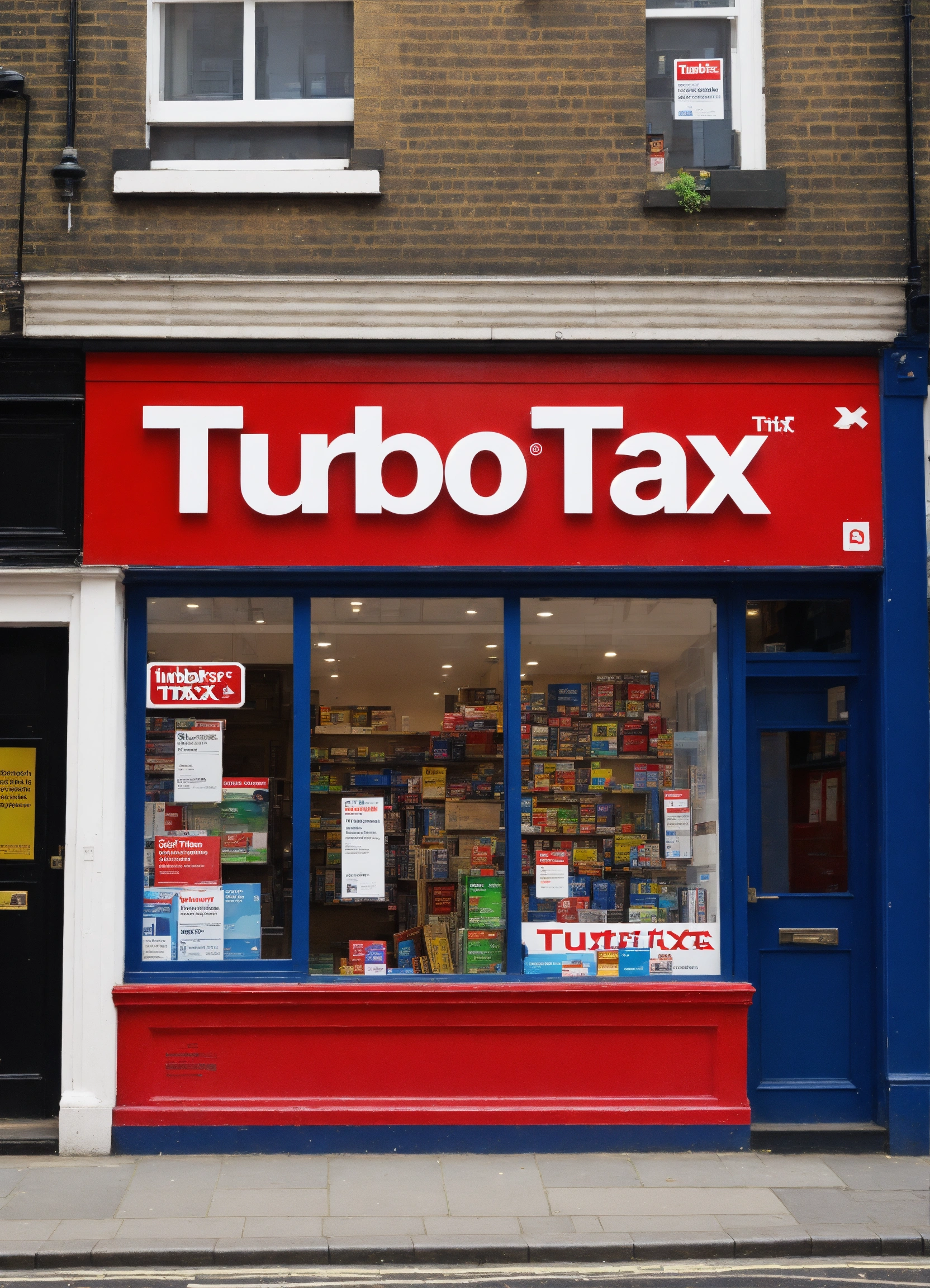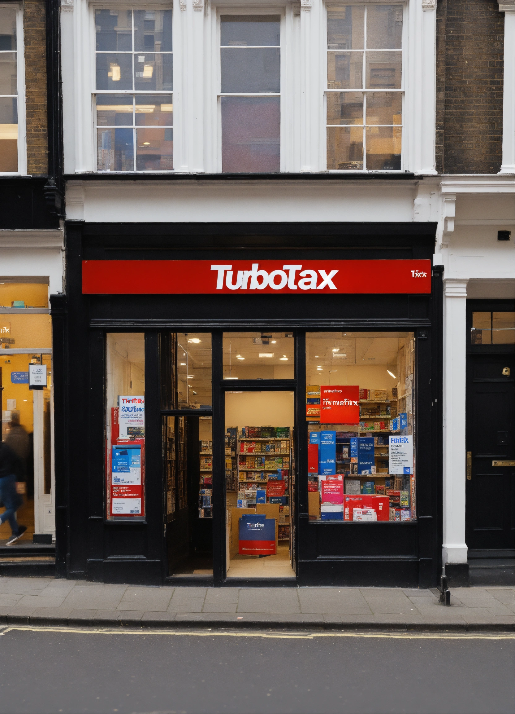 Software store, store name is bighometax, address 27 old gloucester st, london wc1n 3ax, united kingdom. inside, turbotax products are sold on shelves.