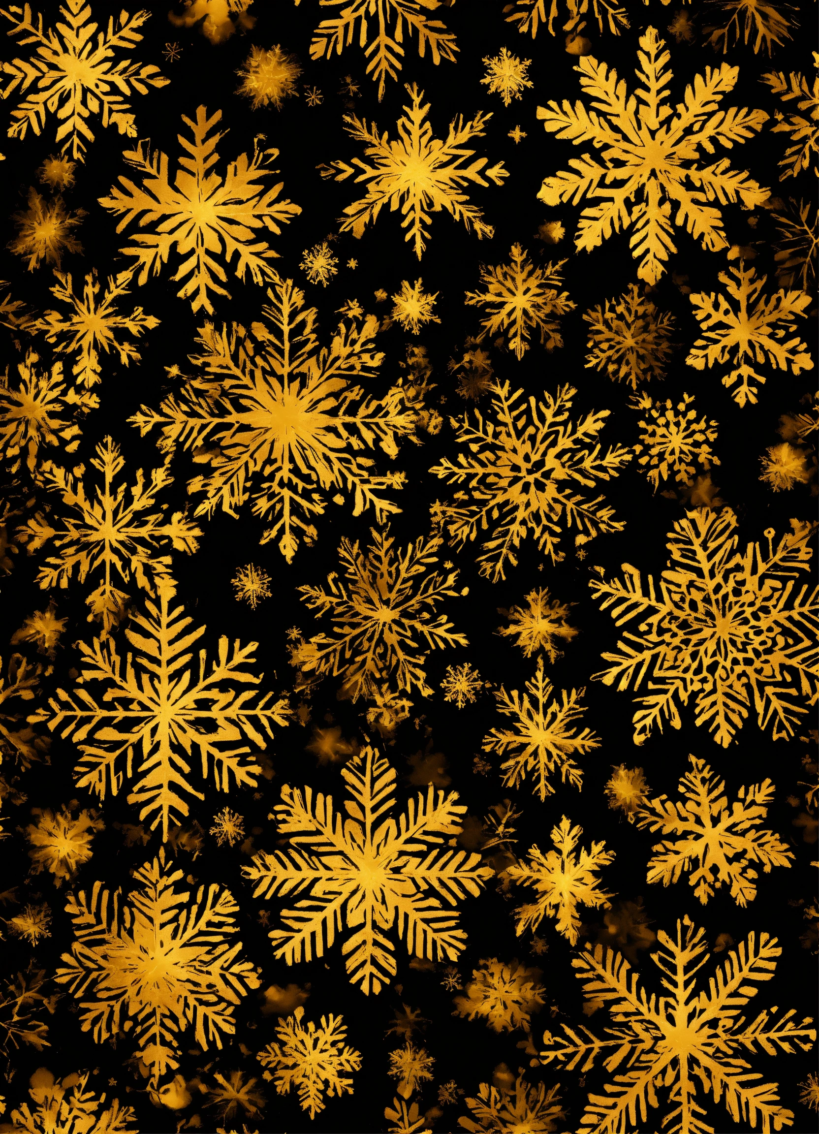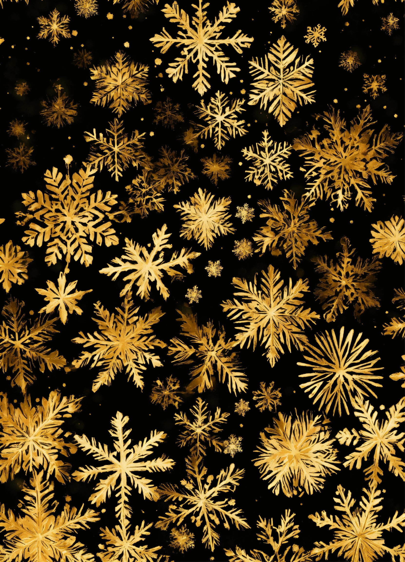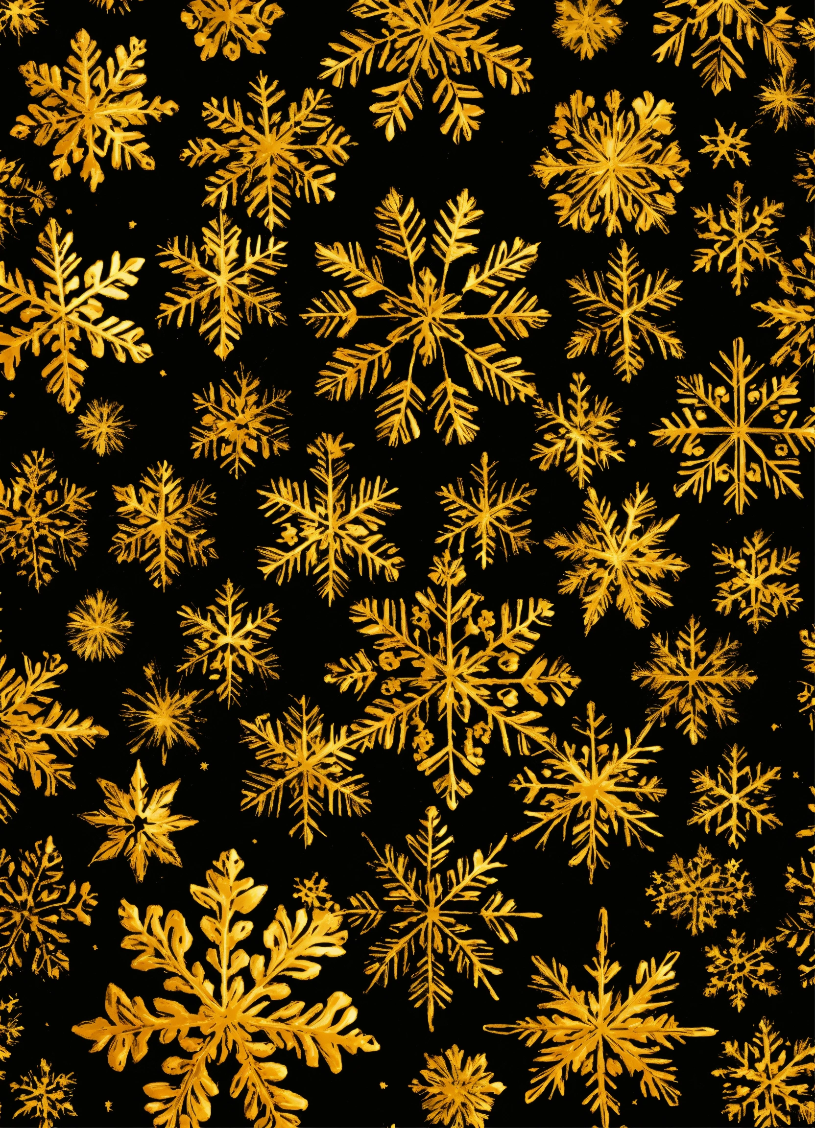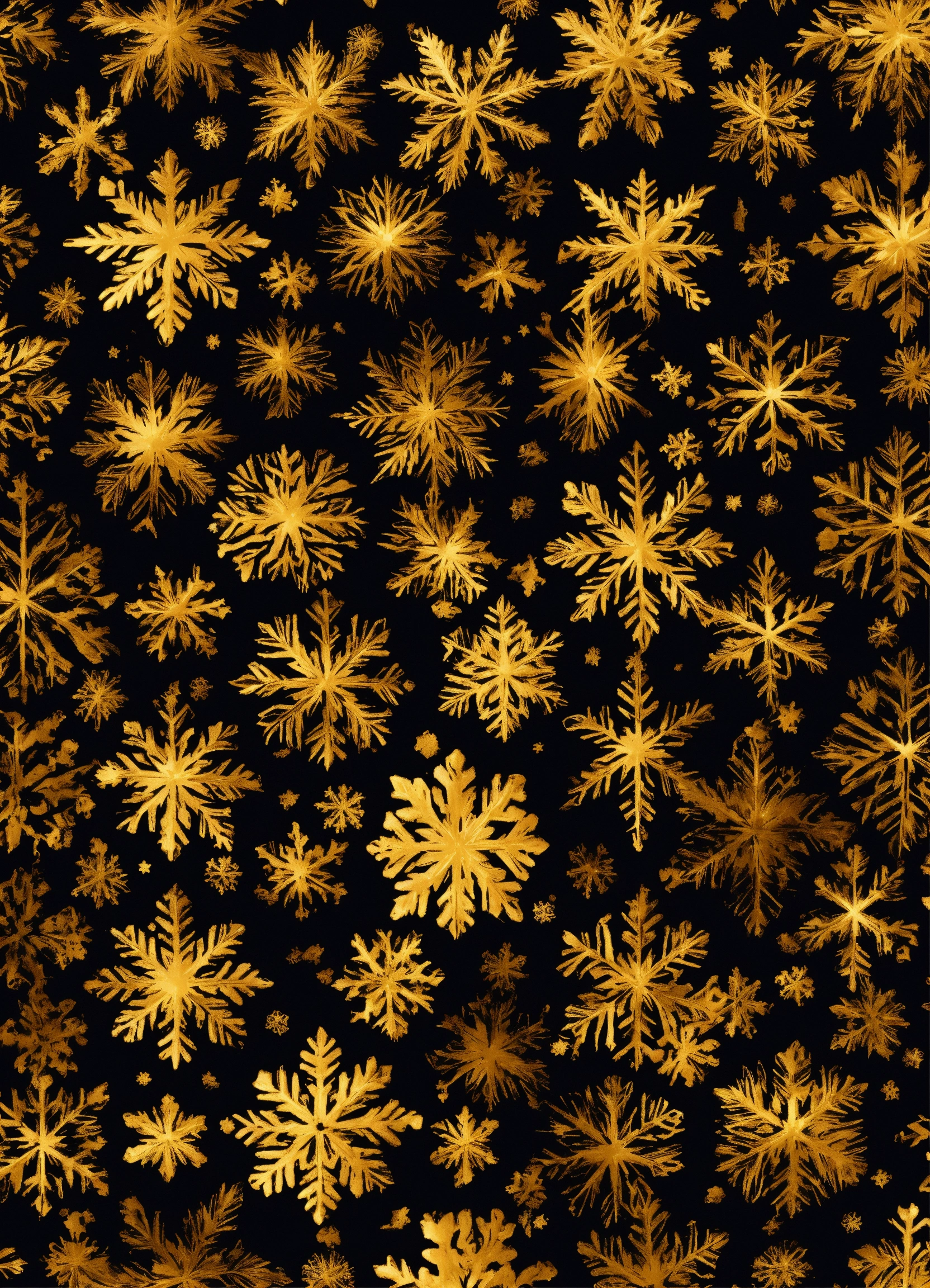 Small golden snowflakes on black background in a seamless pattern