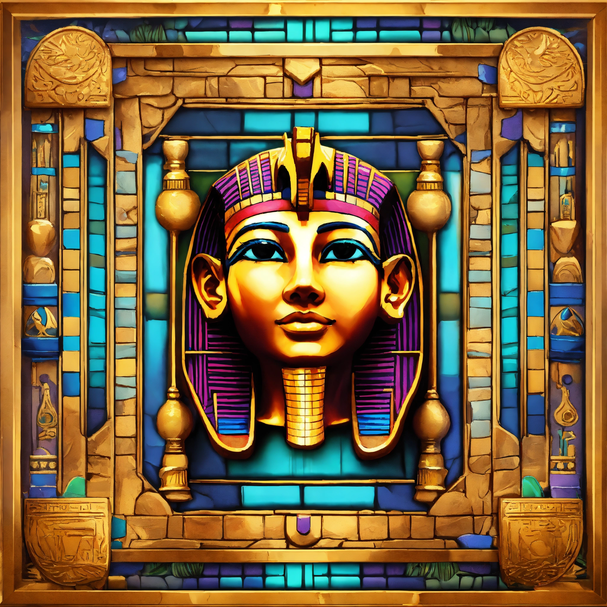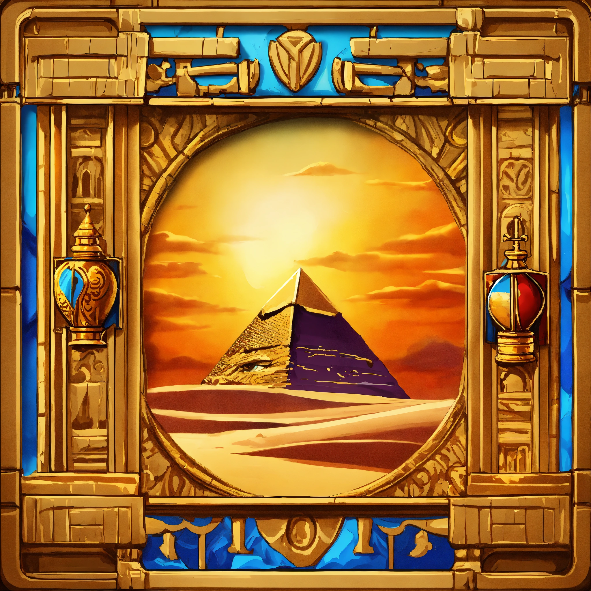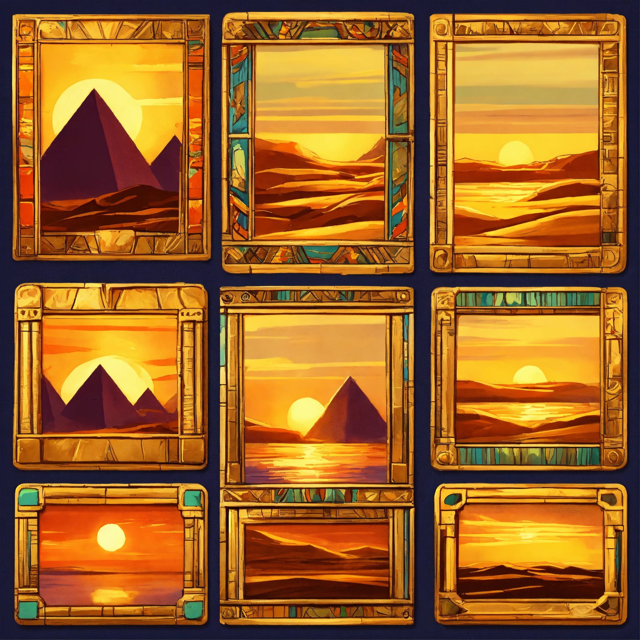 Egyptian theme, ornamental square frame slot game cards, realistic cartoon oil paint, 2d illustration style, sharp focus, bright color, digital paint design, trending on artstation, high details, simple lines, art by josé luis ágreda and camilla d'errico.