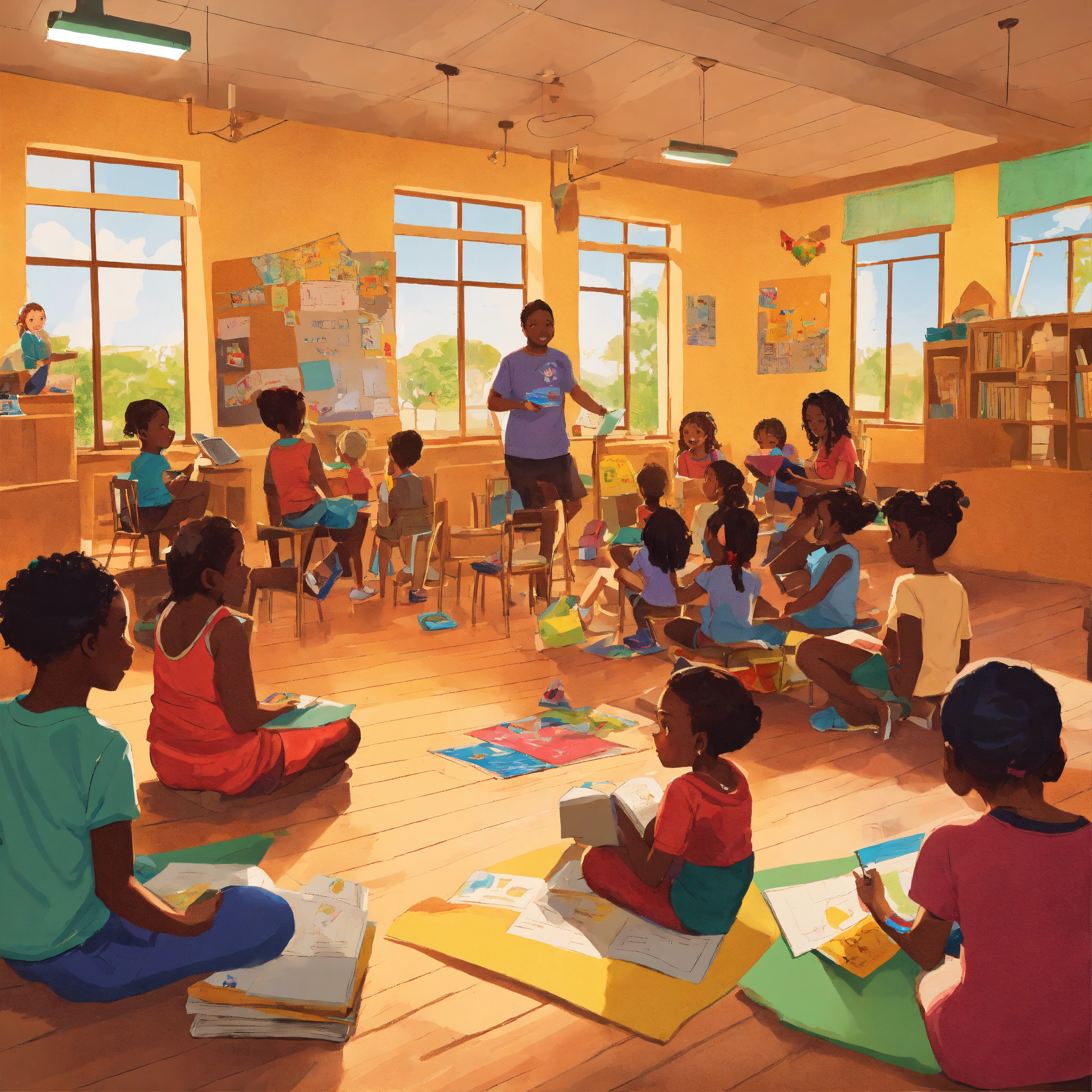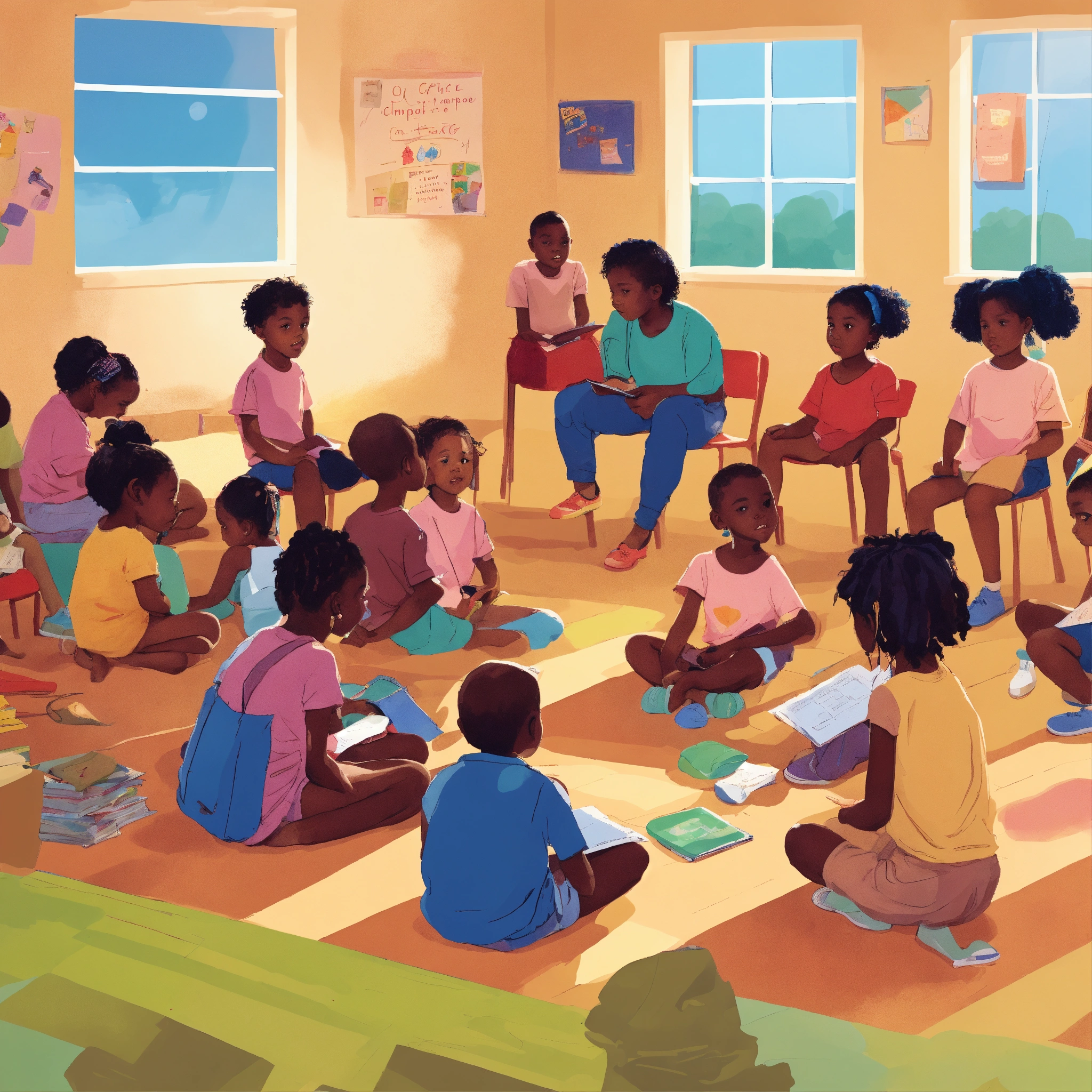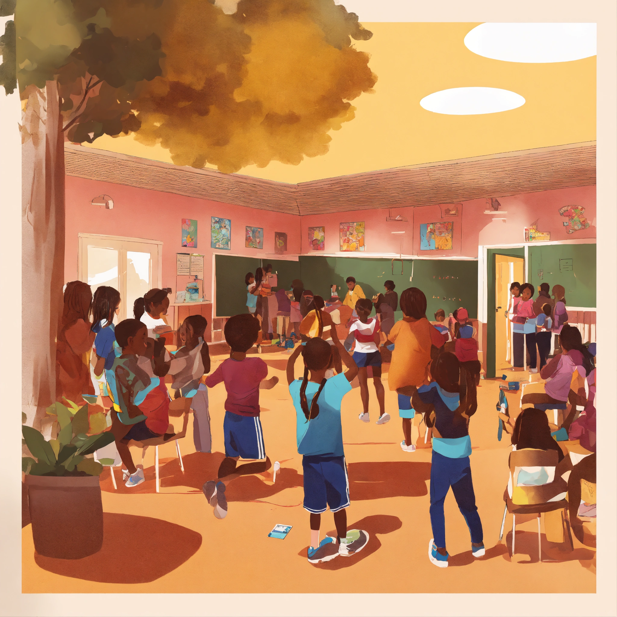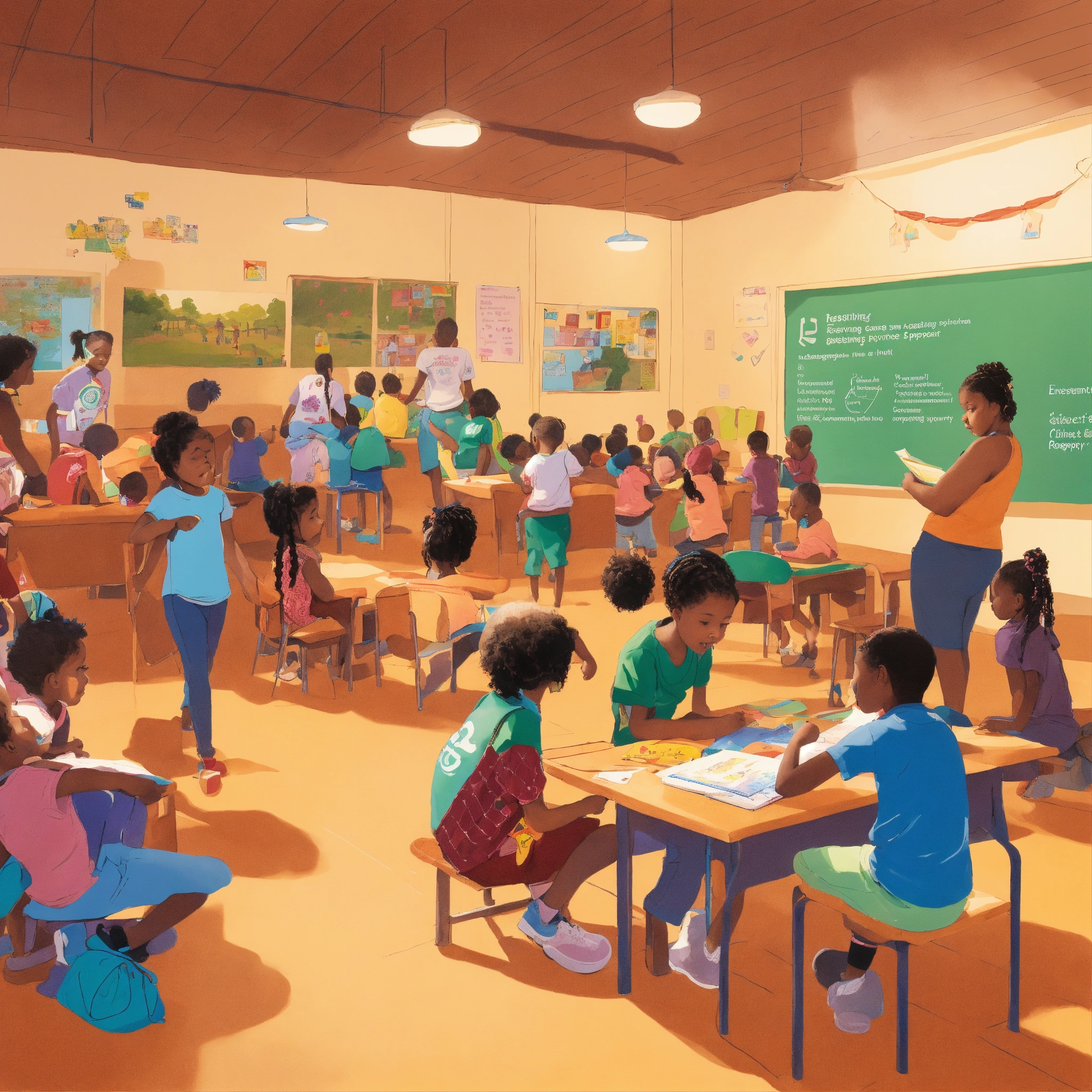 Real documentary, illustration showing a community center as a hub of support and empowerment, with children engaged in activities like studying, playing, and receiving support services, representing the importance of community engagement in tackling child poverty