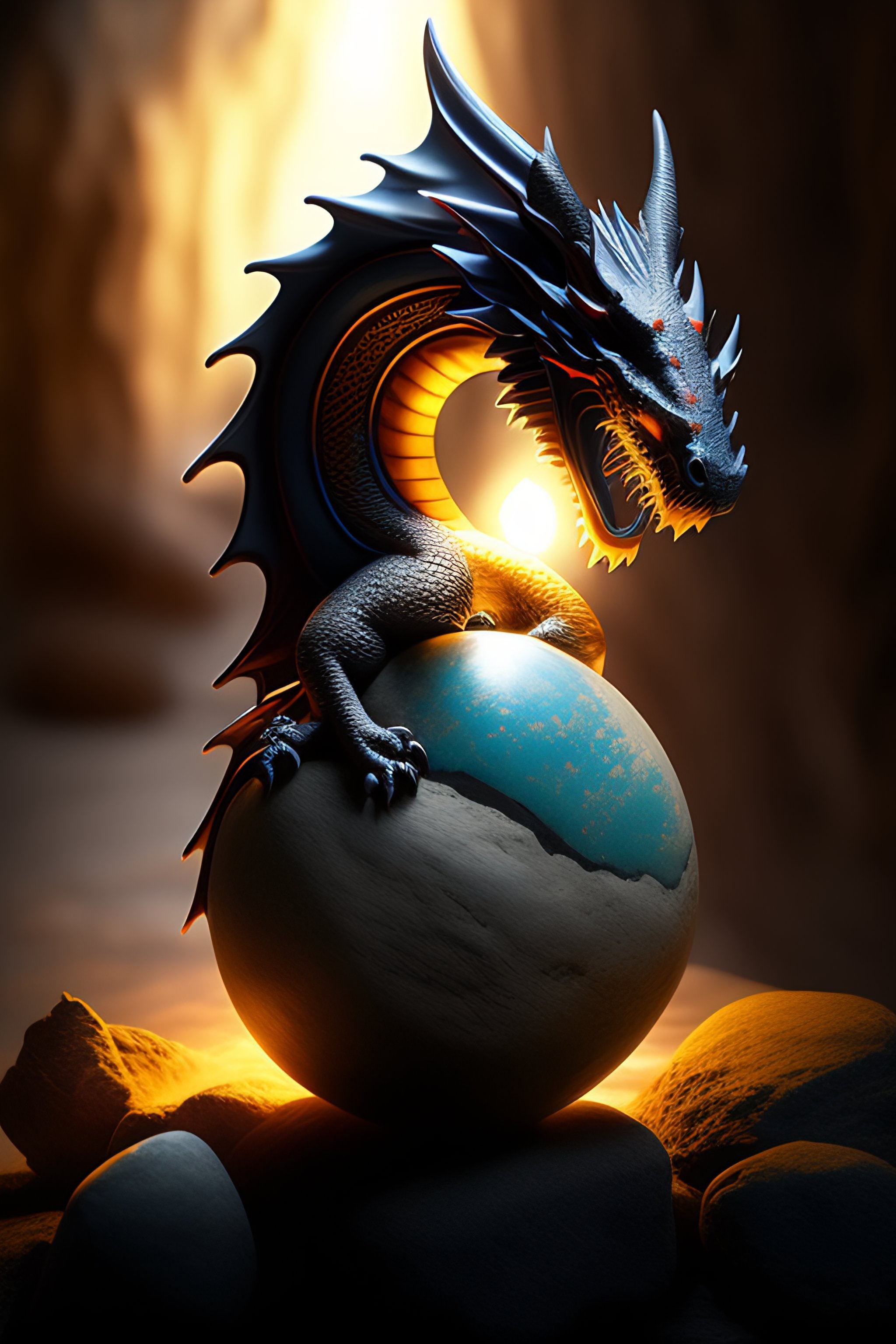 A dragon claw made of stone holding a orb of bright light