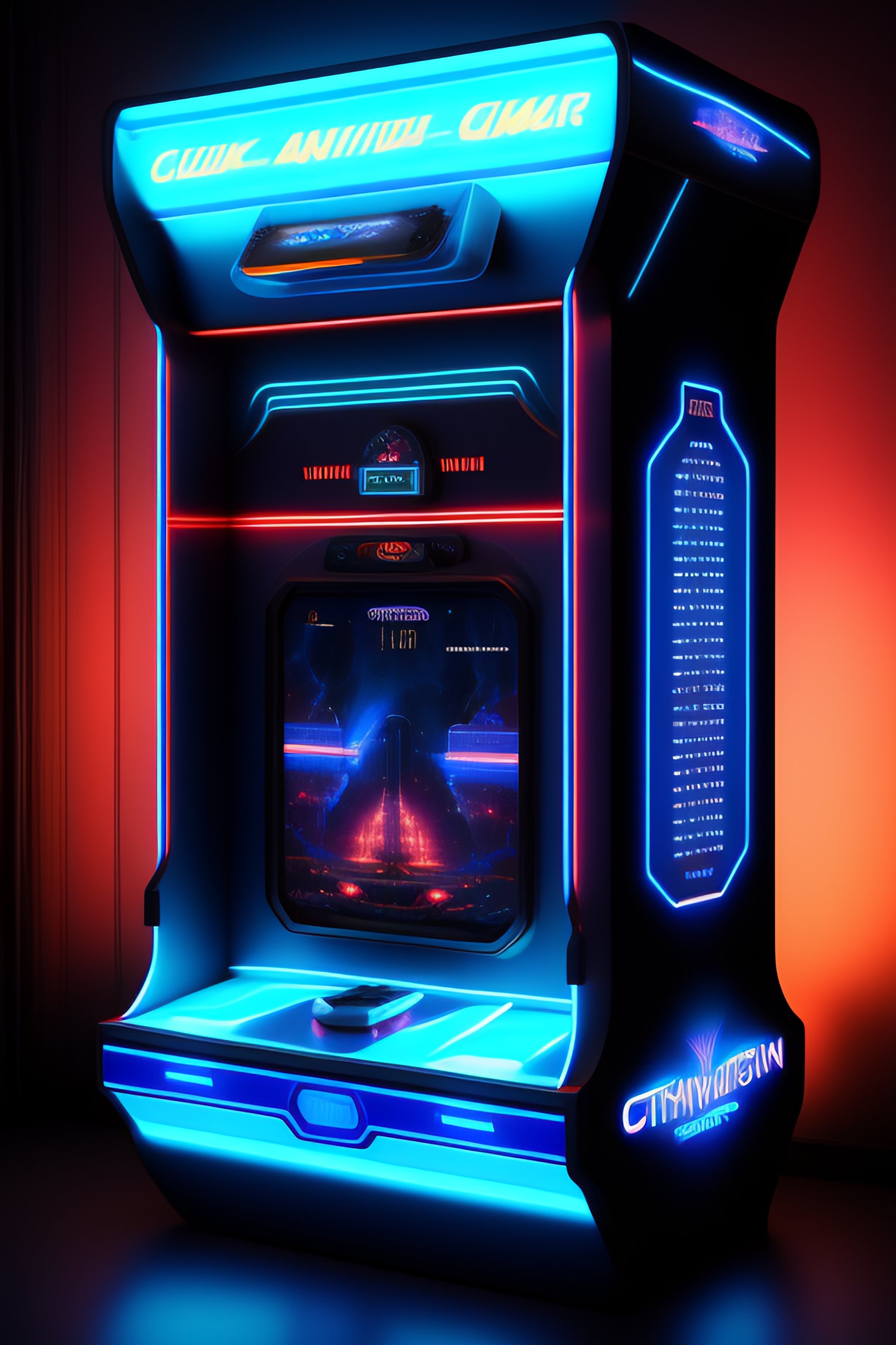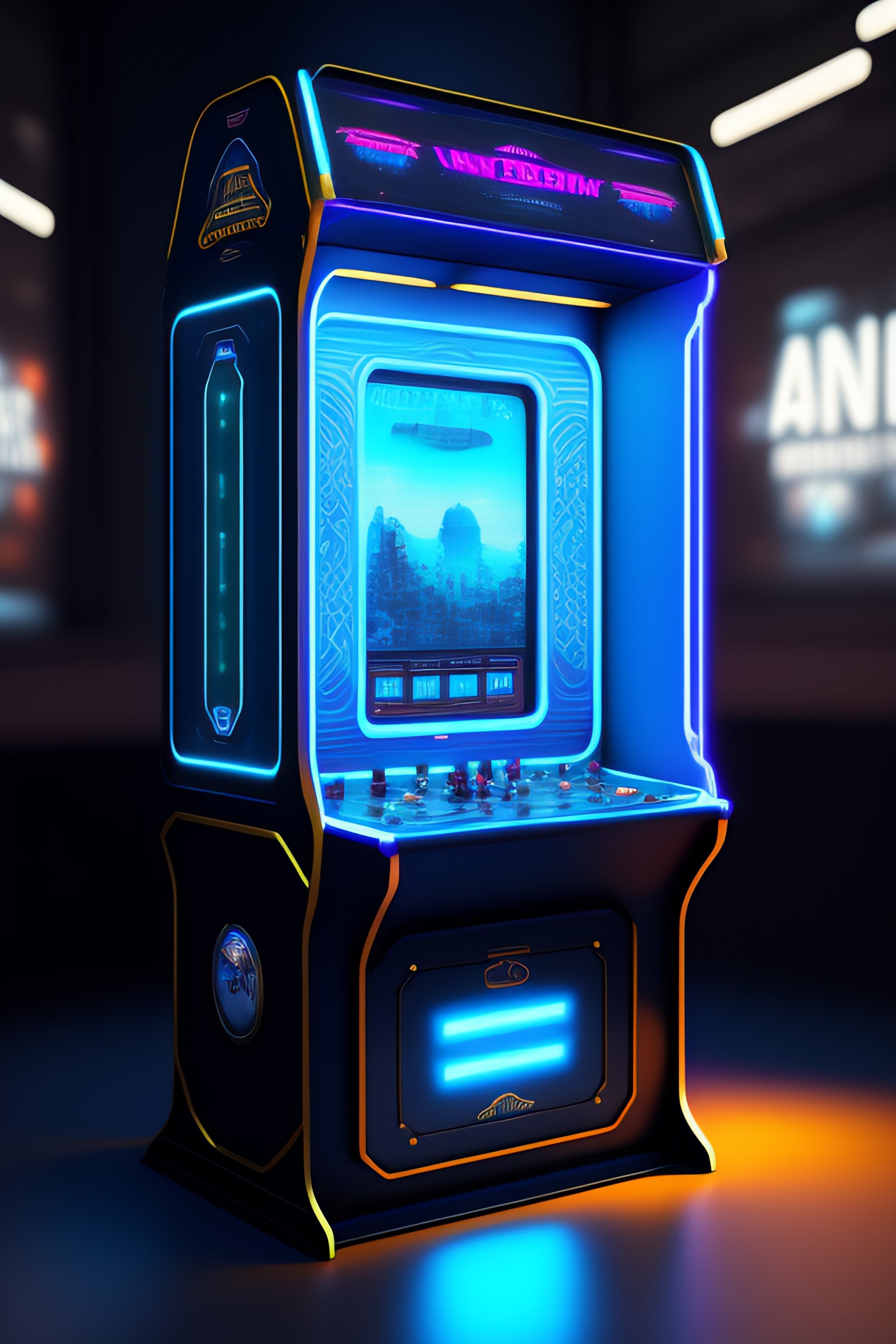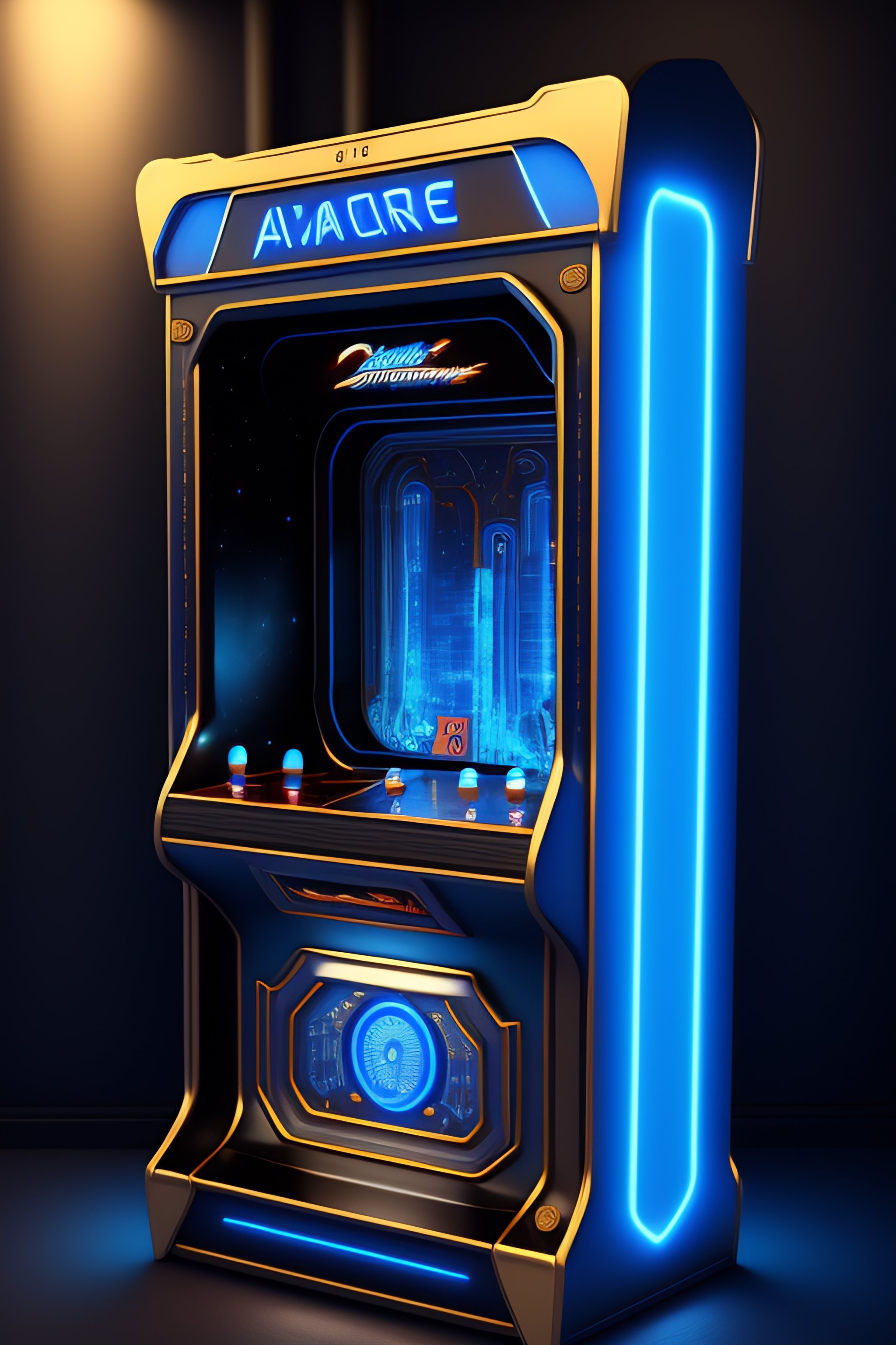 Black futuristic arcade cabinet, with circuit boards on the front face, with blue electricity, a view from inside an empty arcade machine haunted by silver ghosts, trending on artstation, atmospheric, crisp, concept art, by daniel simon, tron