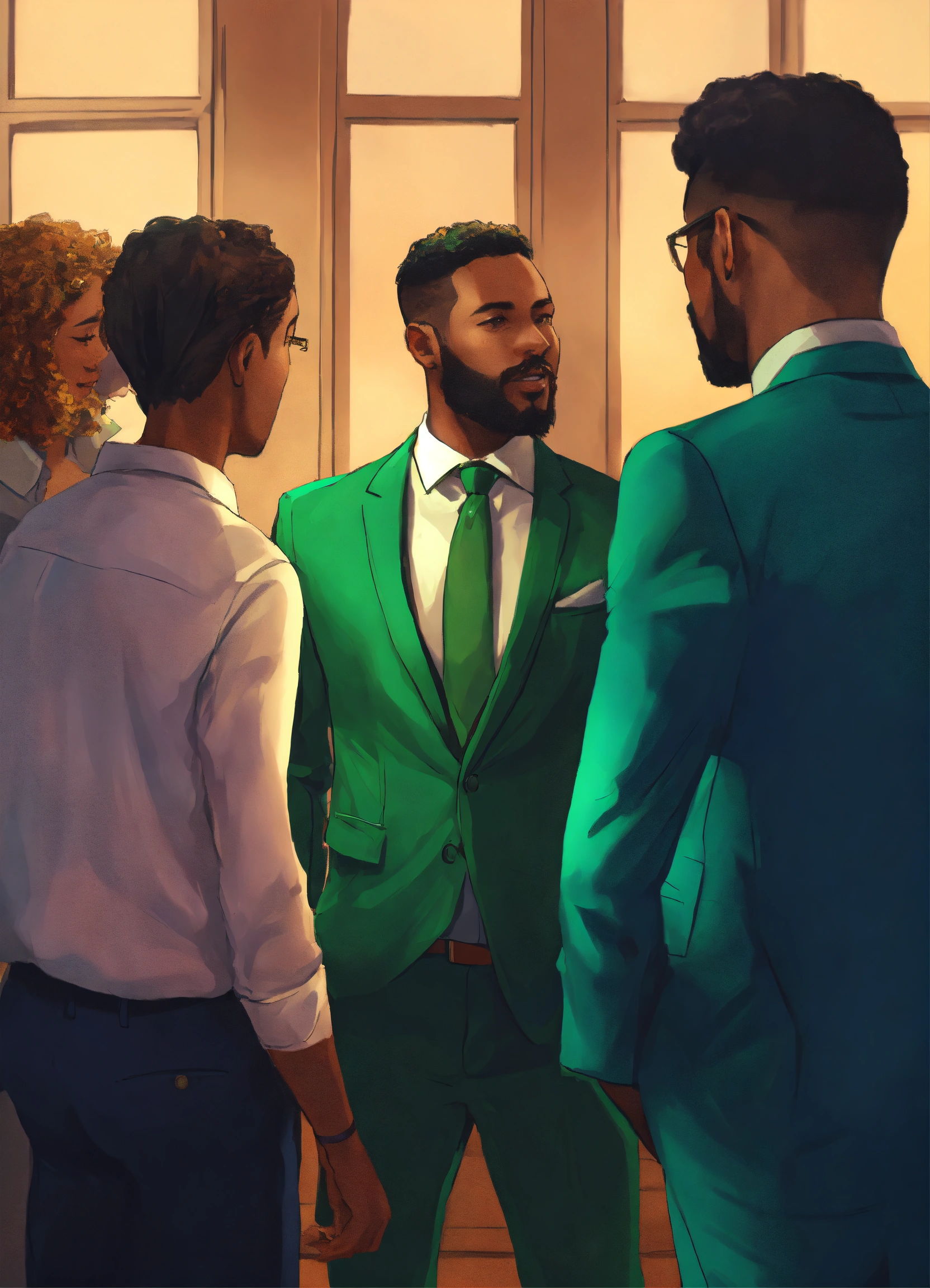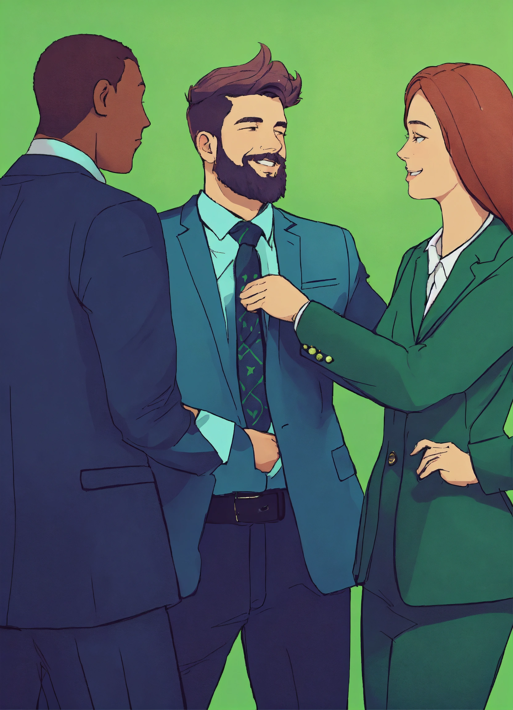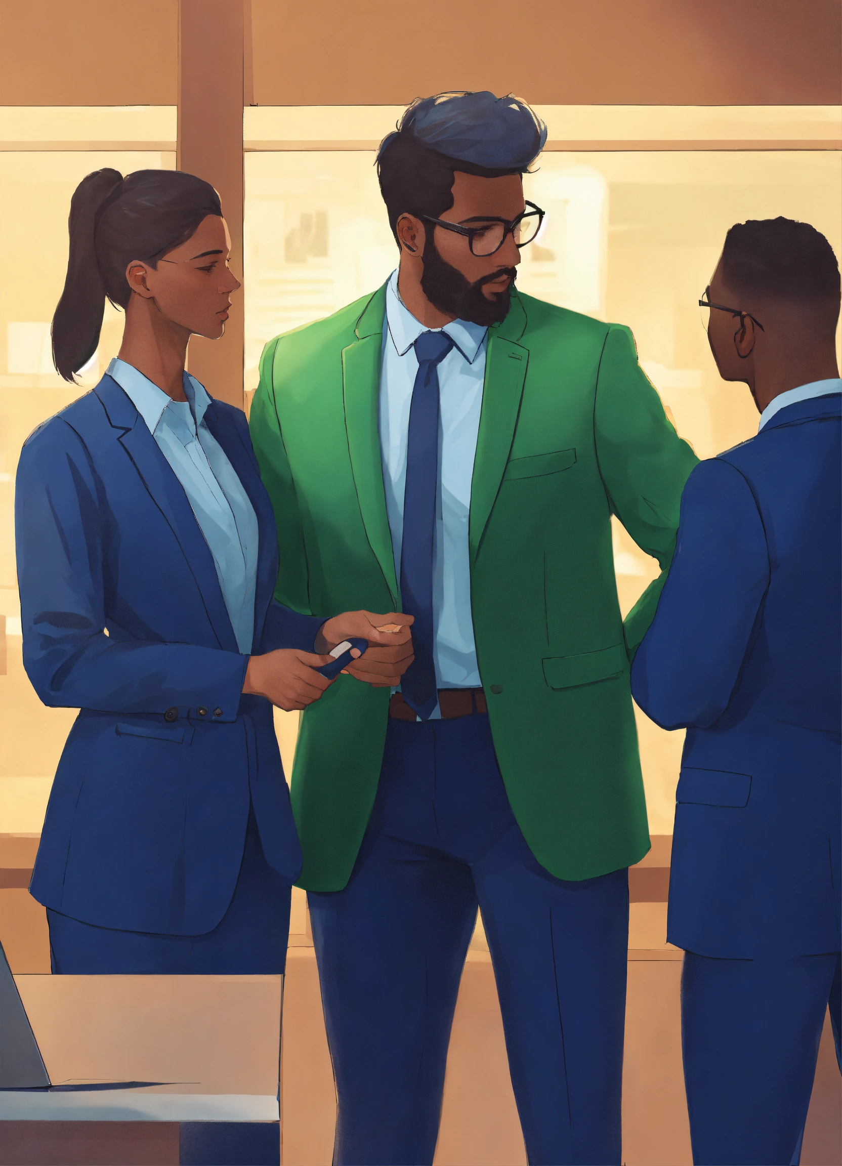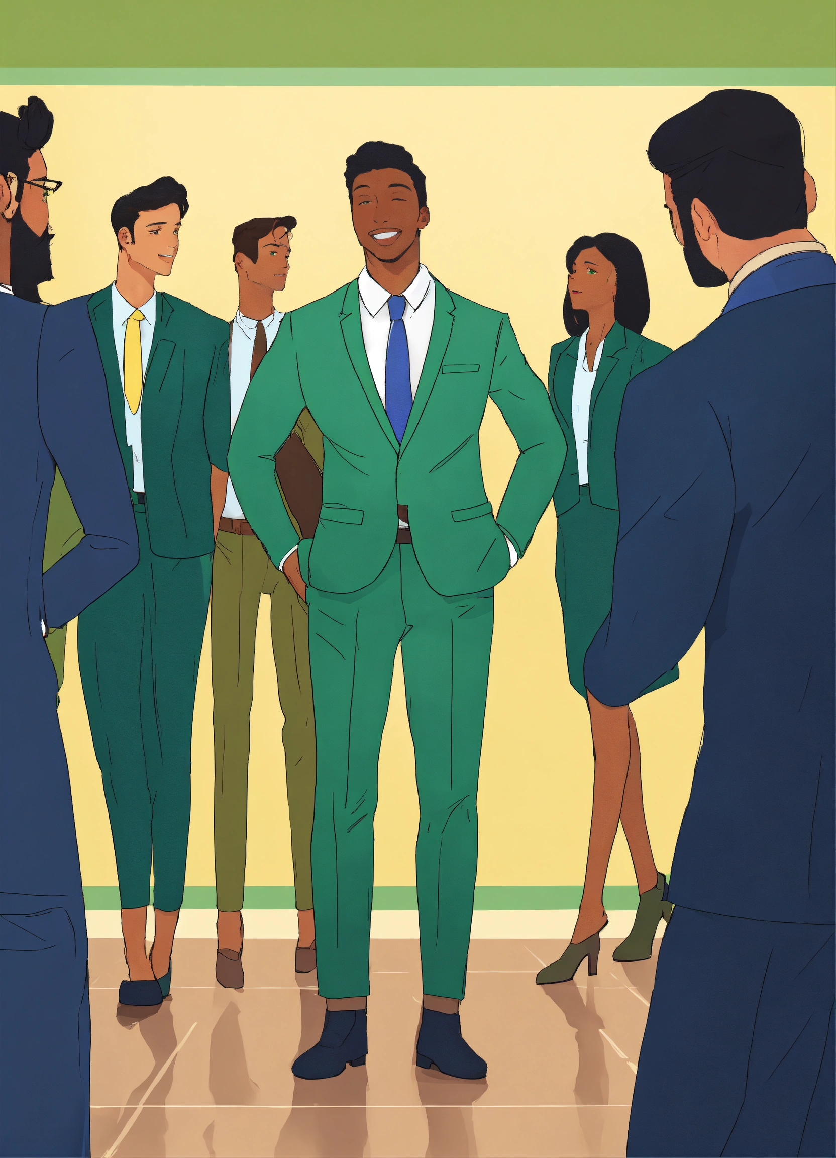 A person encouraging colleagues, the colleagues are patting him on the back, gender expression diversity, professional, business attire, thought-provoking, blues and greens, 4k
