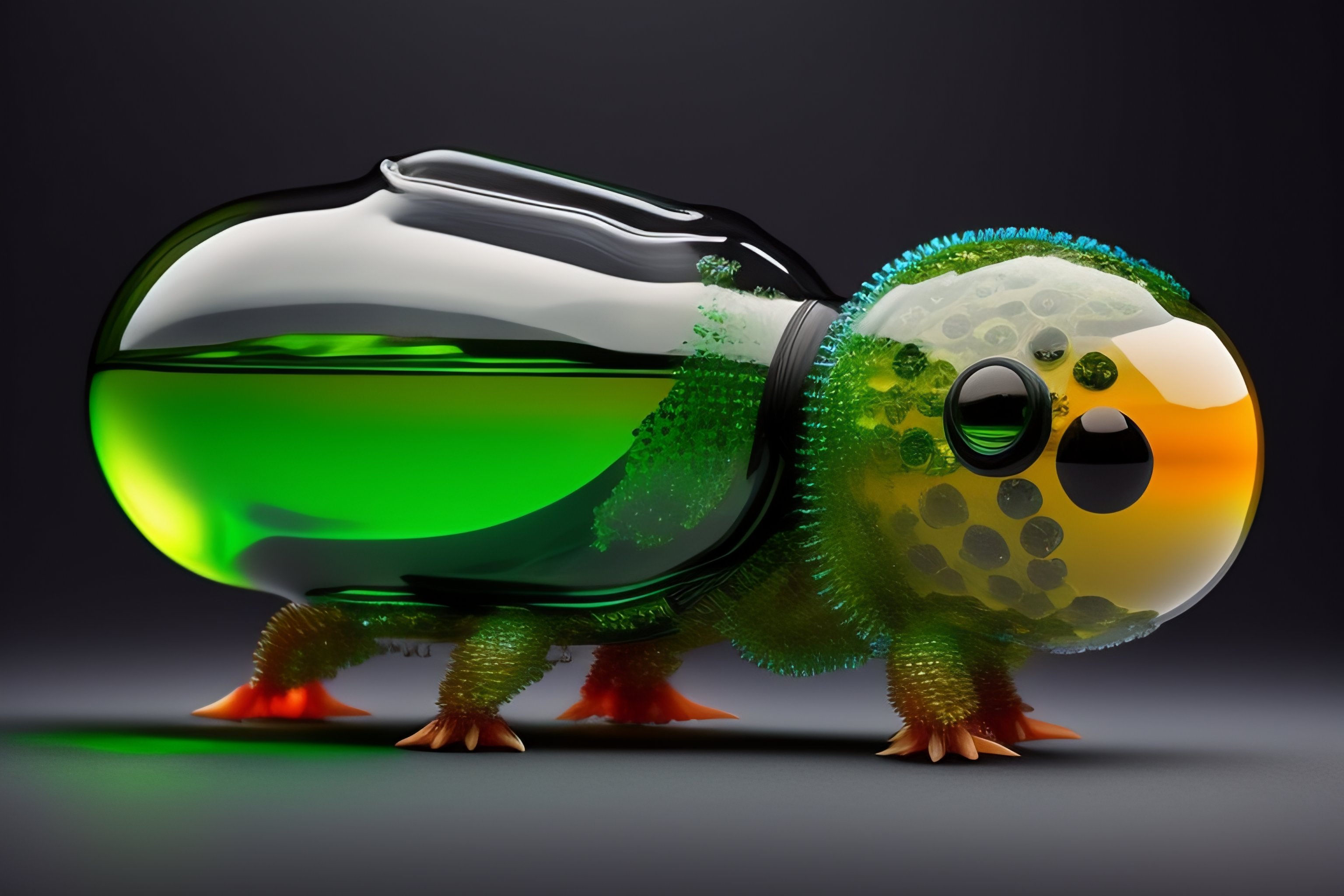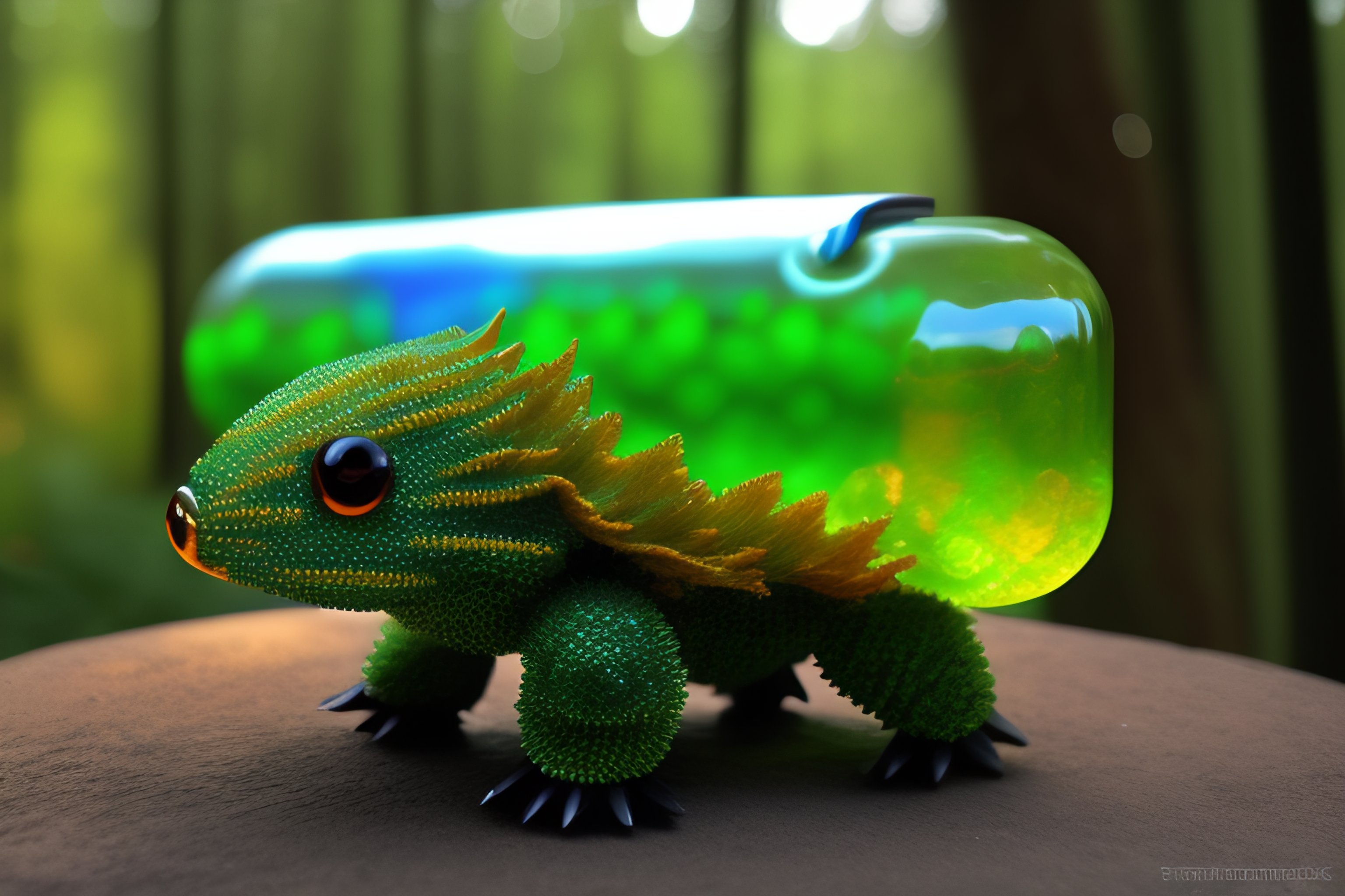 Metroid creature made from recycled bottles