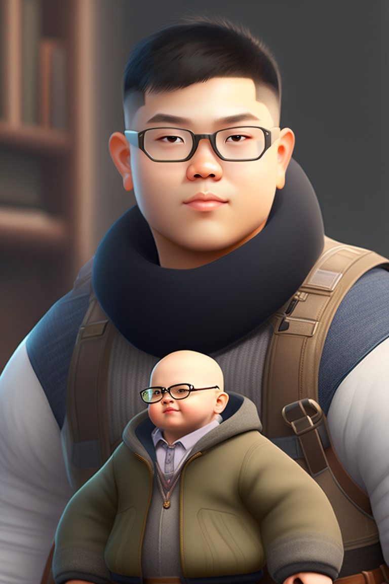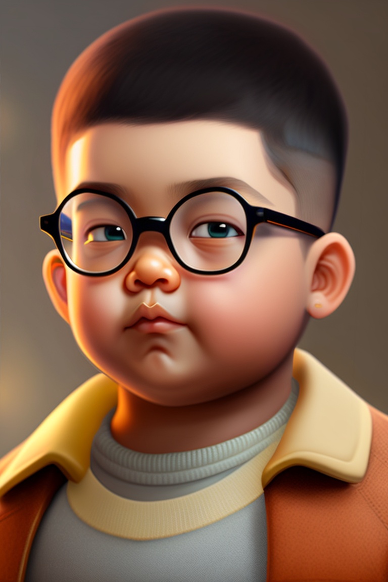 Tann and little bit fat boy with glasses, very short hair close bald and avarage tall hith fat with round dark face