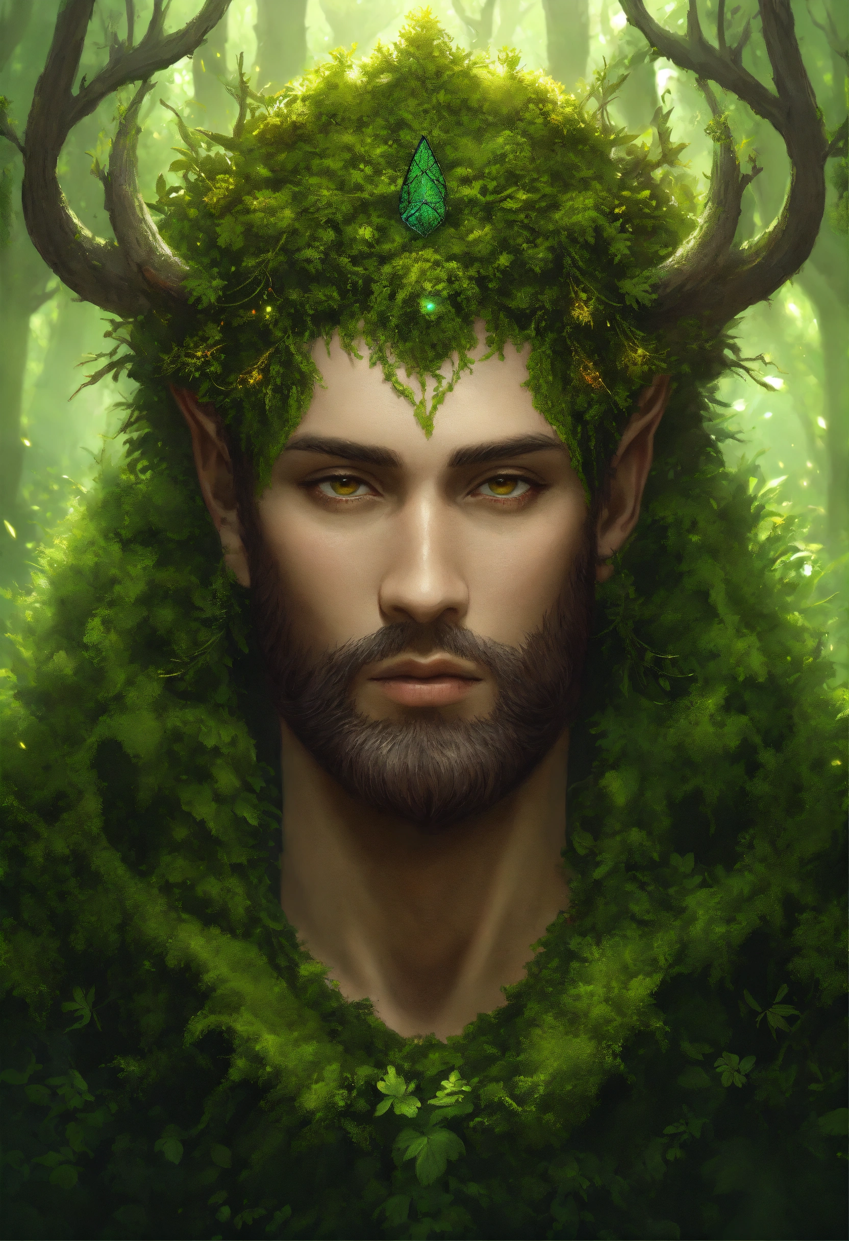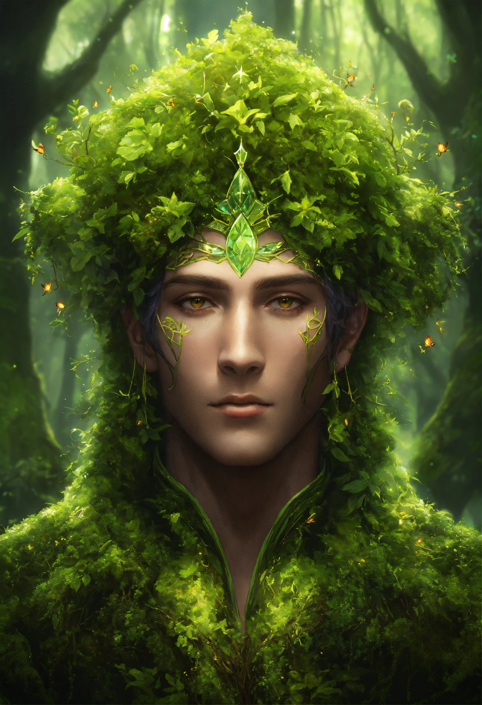 Symmetry portrait of male moss king of ent of fangorn forest, glam, fae, fireflies, forest background, highly detailed, digital painting, artstation, concept art, smooth, sharp focus, illustration
