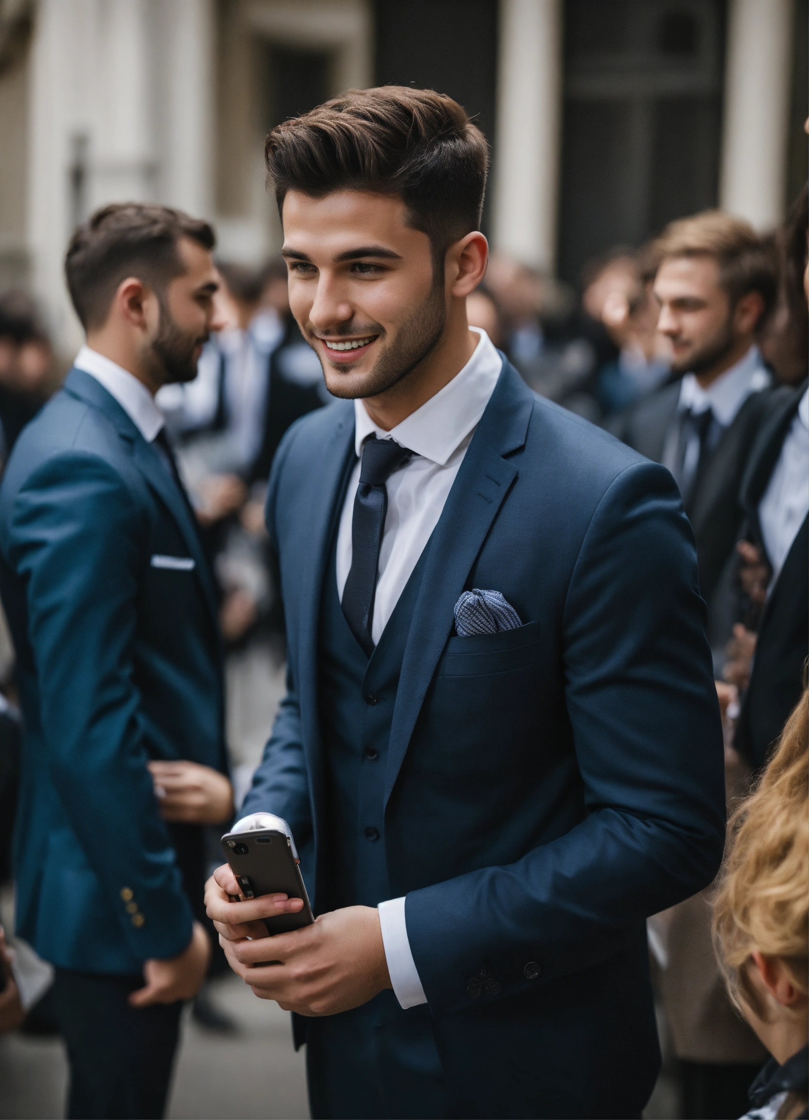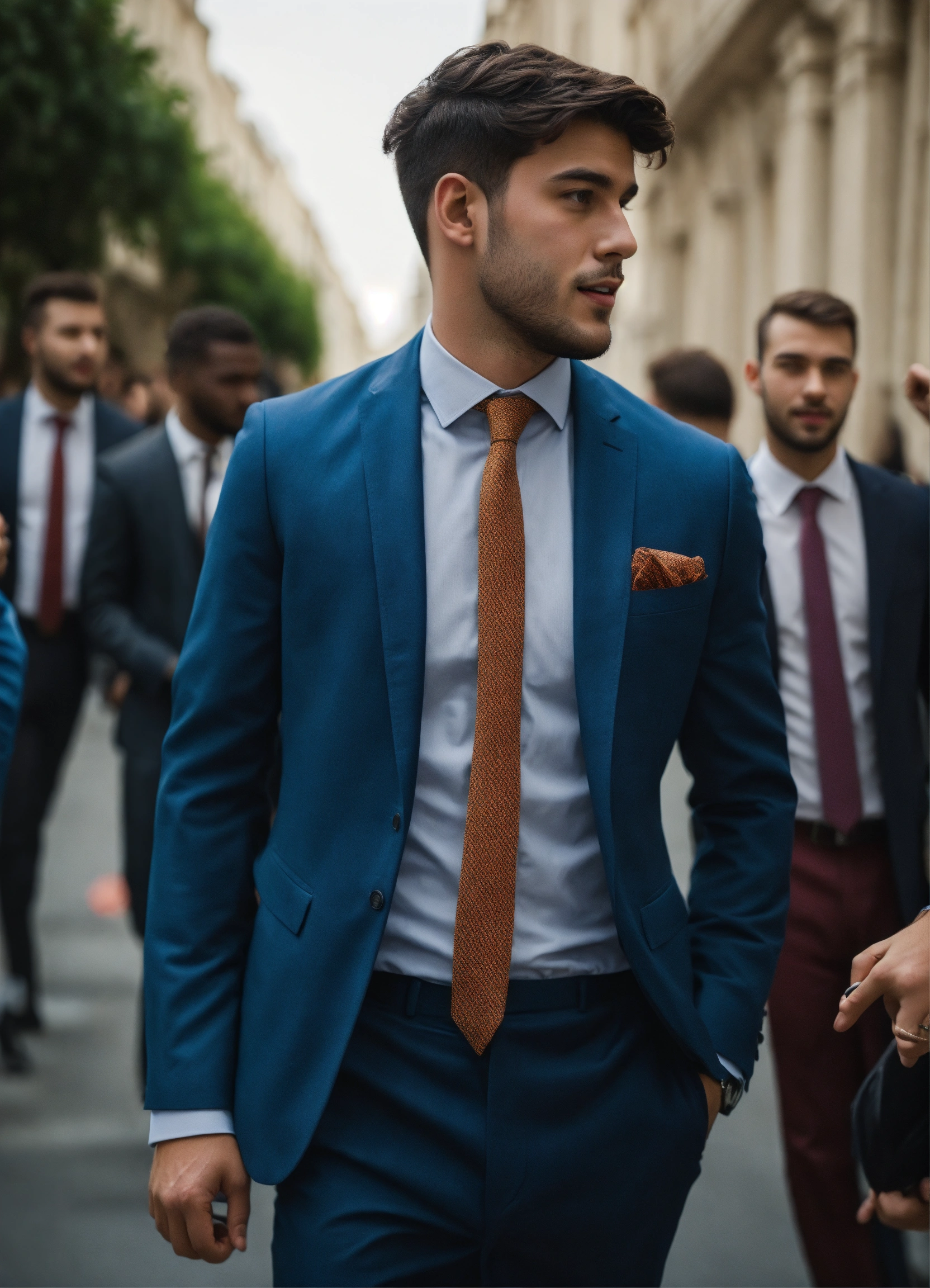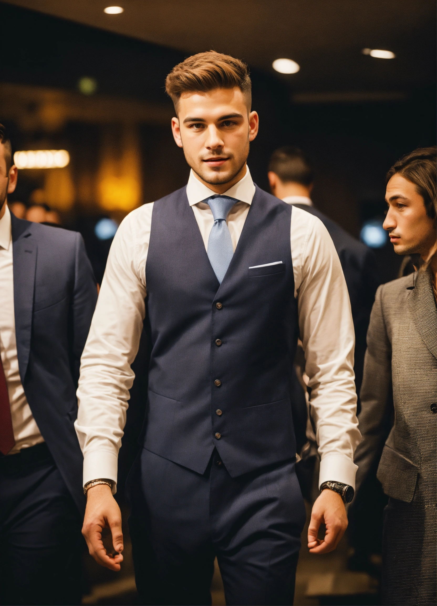 Un mignon jeune homme d'affaires habillé en veste cravaté entraîn de parler à un groupe de personnes qui l'ecoutes avec attention
