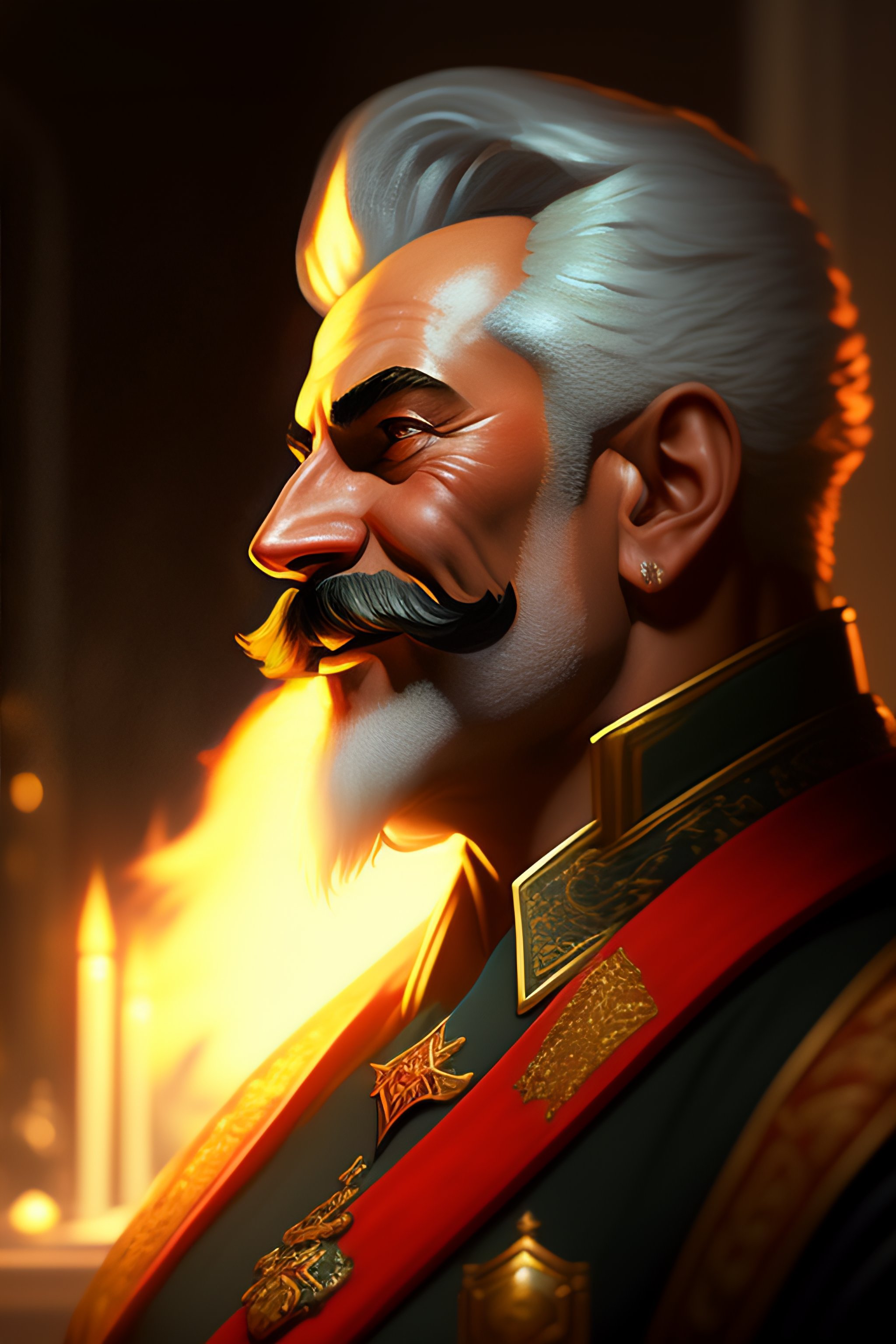 Stalin staring at the camera smirking and laughing, magic the gathering artwork, d & d, fantasy, cinematic lighting, centered, symmetrical, highly detailed, digital painting, artstation, concept art, smooth, sharp focus, illustration, volumetric lighting, epic composition, 8 k, art by akihiko yoshida and greg rutkowski and craig mullins, heroic pose, oil painting, cgsociety, magic lab background
