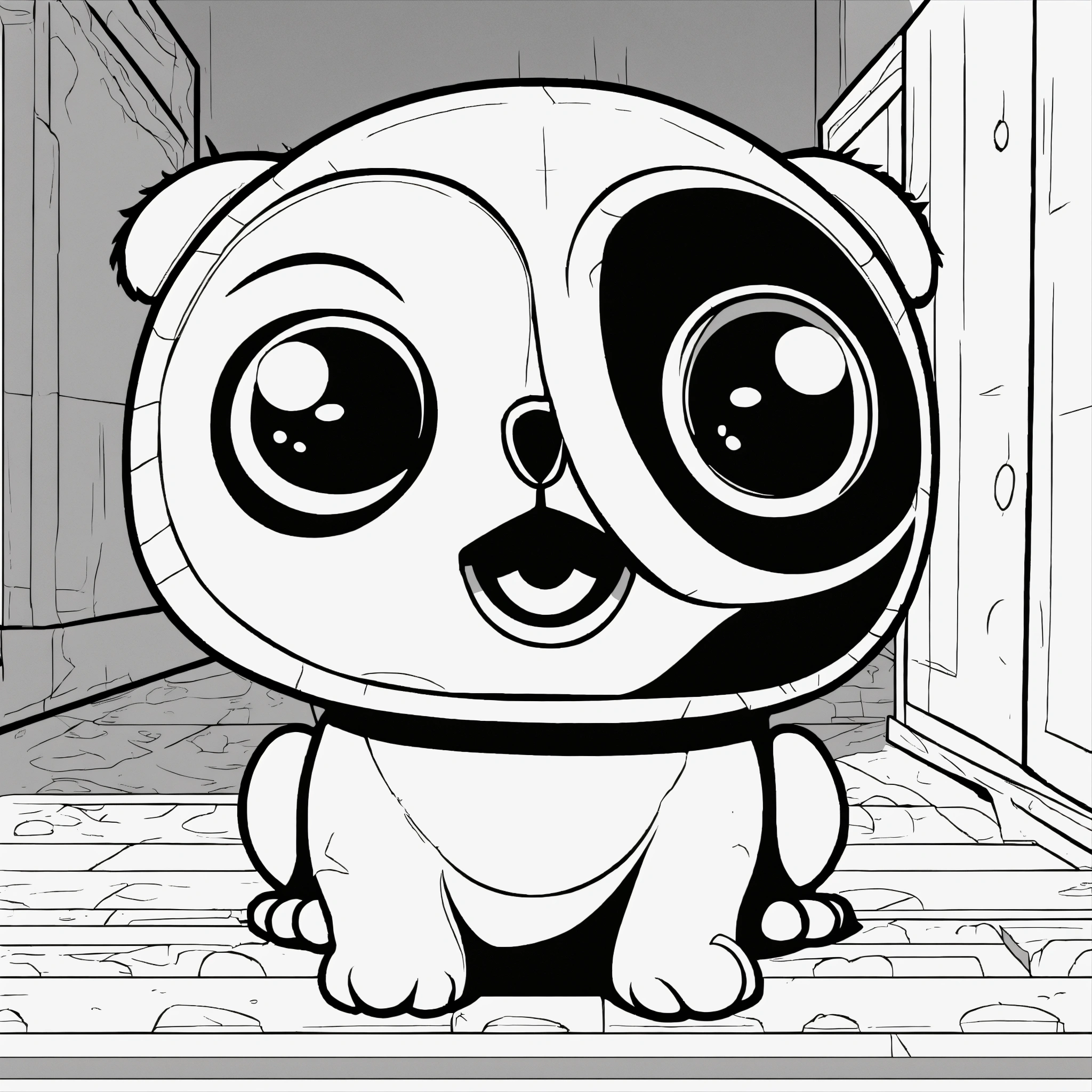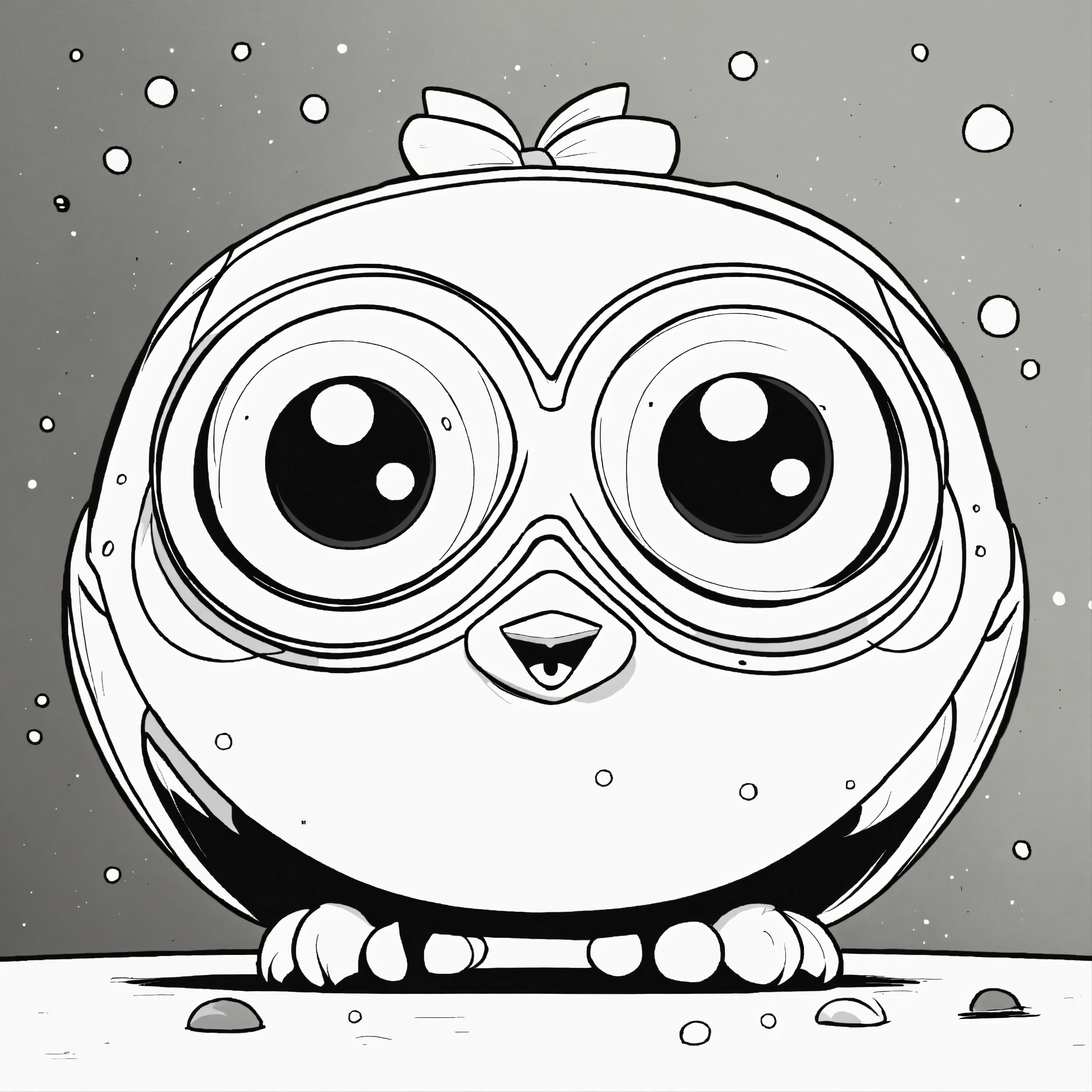 Cute own, big cute eyes, pixar style, simple outline and shapes, coloring page black and white comic book flat vector, white background