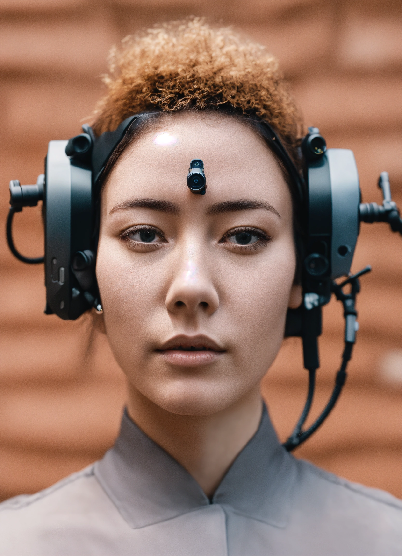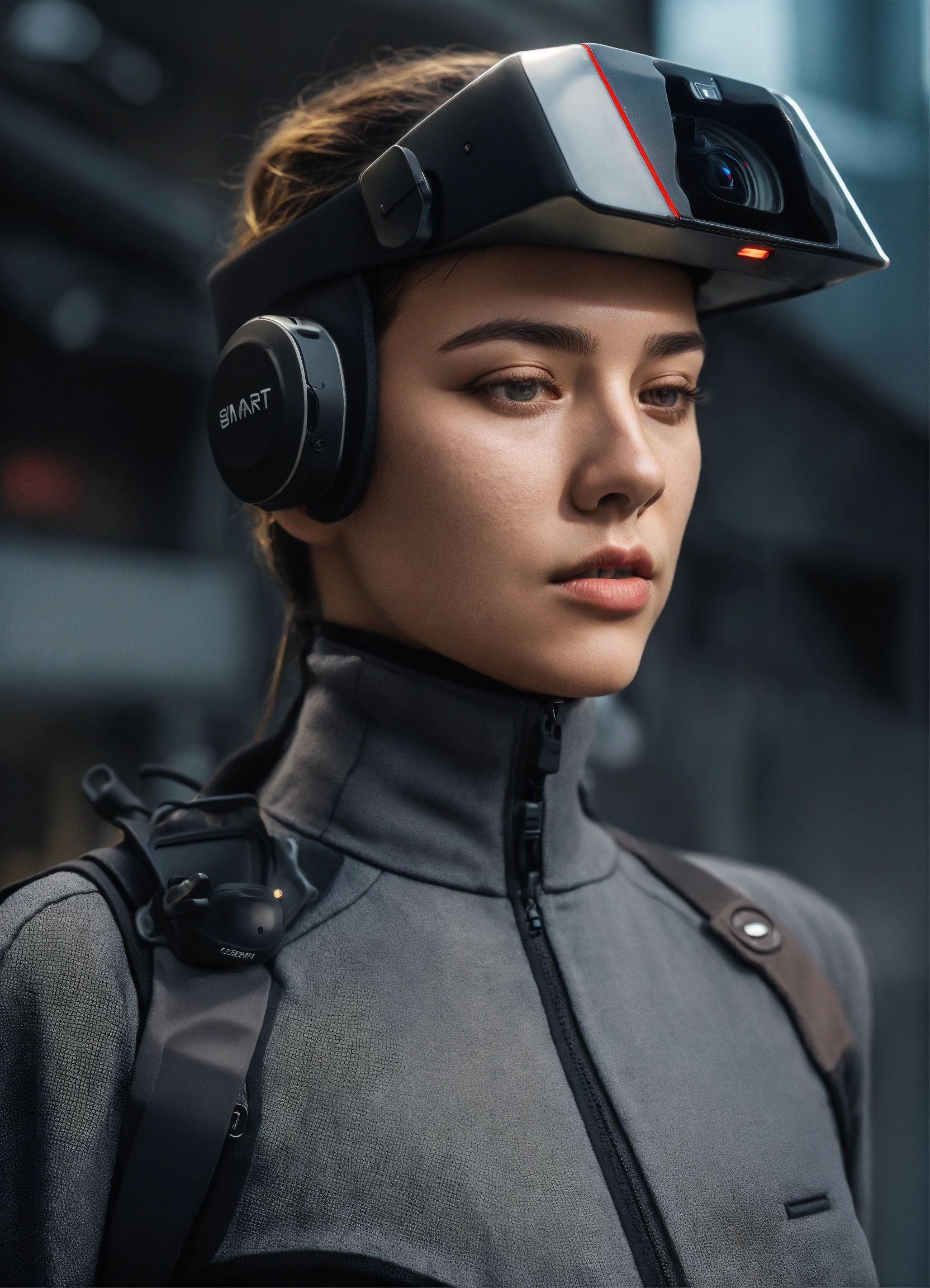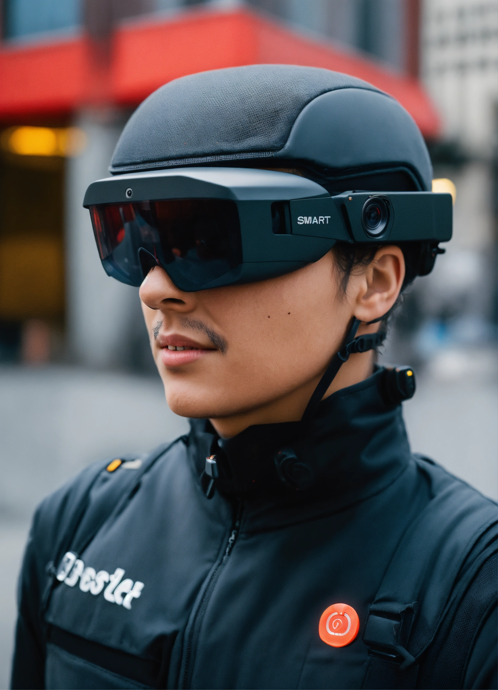 Smart elegant head and body camera on blind individual with side and forward facing small cameras