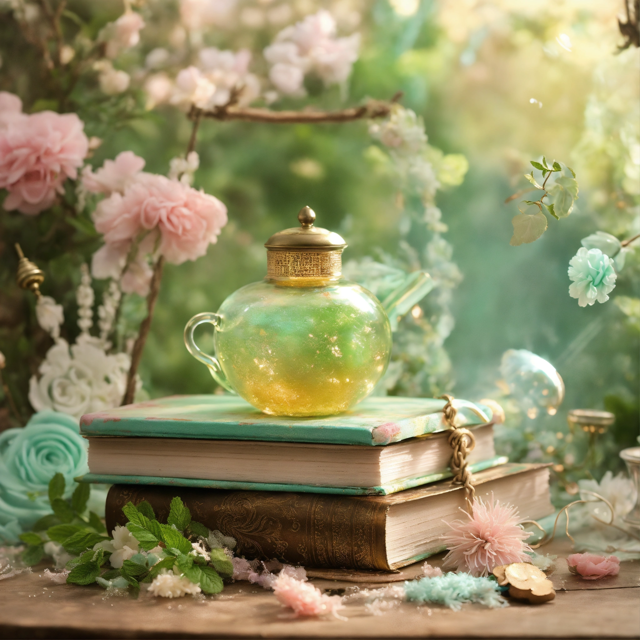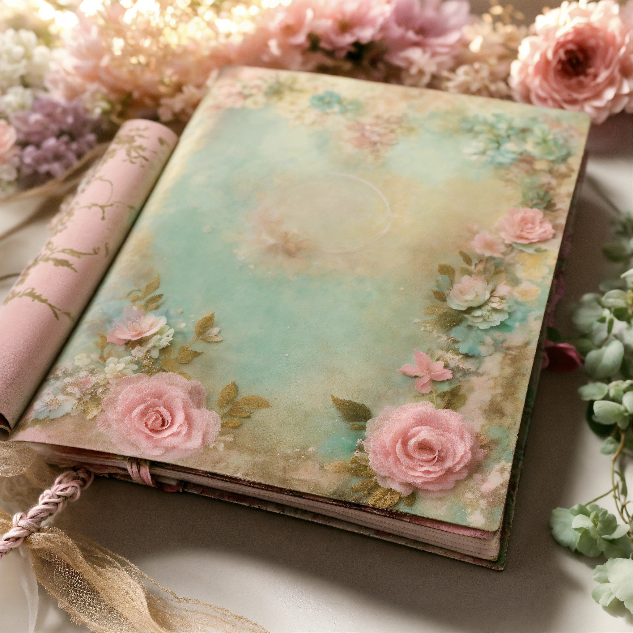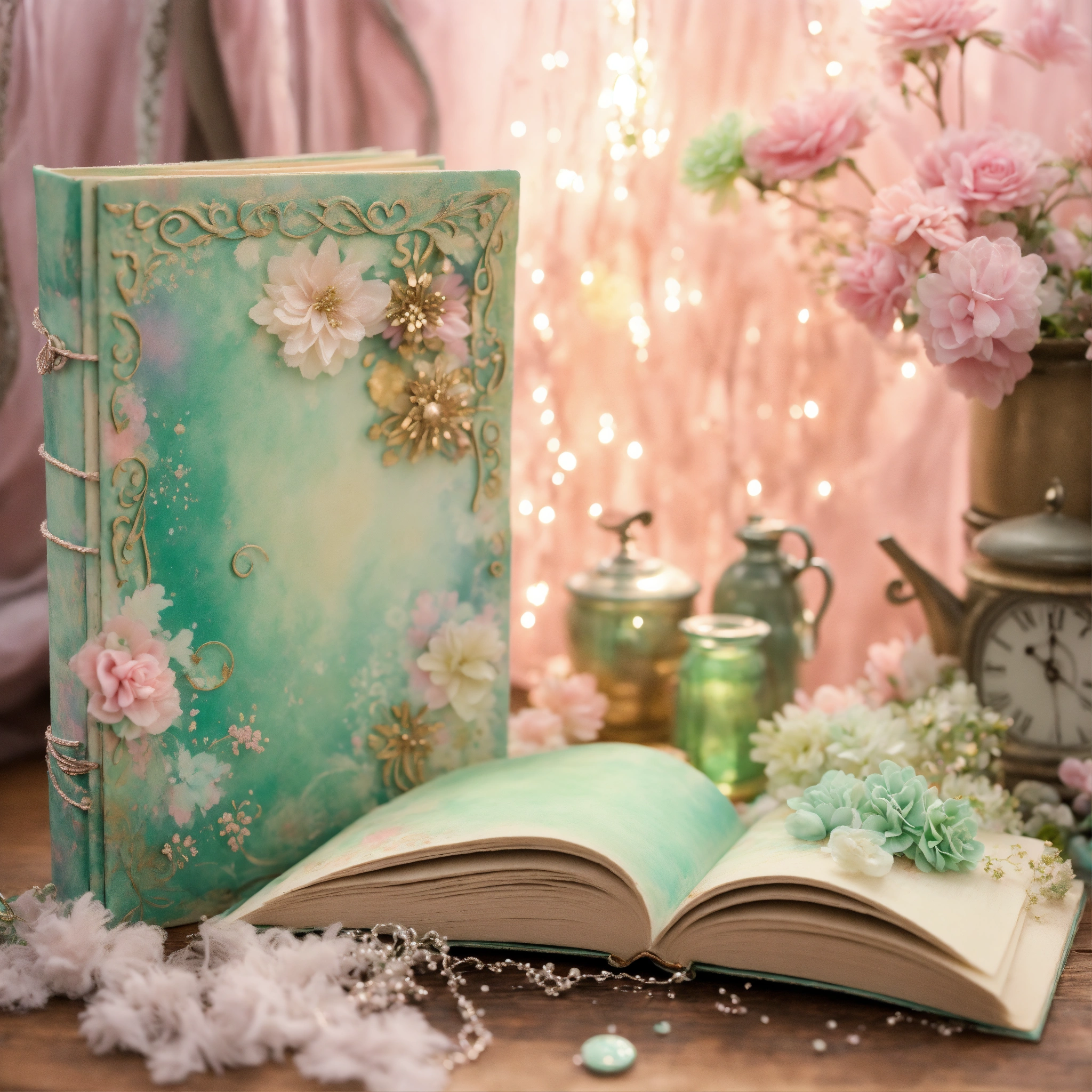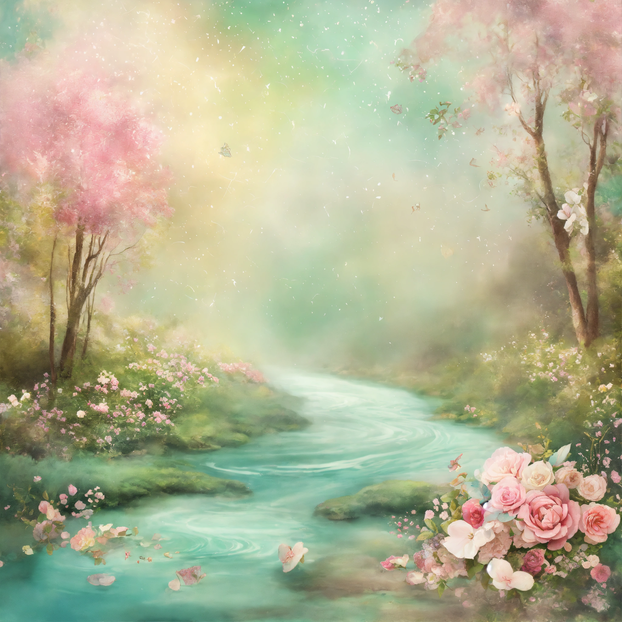 Shabby chic dreamy mist pastel junk journals mint twist swirling magical fairytale abstract art style