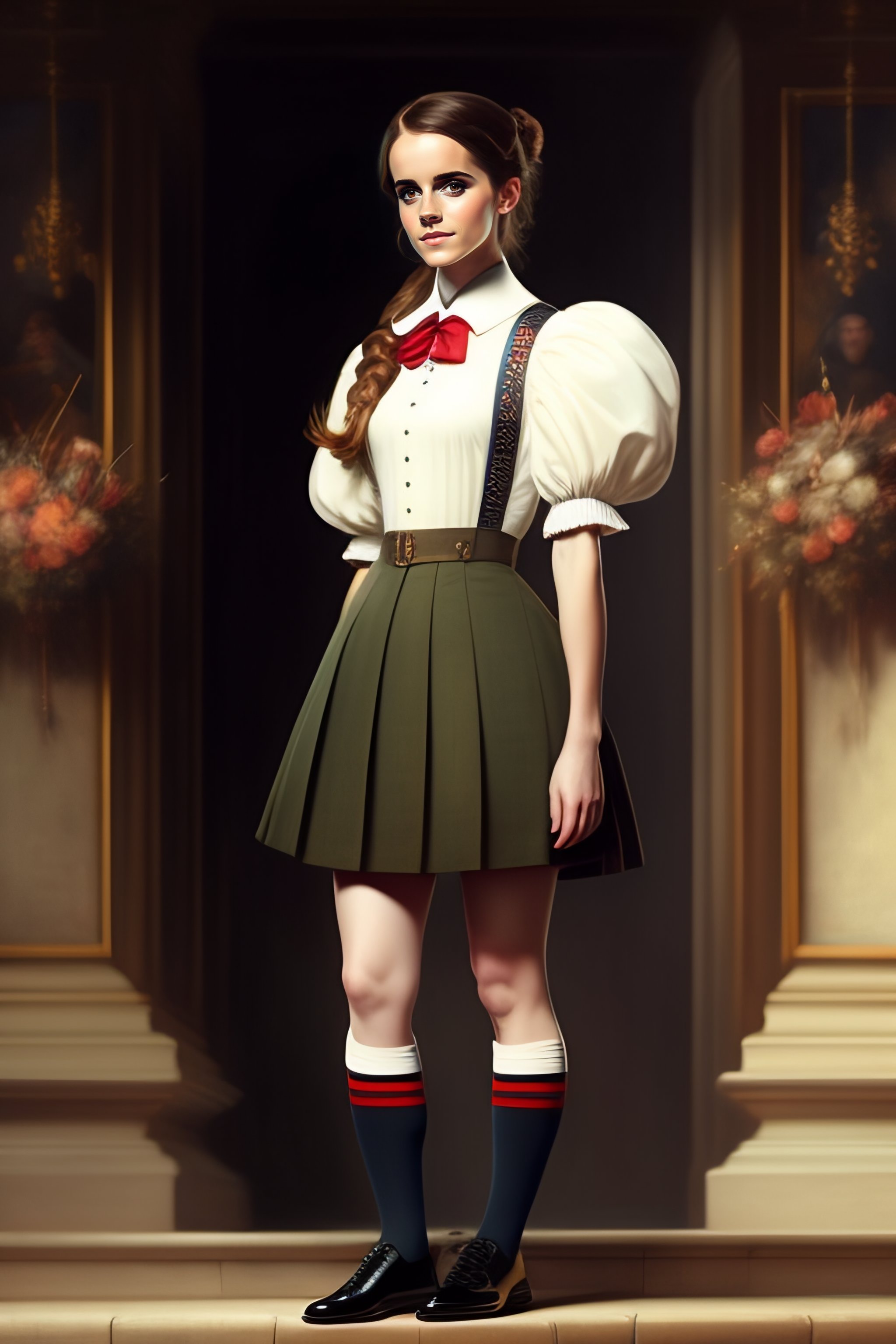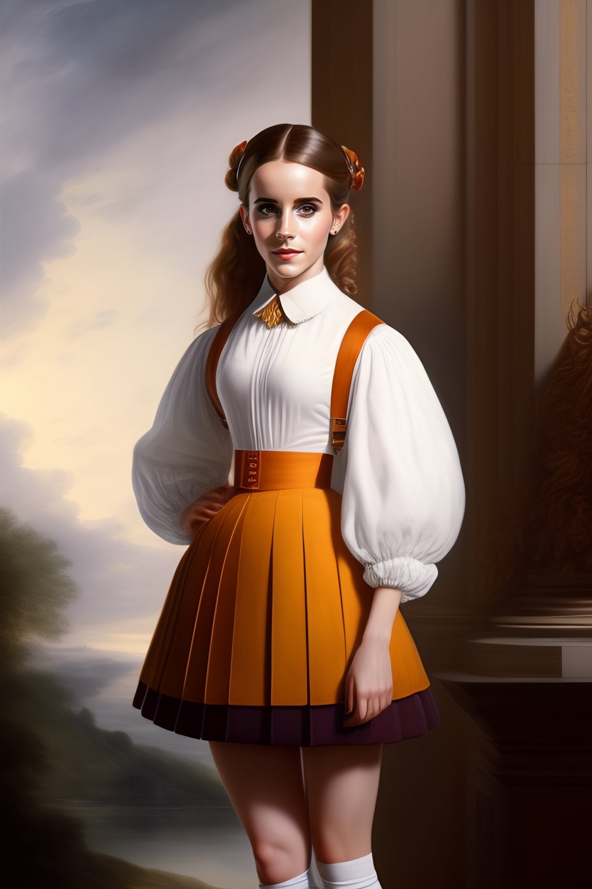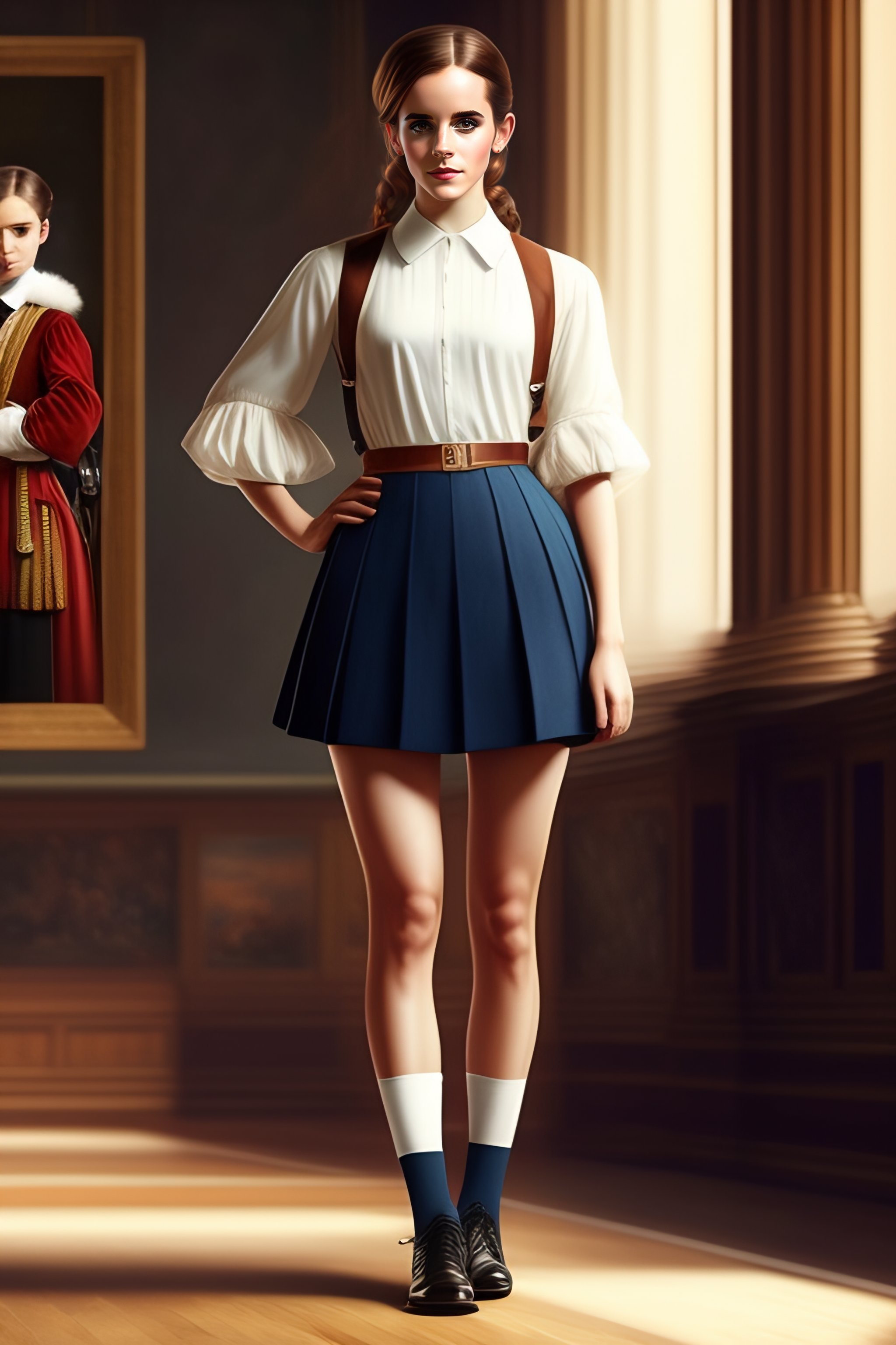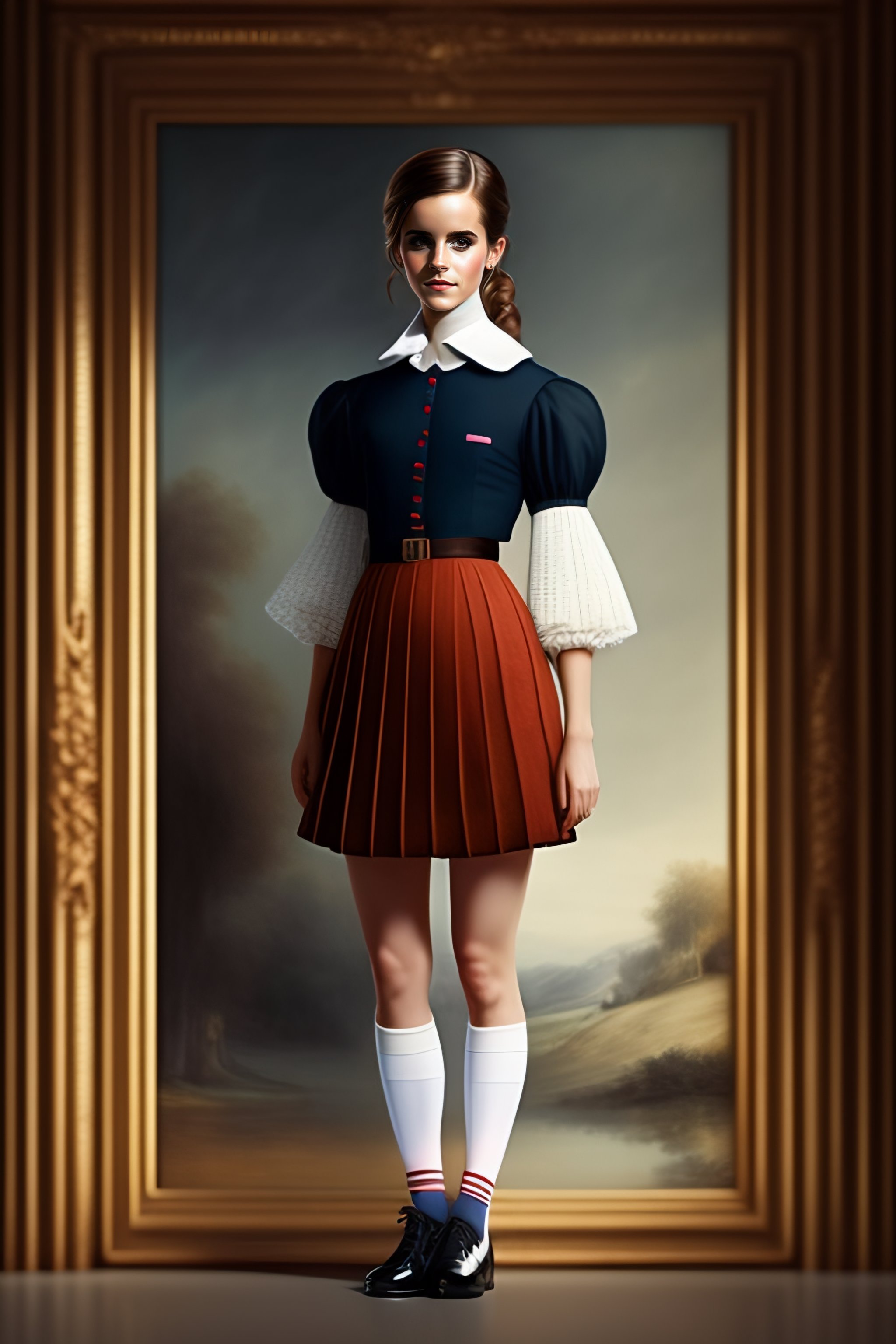 Emma watson - un, school uniform, seifuku, pleated miniskirt, overknee socks. by rembrandt 1 6 6 7, illustration