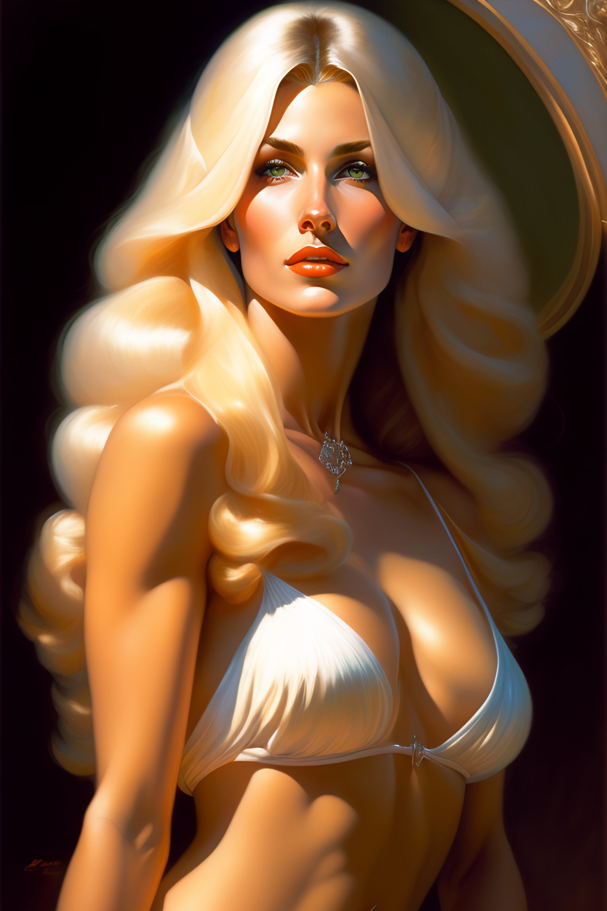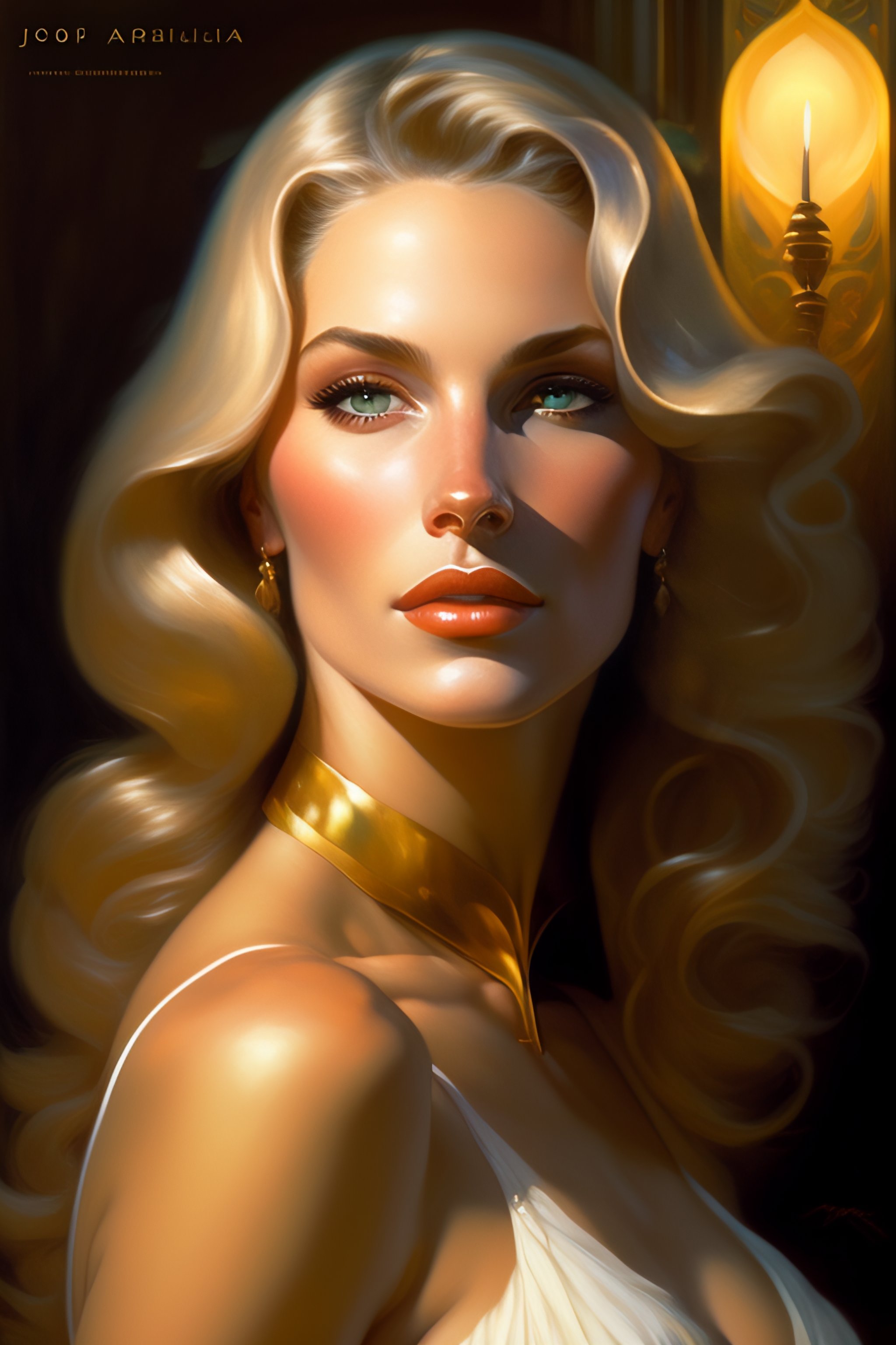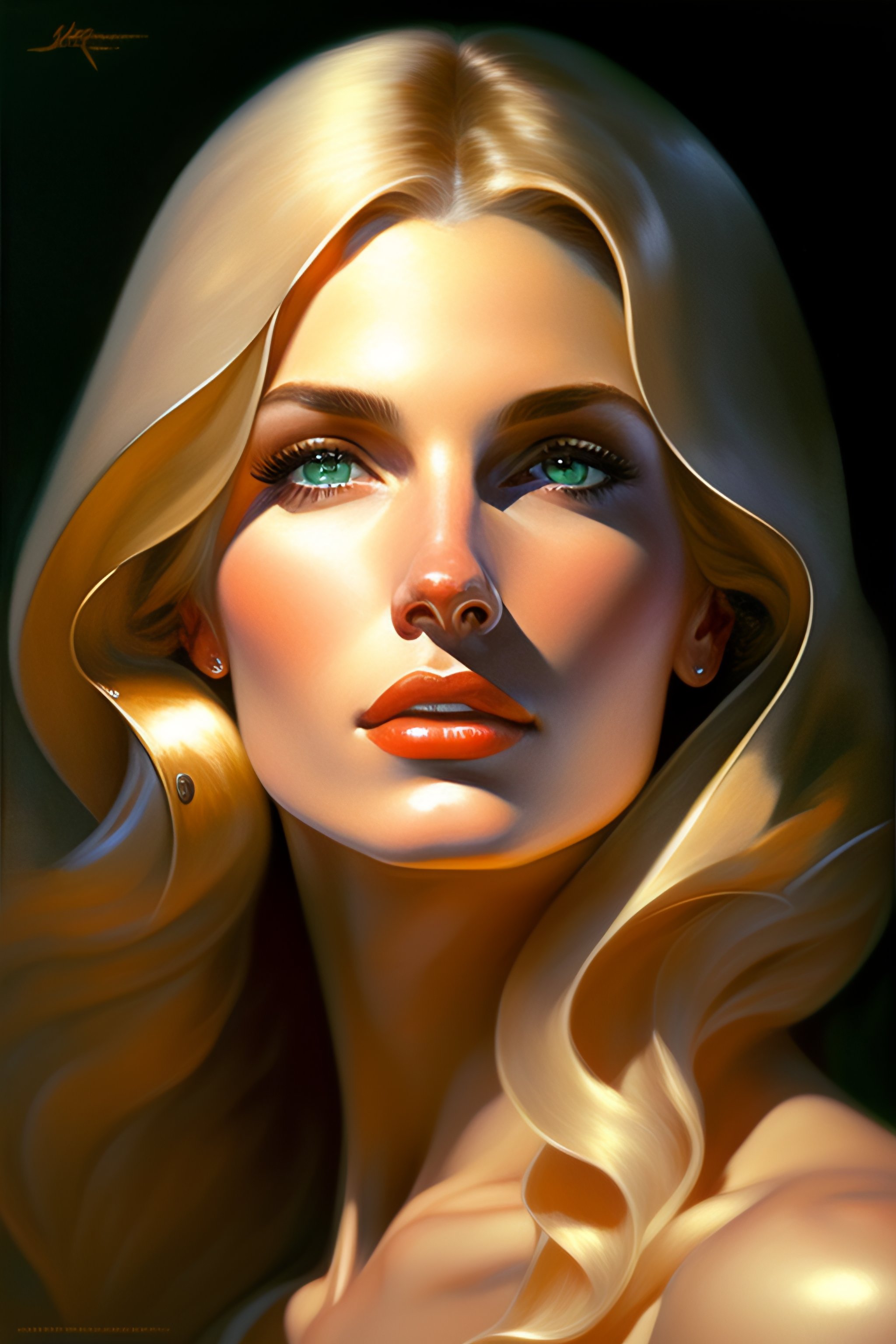 Portrait of a 30-year-old woman, straight long dark-blond hair, round face, dark-green eyes, drooping eyelid, cinematic lighting, highly detailed, digital painting, artstation, concept art, smooth, sharp focus, illustration, art by artgerm and greg rutkowski, alphonse mucha and charlie bowater, centered, exciting, joseph christian leyendecker, wlop, boris vallejo
