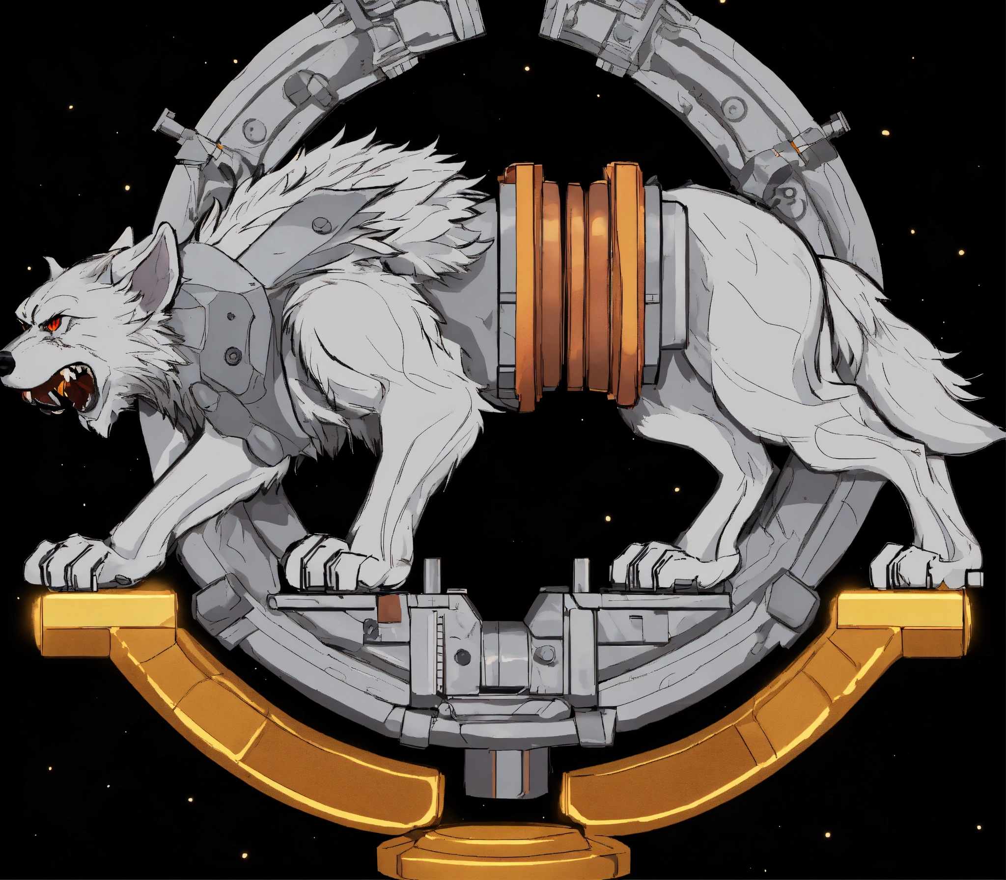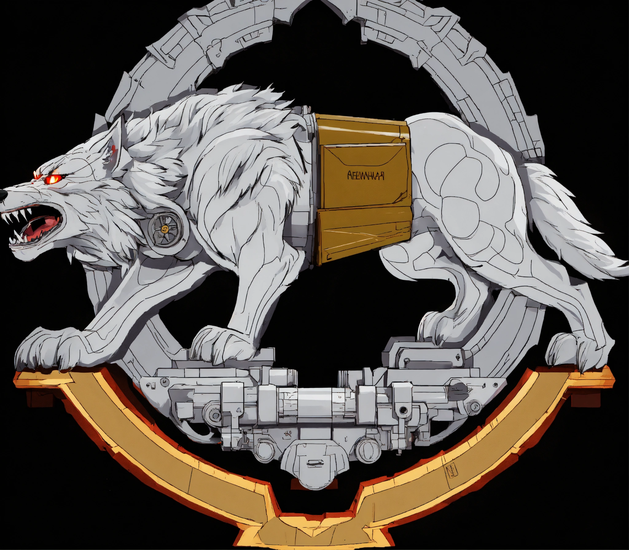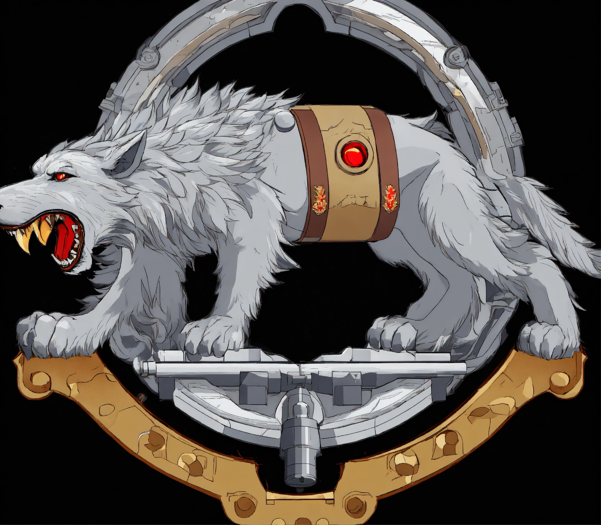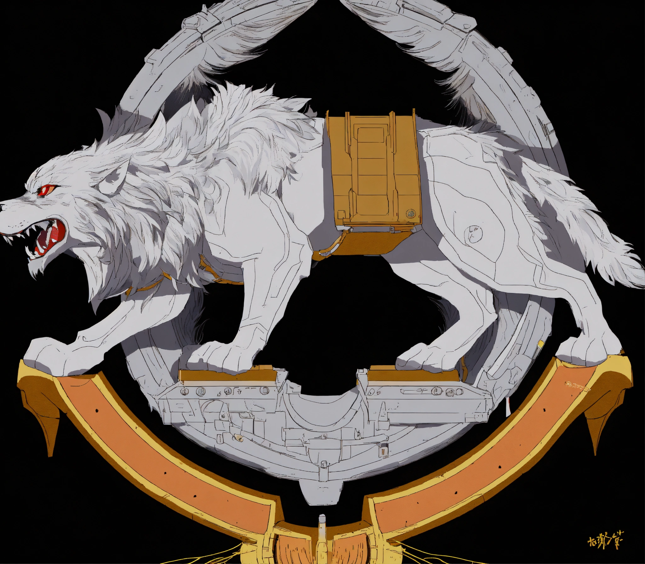 Dear neural network, i would like you to create a vector image that combines a werewolf and an artillery canon in an minimalistic style. the cannon must be attached to the werewolf's back. the werewolf having gray fur, piercing red eyes, and a menacing expression. the artillery canon should be a large. please provide the final image in svg format. if possible, please refer to the attached reference images for inspiration. thank you!