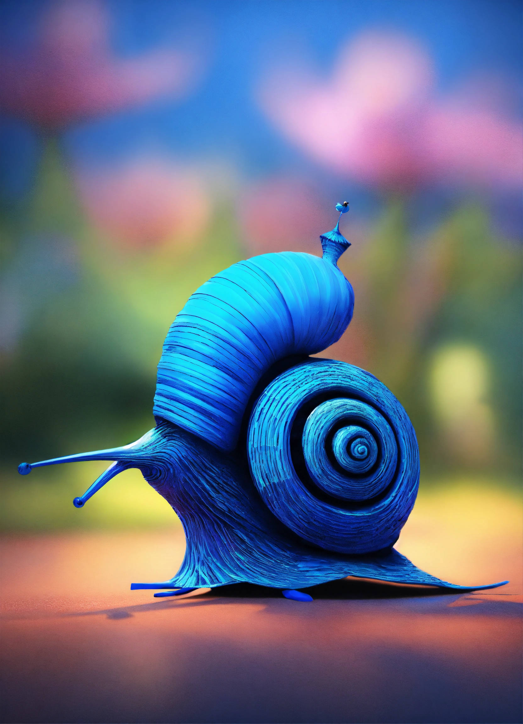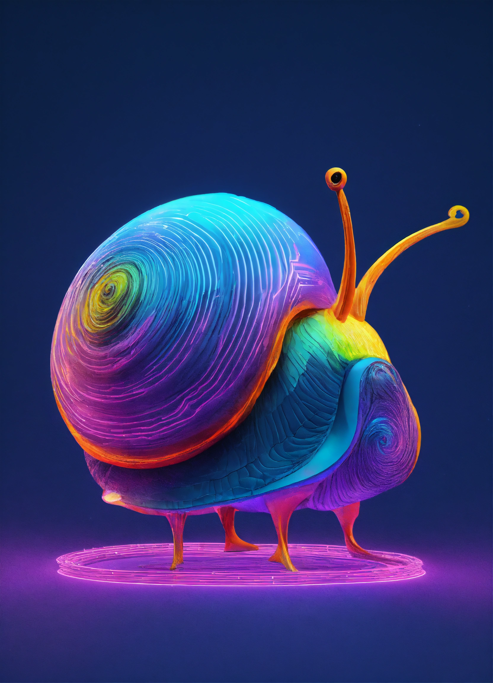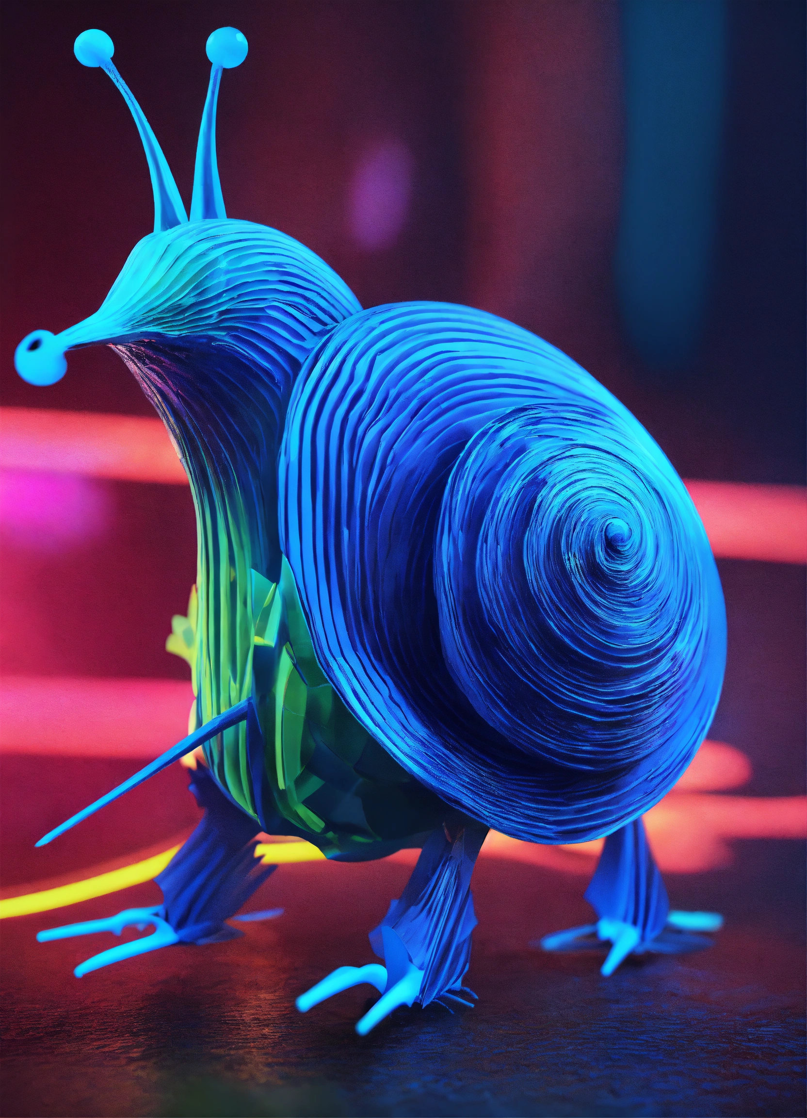 Snail in a bird costume graphic polygone 3d abstract neon blue