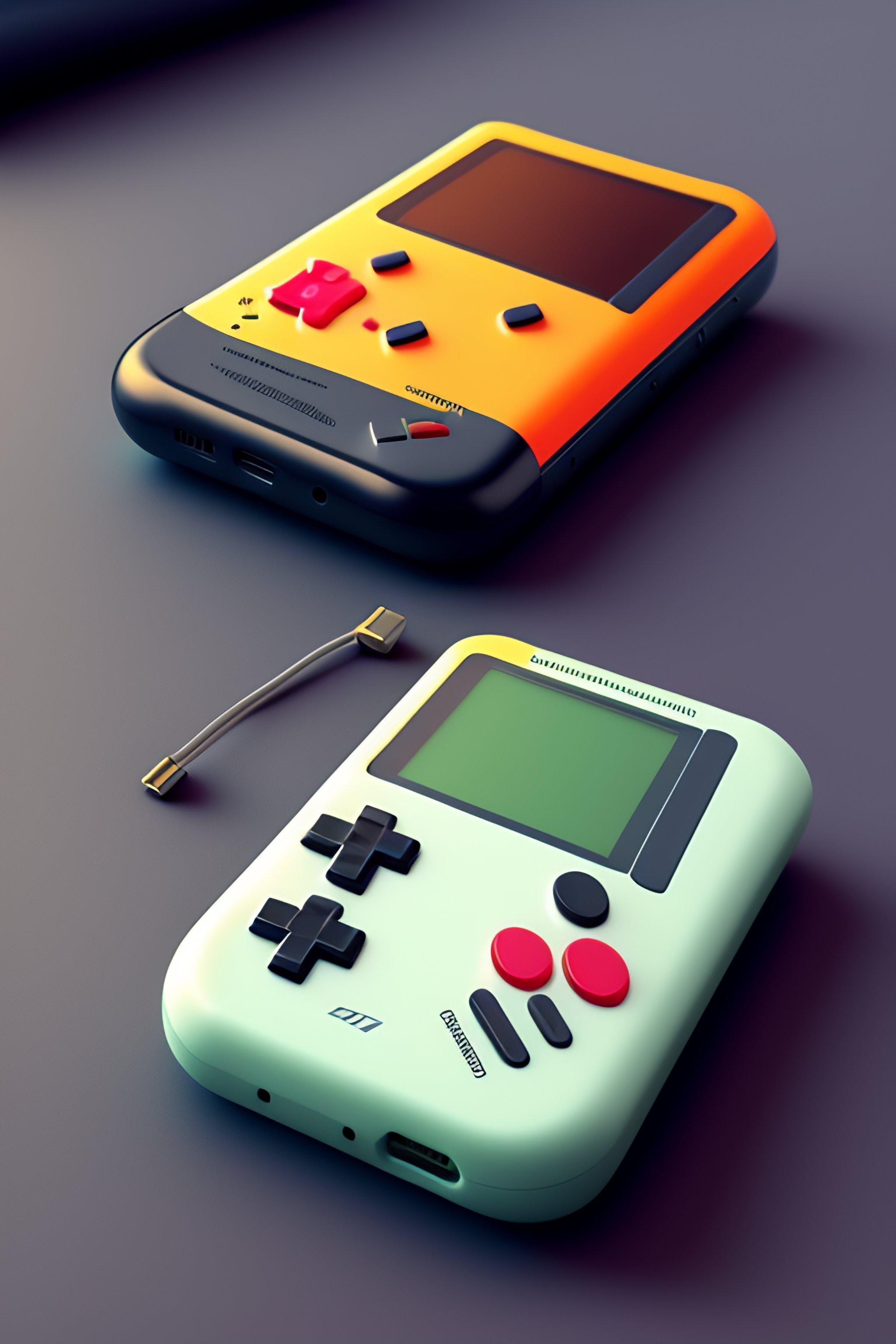 Gameboy with extentions in minimal flat ui in dieter rams style, figma, 3 colors sheme dribble, pixel monochromatic screen on