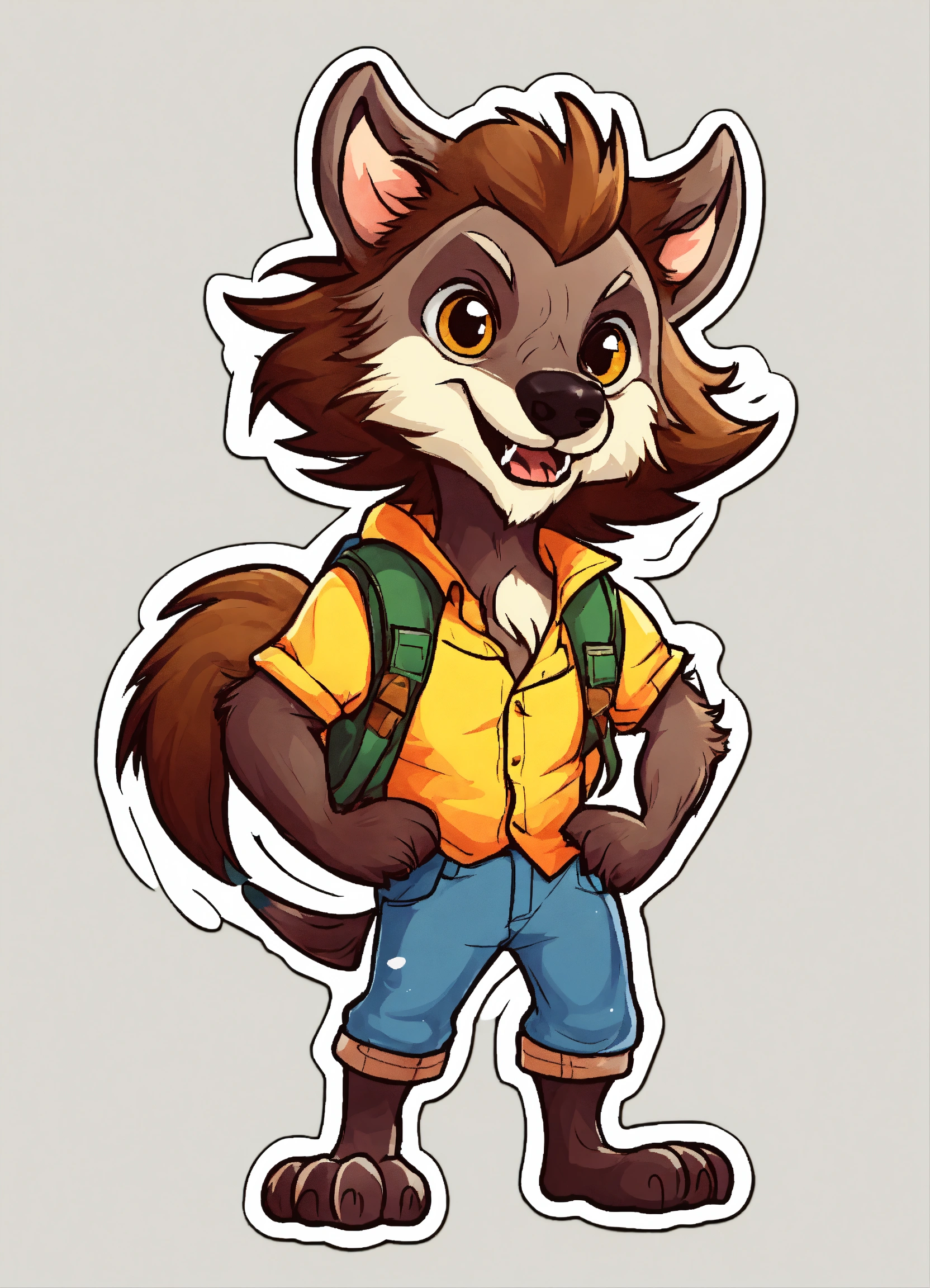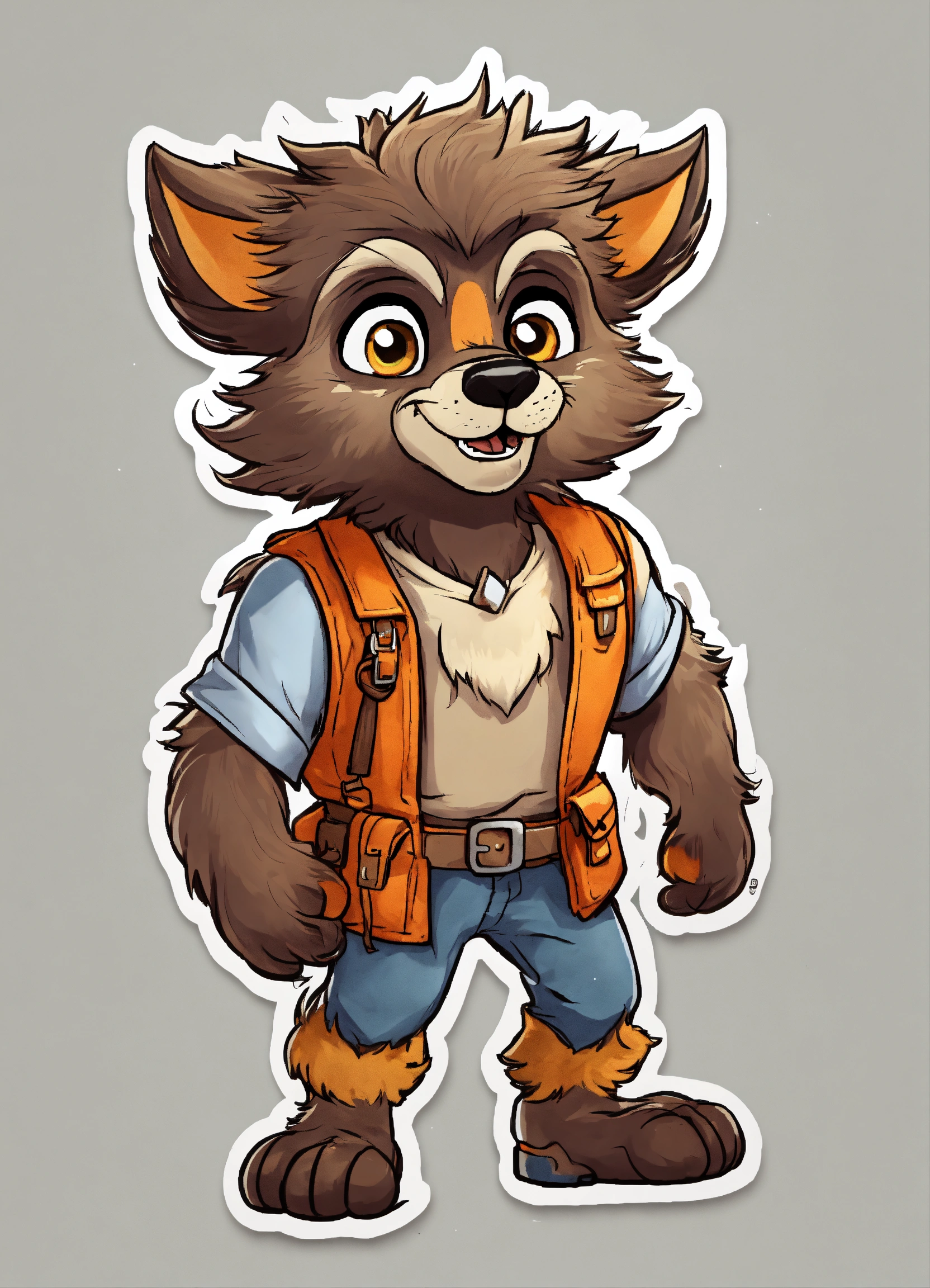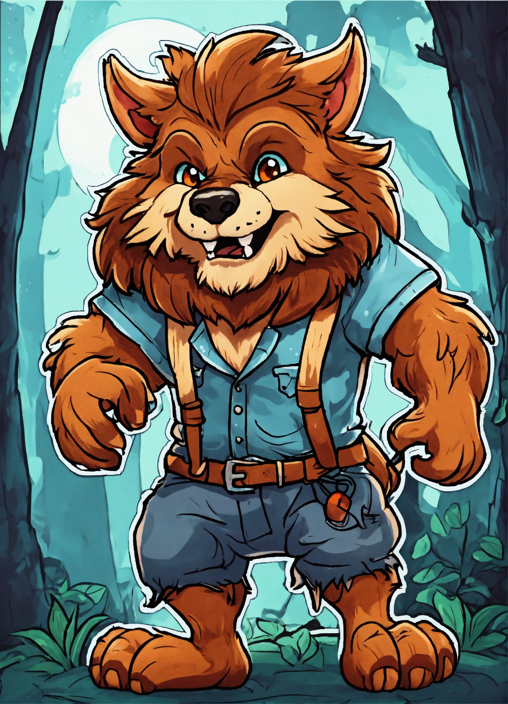Generate a cute little werewolf illustration, 4k resolution, cartoon-sticker style with clear lines on a pure white background suitable for a children's coloring book.