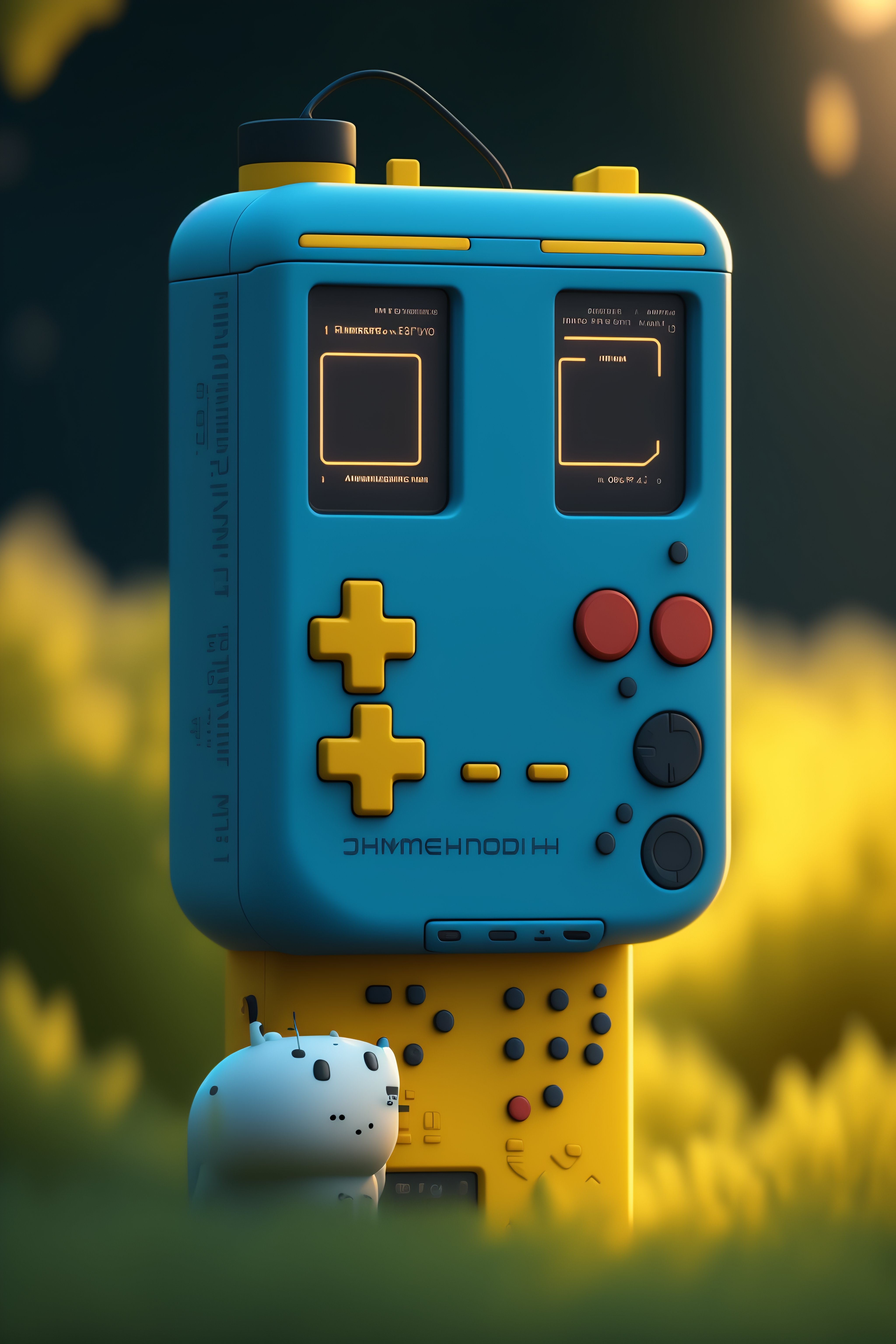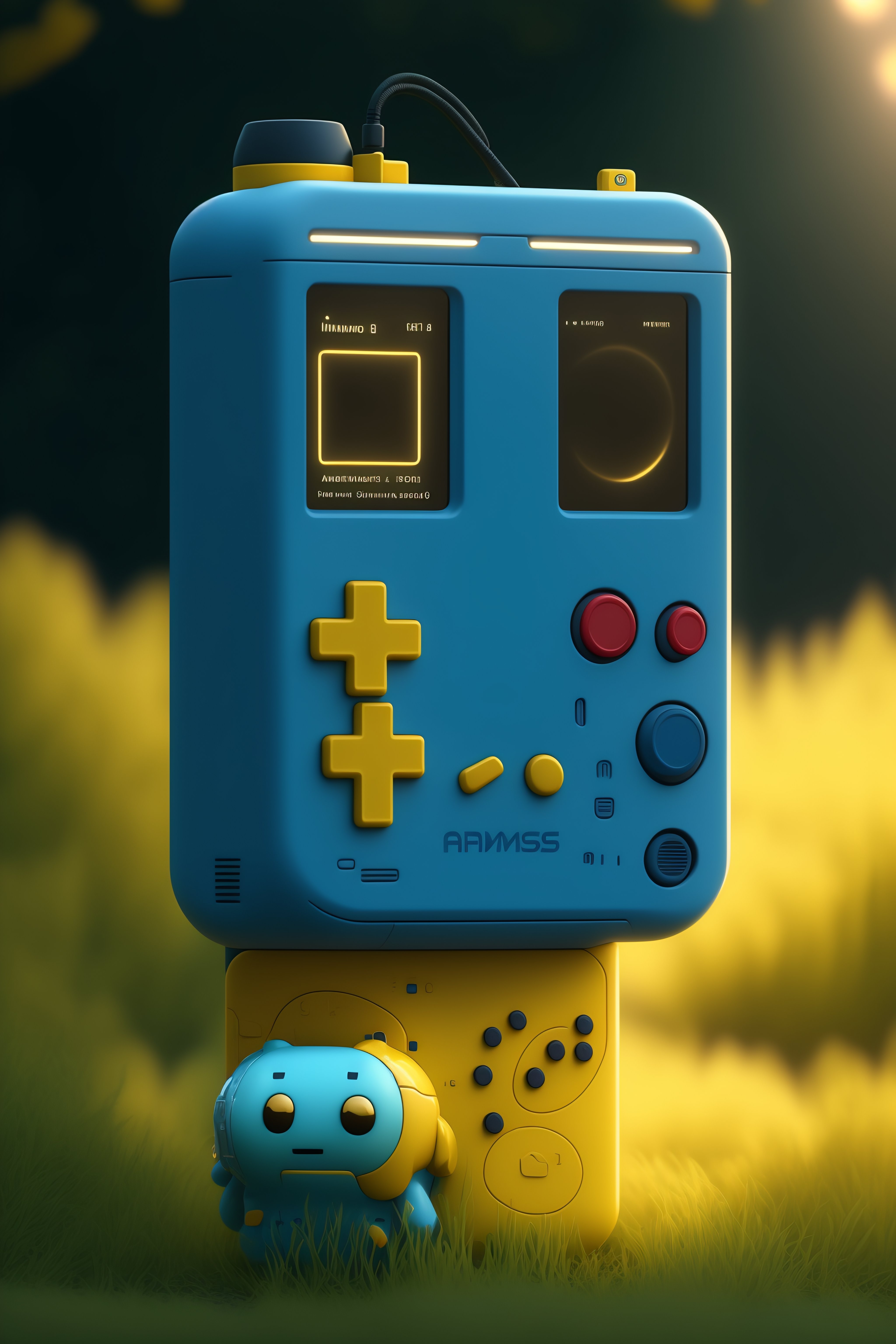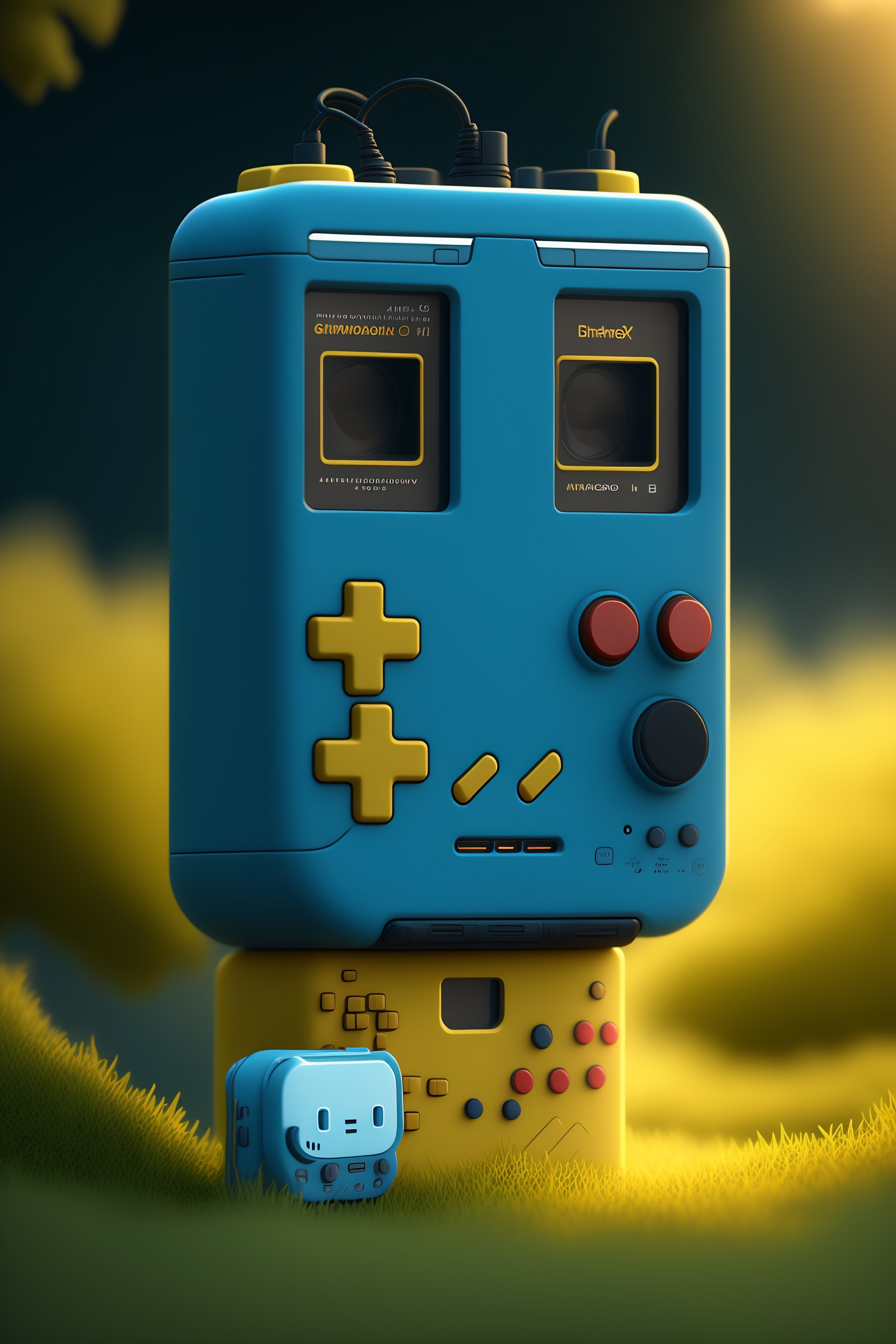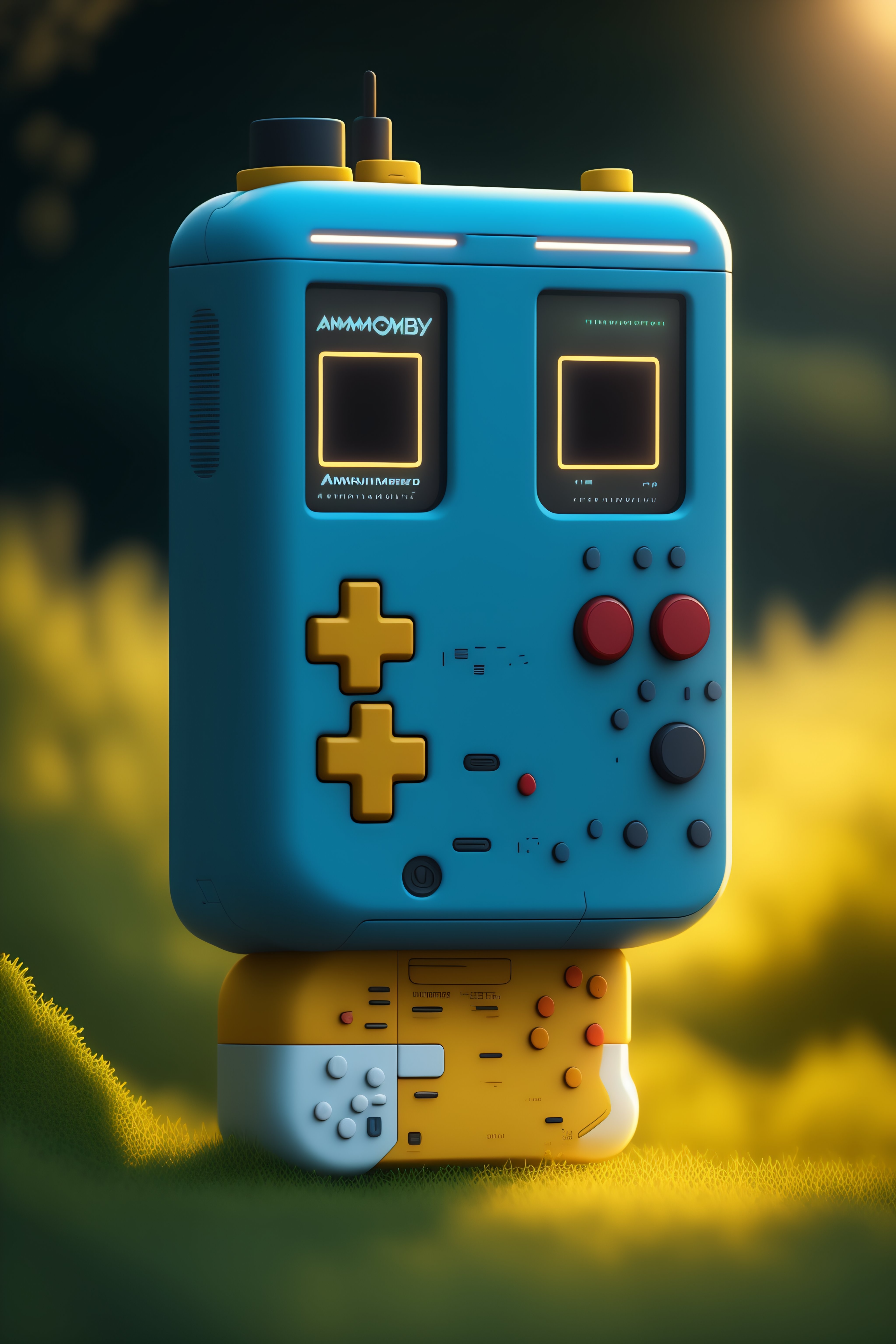 A realistic image of an anthropomorphic gameboy