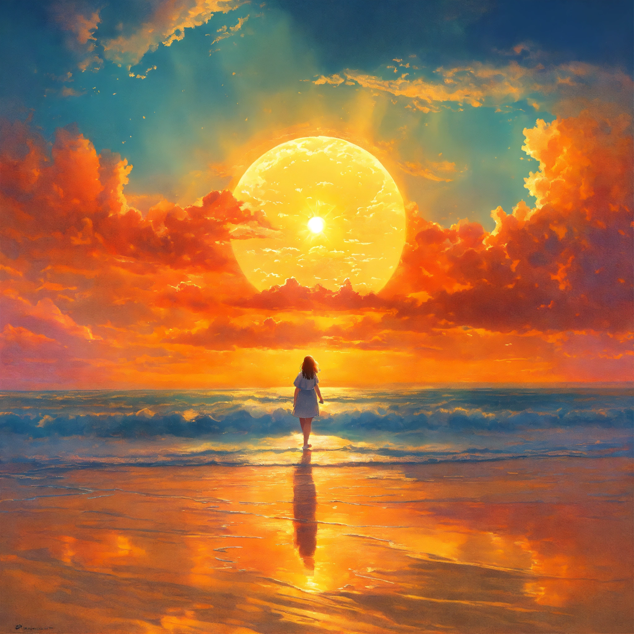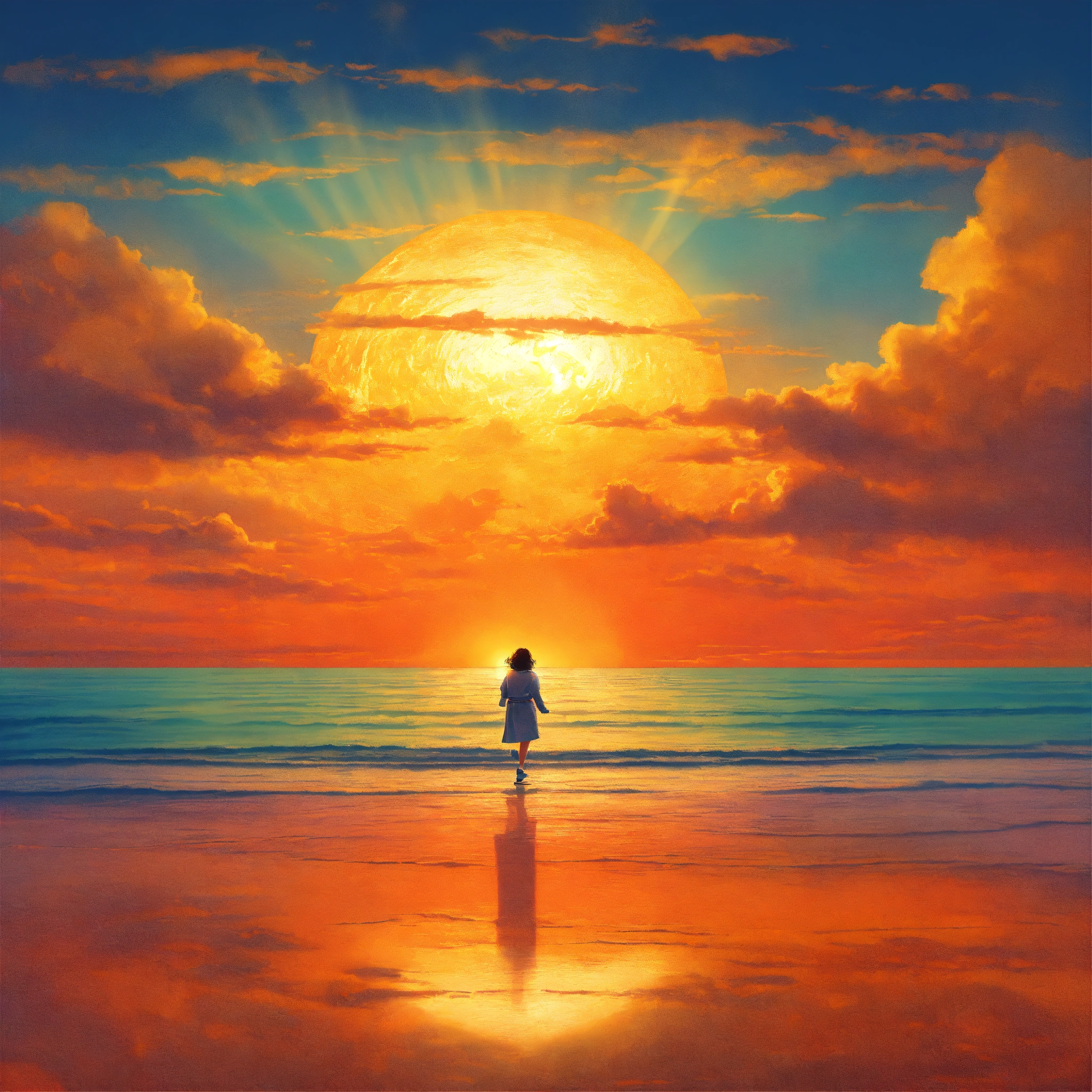Create a vibrant and captivating album cover for 'welcome the sun.' the central focus of the artwork should be the sun, partially obscured by fluffy clouds. the sun should emit warm, welcoming rays of light in various shades of colors, such as shades of orange, yellow, and hints of red. these rays should gently pierce through the clouds, creating a mesmerizing play of light and shadow. the overall mood of the image should be positive and uplifting, symbolizing the sun's guidance and warmth. the sun's presence should evoke a sense of hope and new beginnings. the background should have a soft, dream-like quality, with the clouds fading into the distance, creating a sense of depth and tranquility.