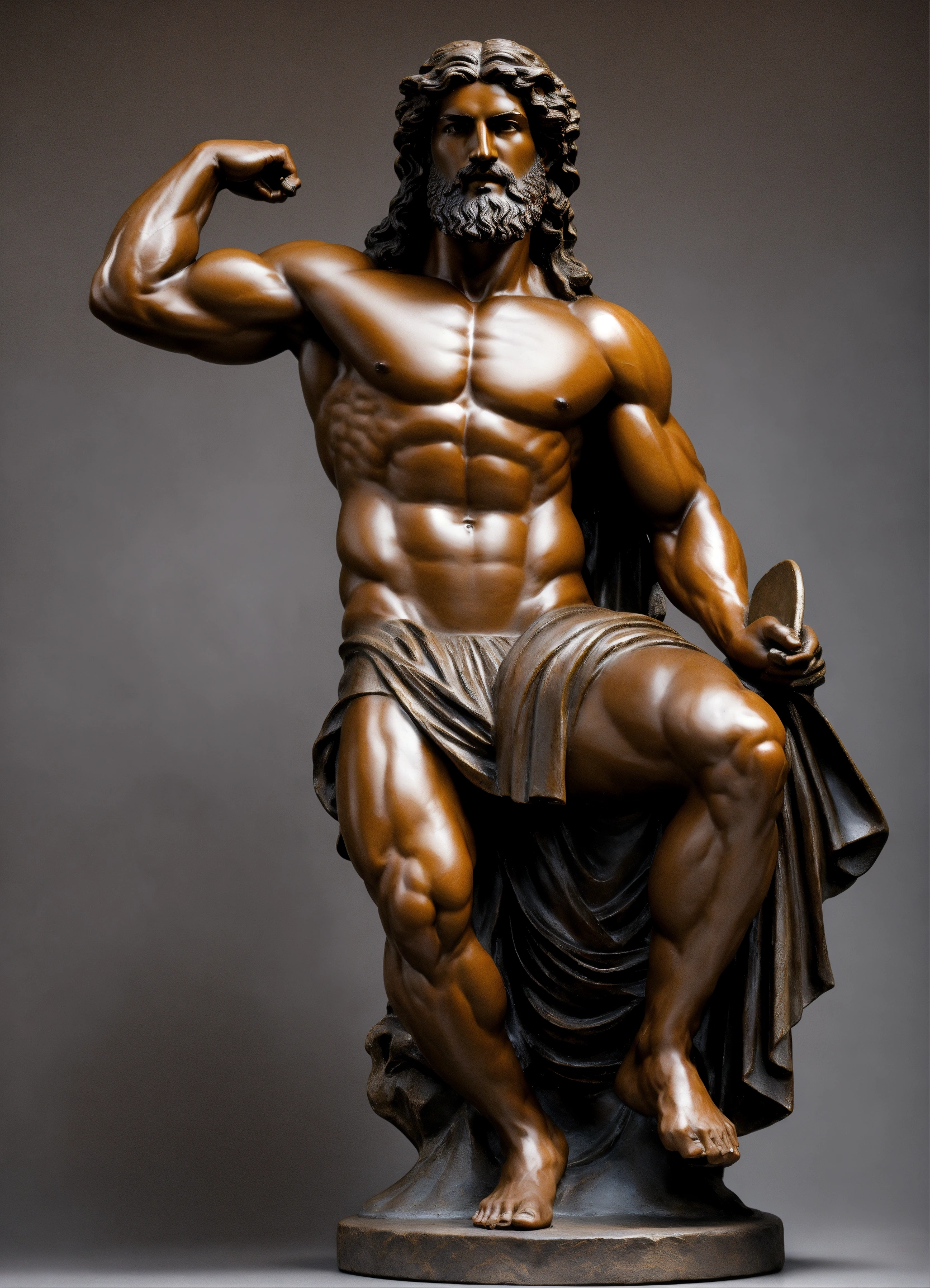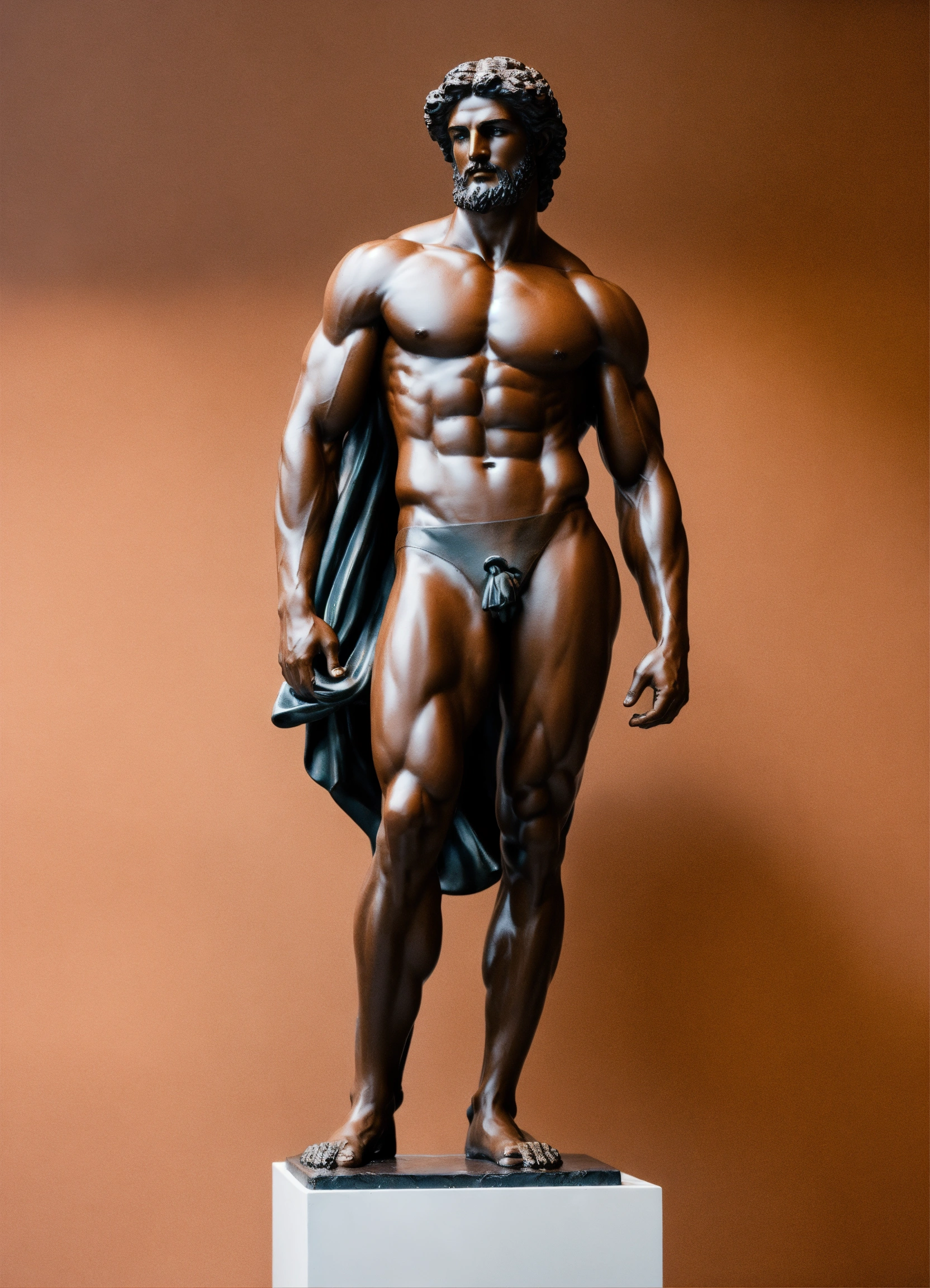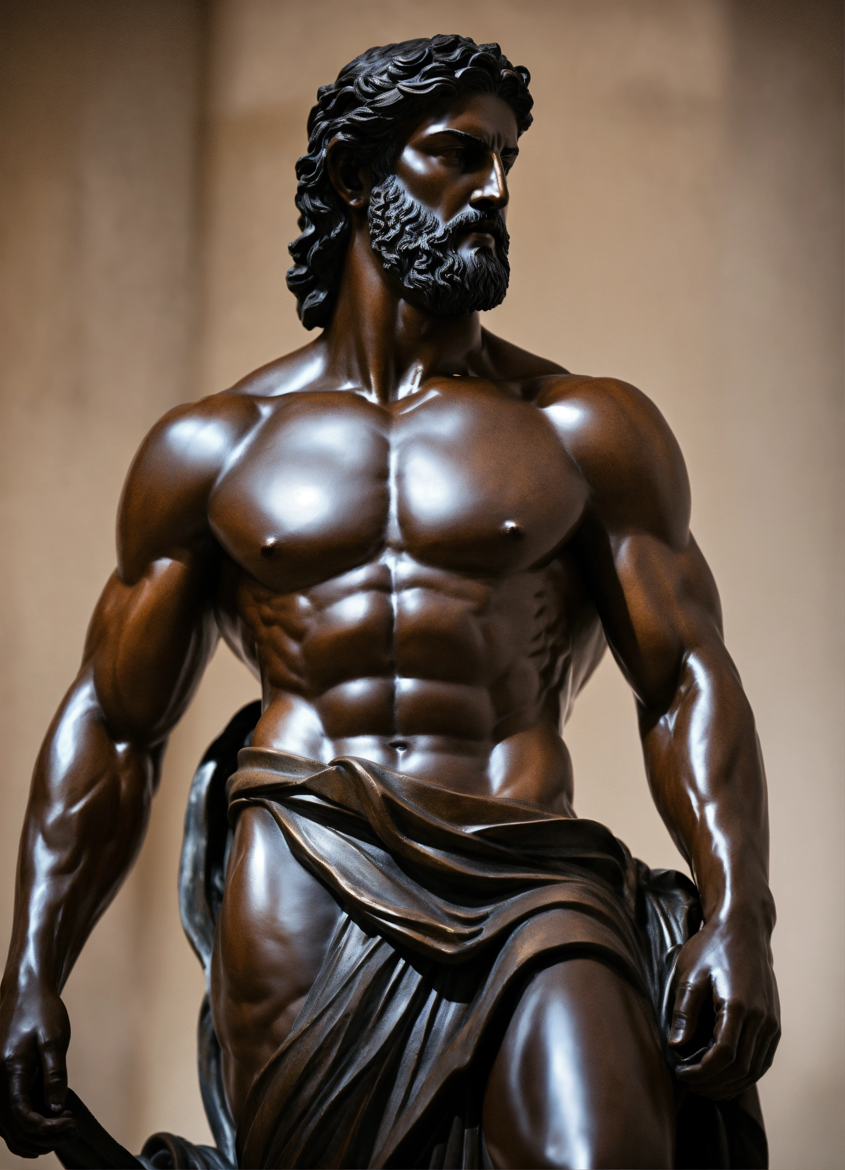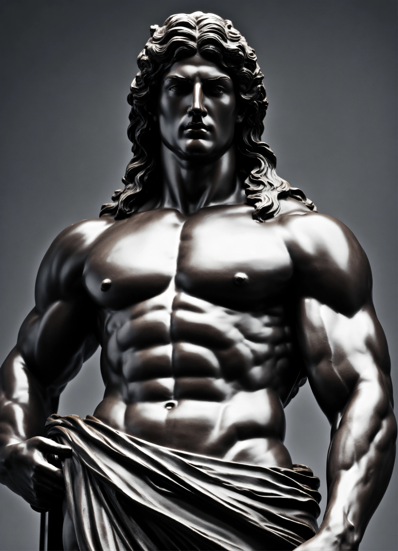 Simple muscular greek god statue with middelparting hair black boddy with white backround