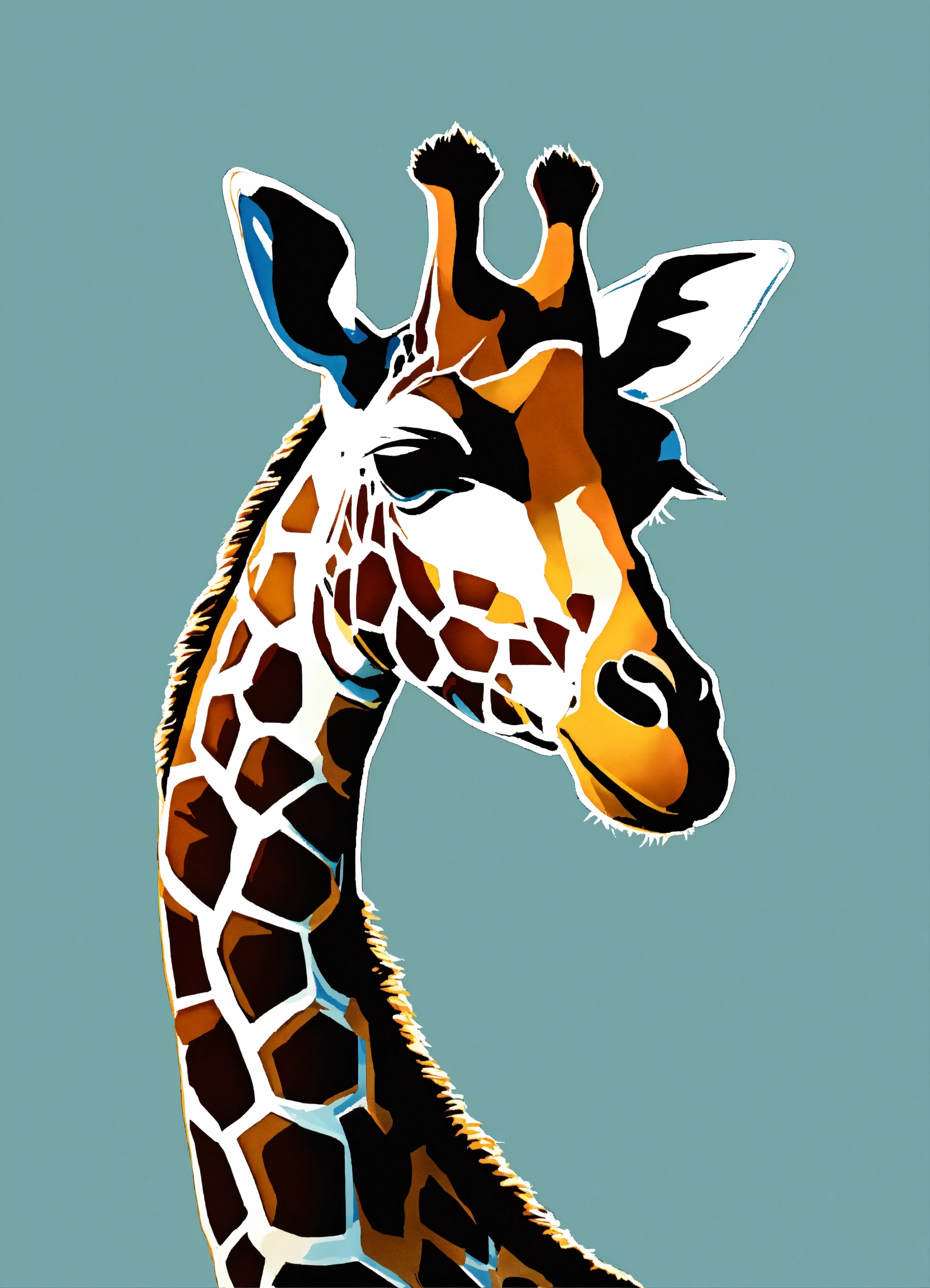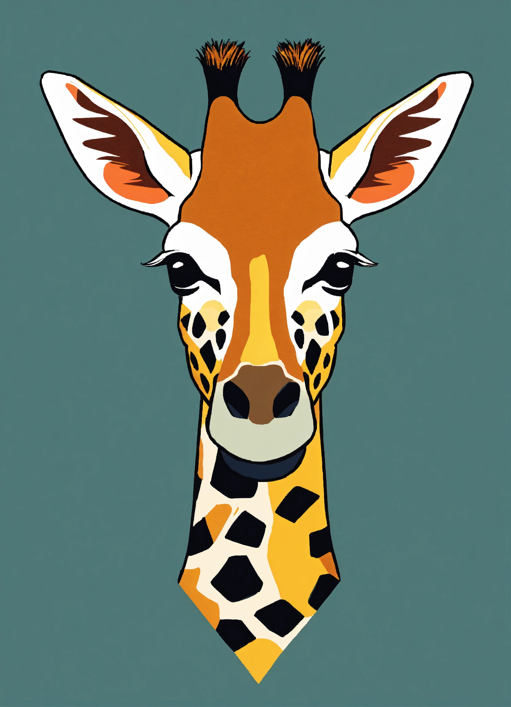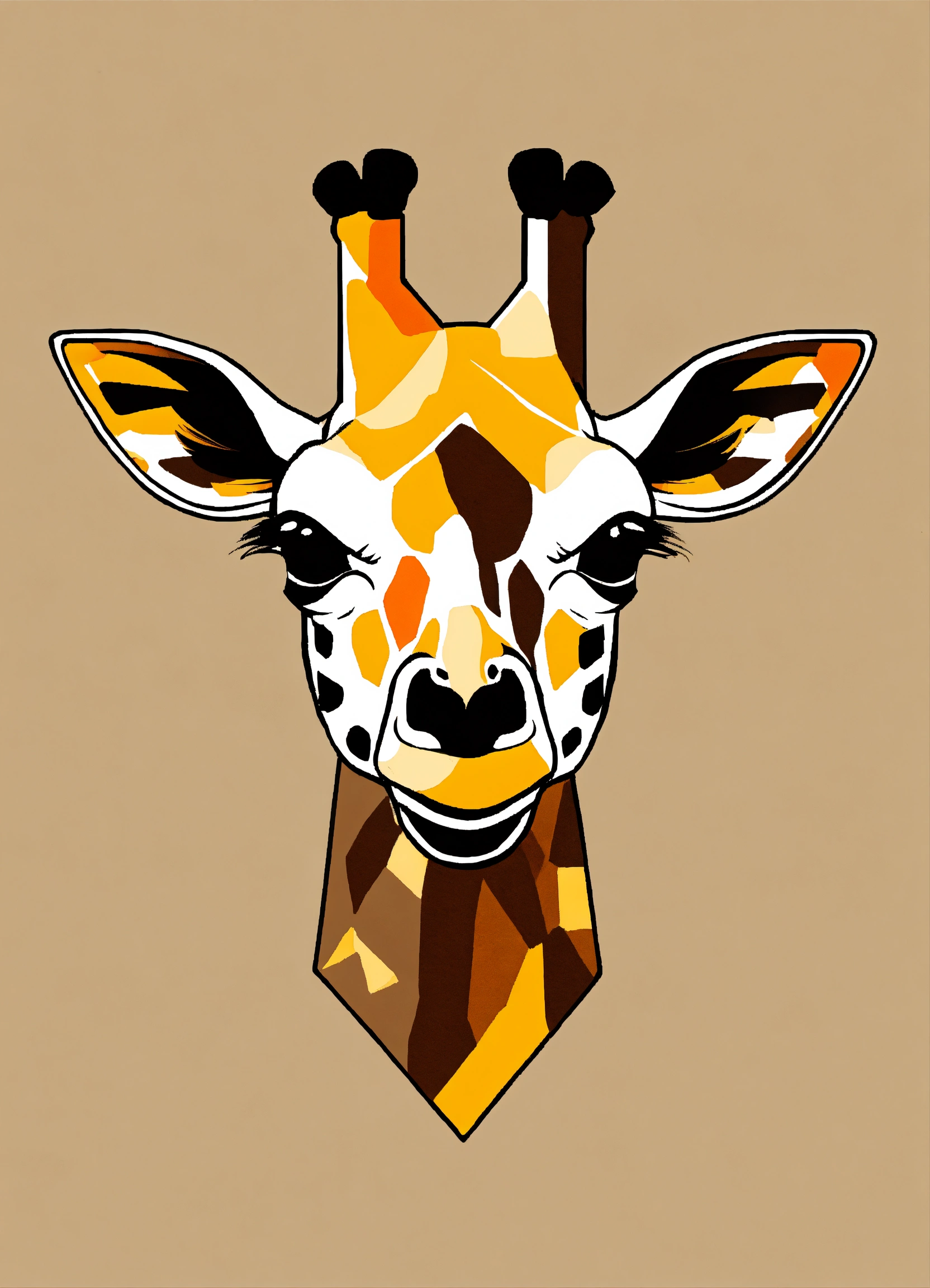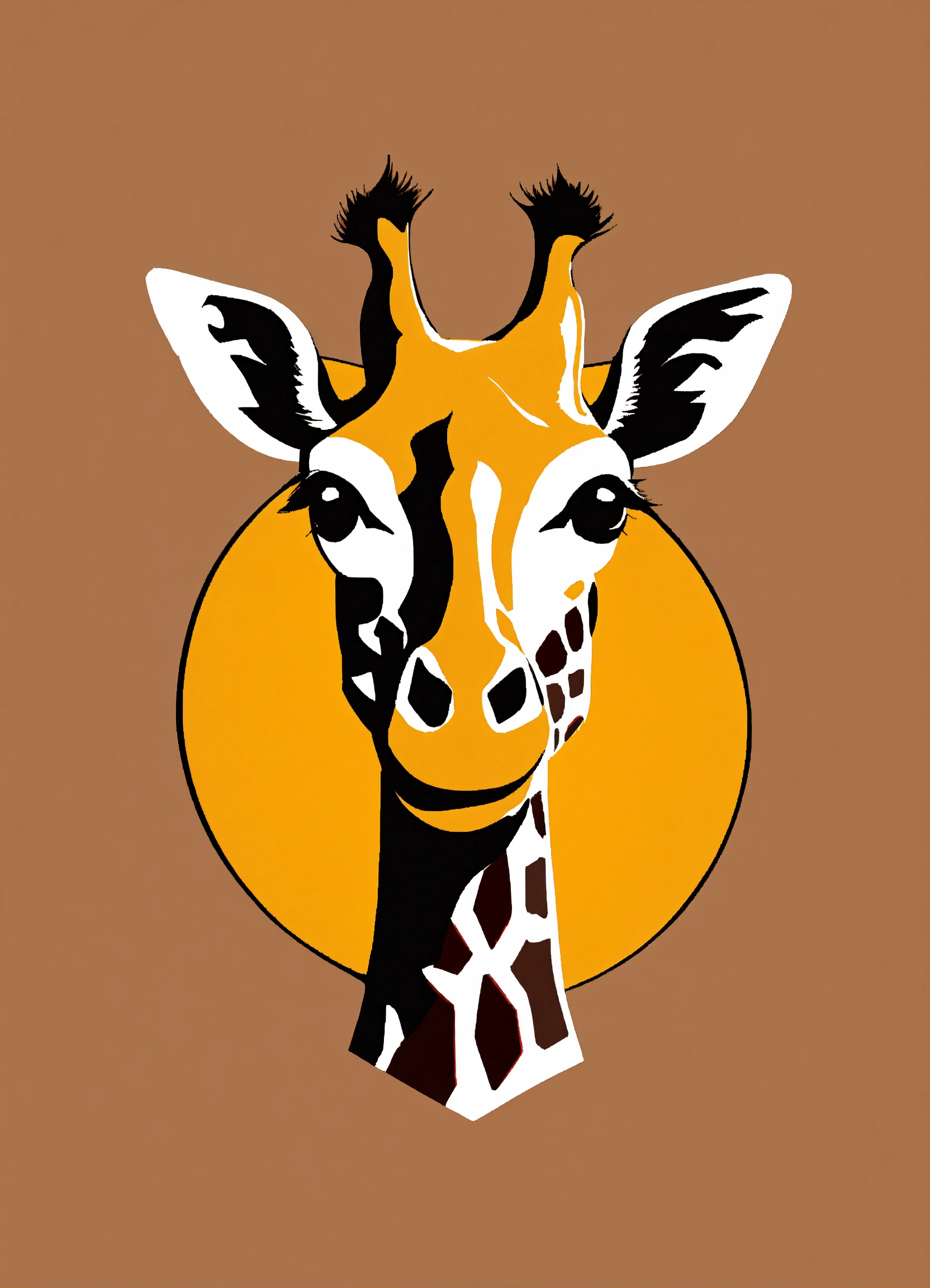 A logo for the painted giraffe brand with g in giraffe shaped like giraffe head and make it minimalist, write the painted giraffe in the logo