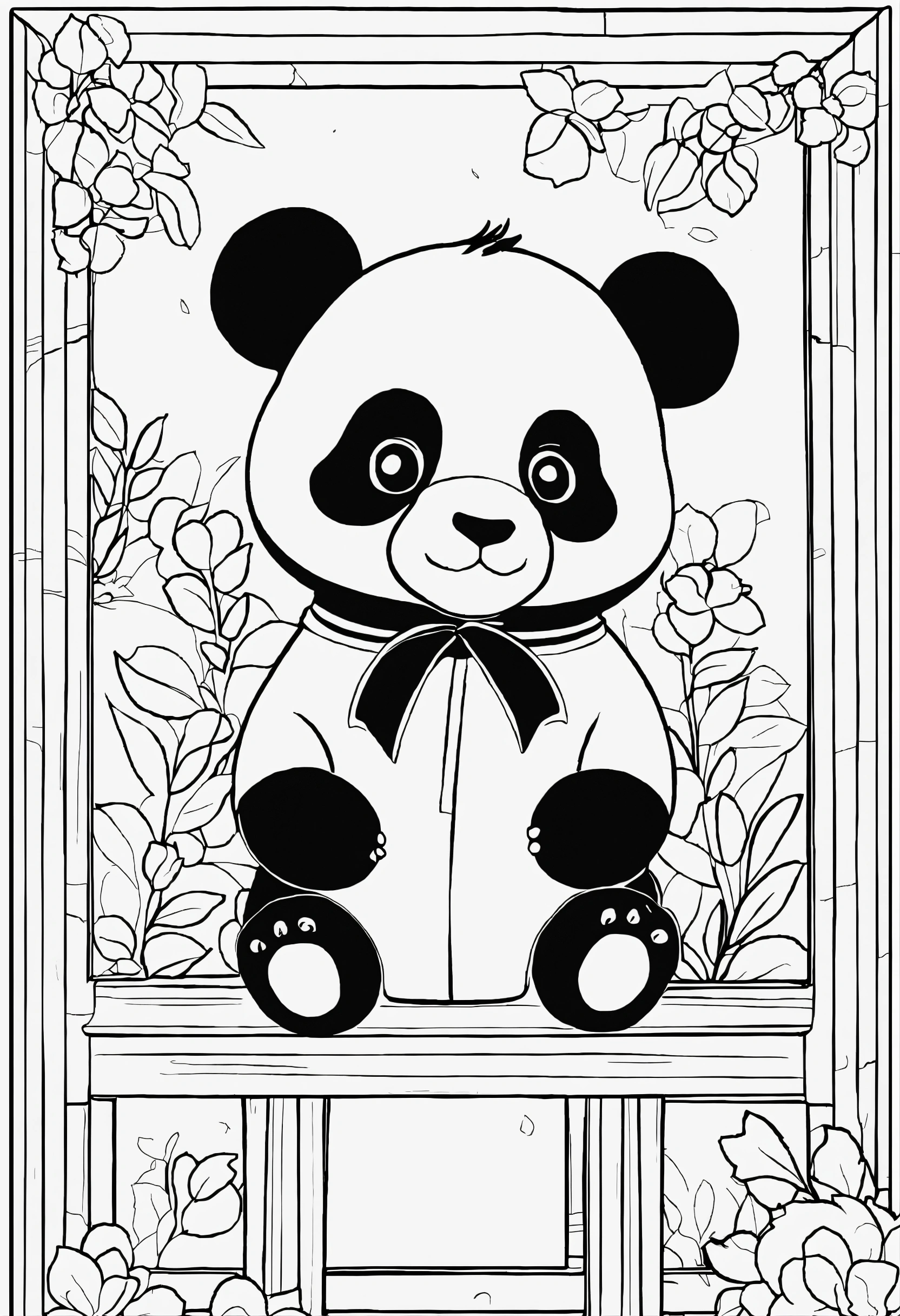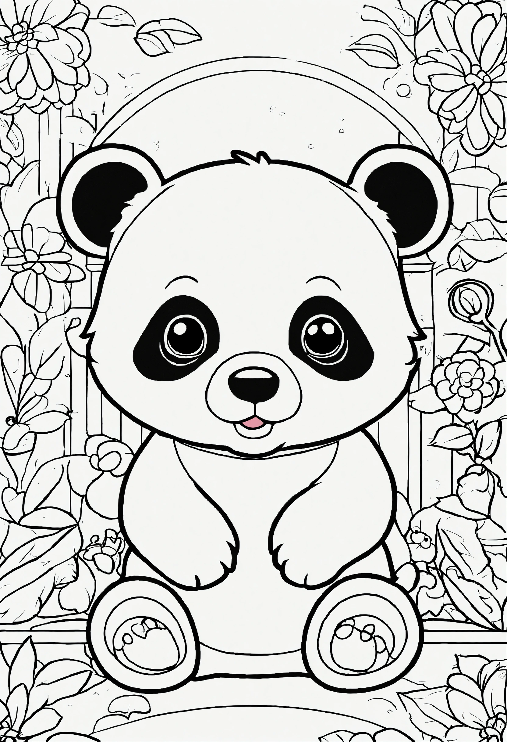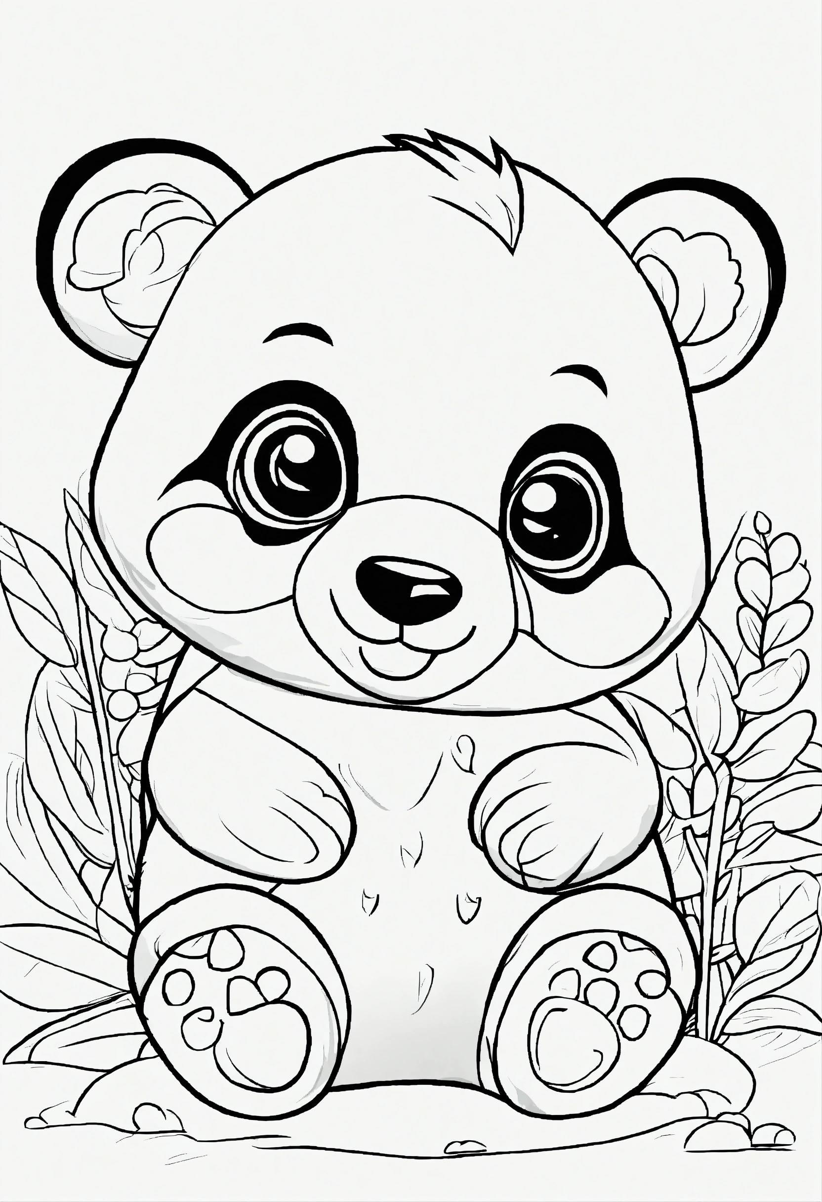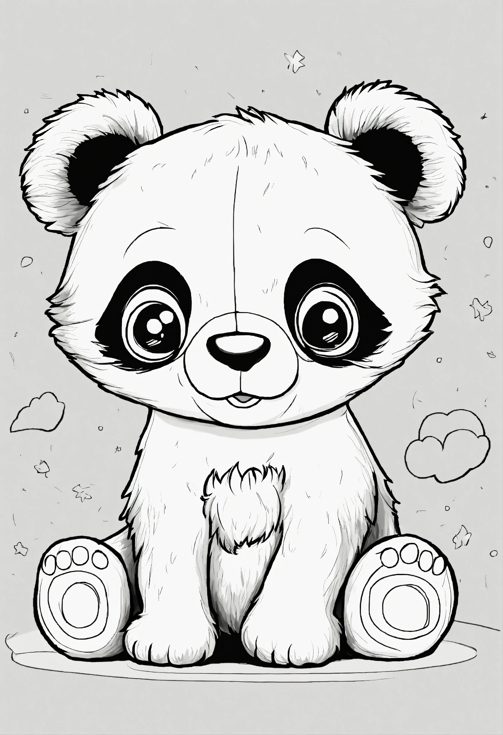 Coloring book for toddlers, simple lines drawings, no lines inside of the drawing, baby panda, cartoon, full body, outline of the drawing in bold line, symmetrical, white background., no background image.